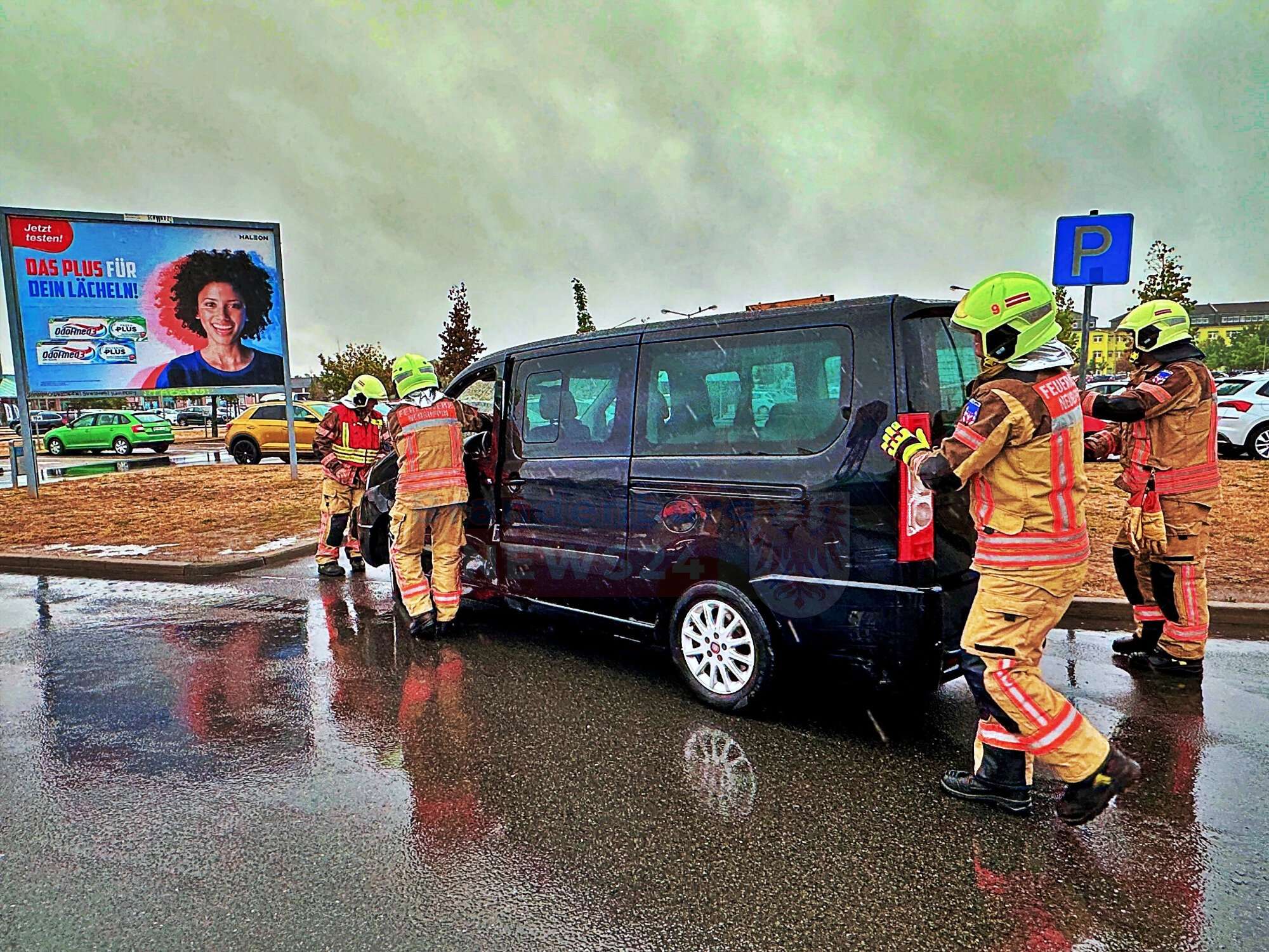 Neuruppin. Ein schwerer Verkehrsunfall ereignete sich am Montagmorgen auf dem Parkplatz des Ruppiner Einkaufszentrums (Reiz) in Neuruppin. Gegen 9:30 Uhr krachte es in der Junckerstraße, als ein Mitsubishi frontal gegen die Fahrertür eines Fiat-Kleinbusses prallte. Drei Personen wurden dabei verletzt, darunter ein zweijähriges Kind.