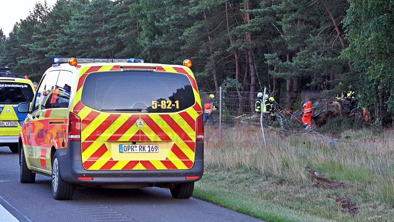Update: Die Polizei hat weitere Informationen zum tragischen Verkehrsunfall auf der Autobahn A24 zwischen Herzsprung und Neuruppin veröffentlicht. Demnach ereignete sich der Unfall bereits gegen 19:20 Uhr, als ein 59-jähriger BMW-Fahrer in Fahrtrichtung Berlin beim Überholen eines Gespanns die Kontrolle über sein Fahrzeug verlor. Der PKW geriet ins Schleudern, kam von der Fahrbahn ab und prallte gegen zwei Bäume.