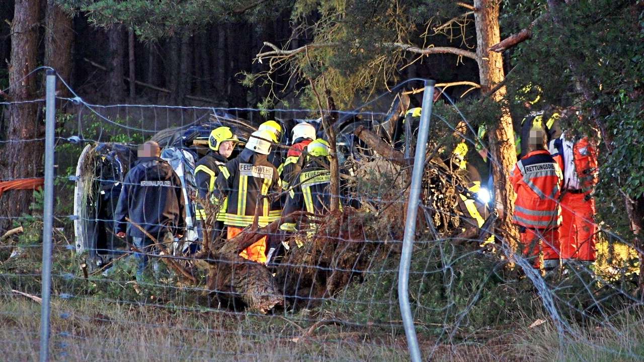 Alle drei Insassen des Fahrzeugs – der Fahrer, eine 47-jährige Beifahrerin und eine 19-jährige Mitfahrerin – erlitten bei dem Aufprall tödliche Verletzungen. Die Feuerwehr musste die Opfer, alle aus Berlin, aus dem völlig zerstörten Fahrzeug bergen.