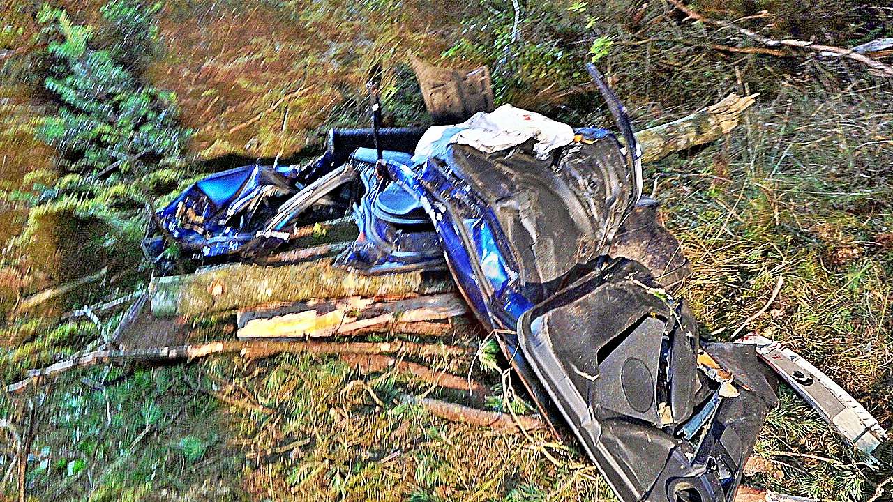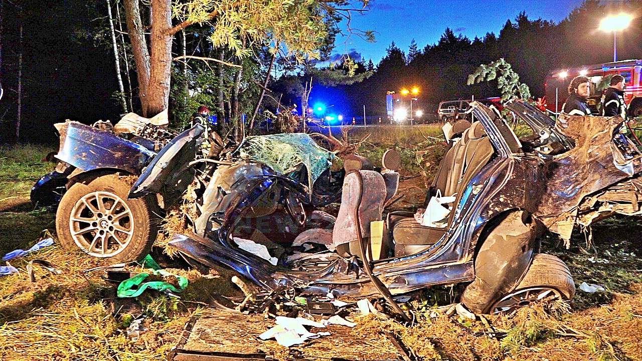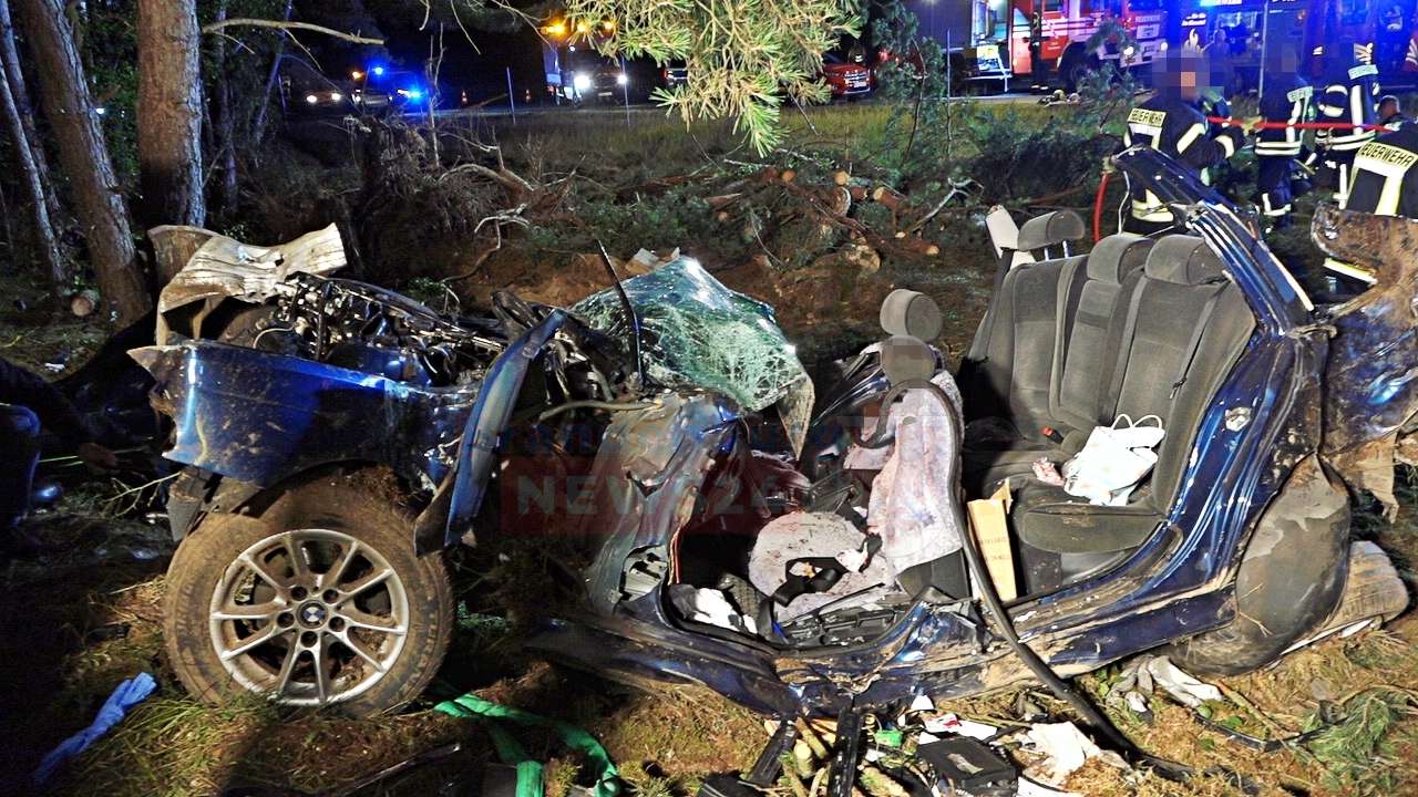 Ein 59-jähriger BMW-Fahrer war mit einer 19-jährigen Jugendlichen und einer 47-jährigen Frau unterwegs, als er laut ersten Erkenntnissen der Polizei beim Überholen eines PKW mit Anhänger die Kontrolle über sein Fahrzeug verlor. Der BMW kam mit hoher Geschwindigkeit von der Fahrbahn ab, durchbrach den Wildschutzzaun und prallte gegen mehrere Bäume.