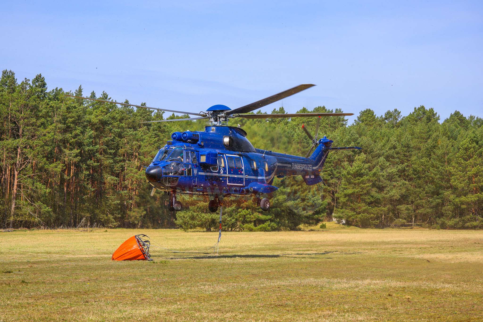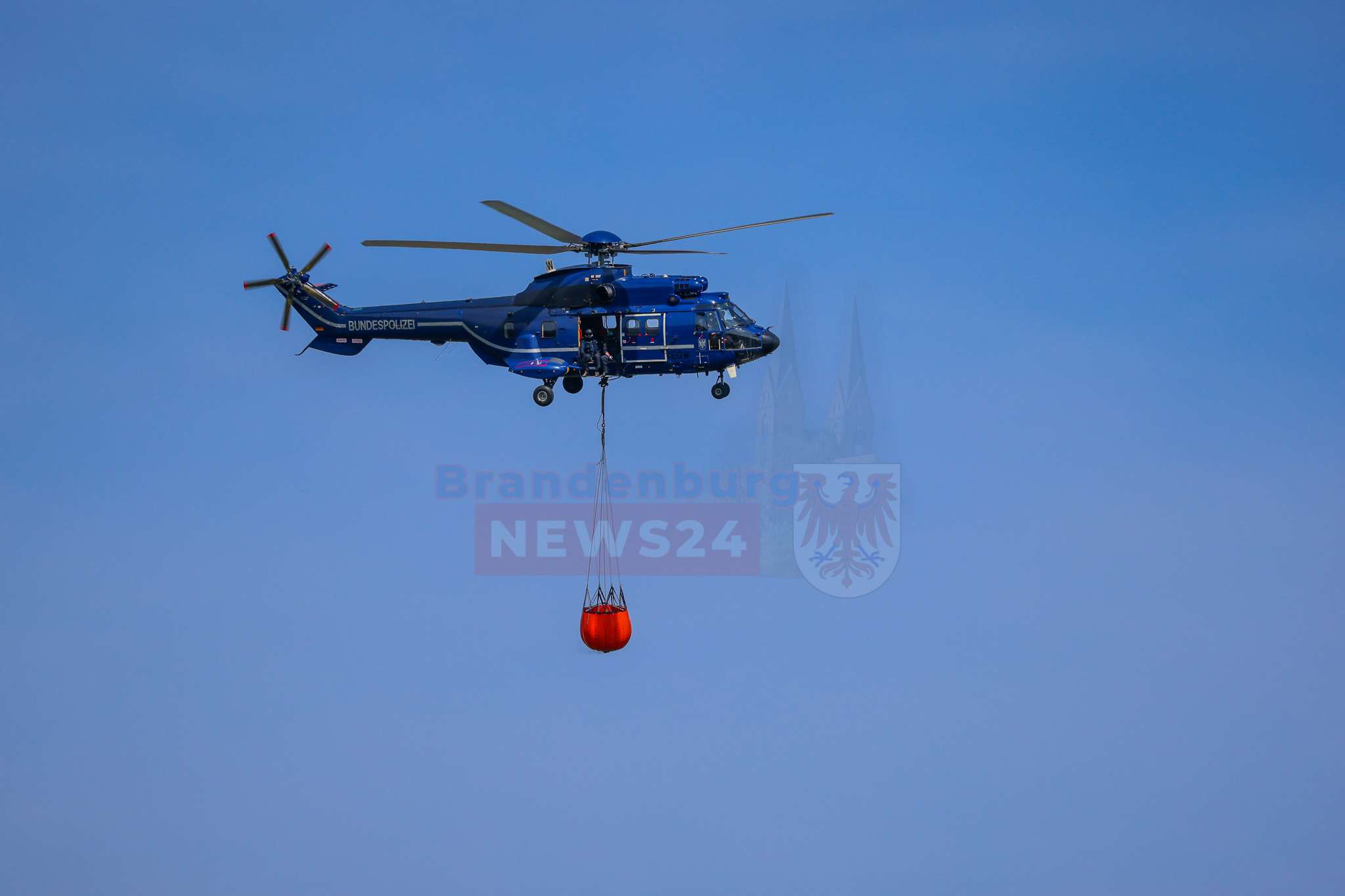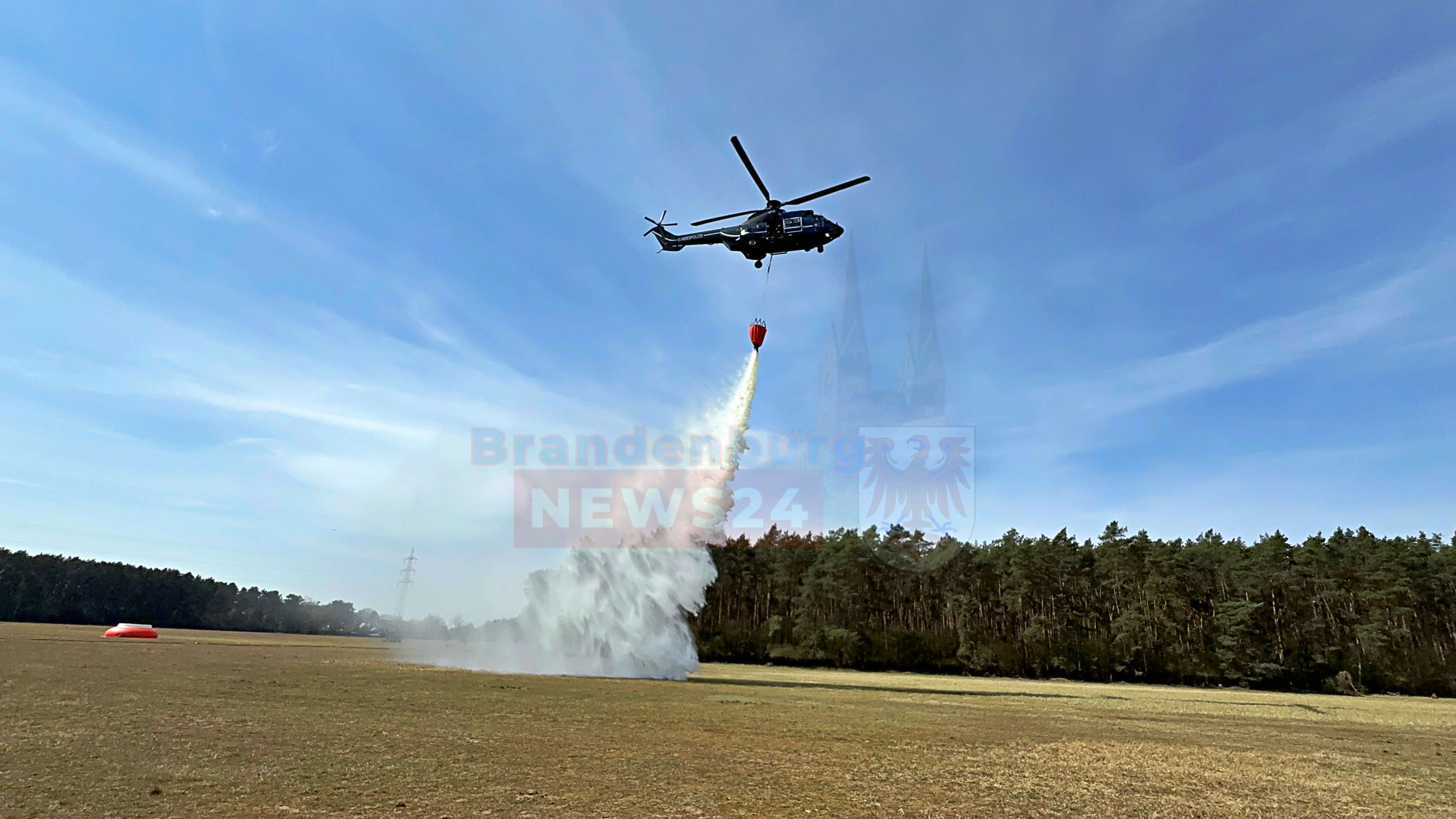 Doch die beste Technik nützt nichts ohne Wasser. Weil Hydranten zwischen den Kiefern fehlen, bauten die Retter eine gigantische Wasserversorgung auf, die zehntausende Liter aus dem Beetzer See über eine Distanz von fünf Kilometern tief in den Forst pumpte. Auch diese leistungsstarken Pumpensysteme sind Teil der neuen Investitionen des Landes. Mit in Reihe geschalteten Hochleistungspumpen und speziellen Regnersystemen errichteten die Einsatzkräfte nasse Barrieren, um das fiktive Feuer vor den bedrohten Dörfern zu stoppen. Unterstützung kam dabei auch von oben: Ein Hubschrauber der Bundespolizei warf gezielt Löschwasser ab. Von einer eigenen Löschflugzeug-Staffel für Brandenburg hält Innenminister Redmann hingegen wenig. Er plädiert für eine europäische Lösung, bei der Flugzeuge flexibel dort eingesetzt werden, wo sie auf dem Kontinent gerade am dringendsten gebraucht werden.