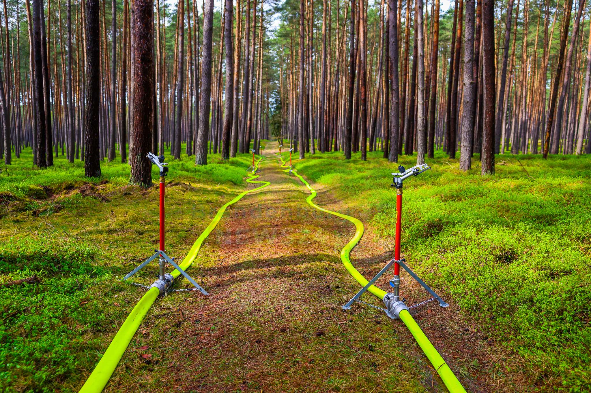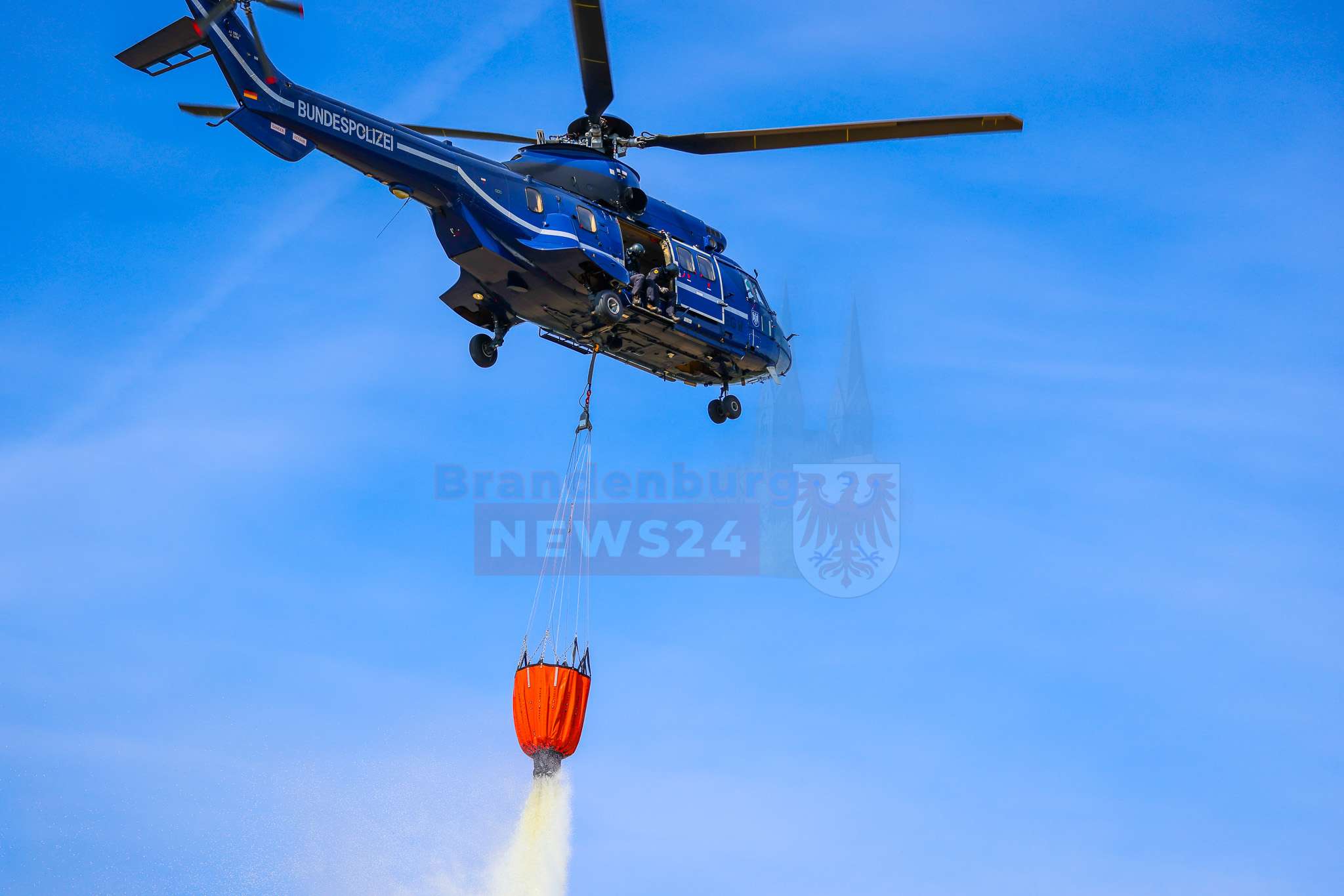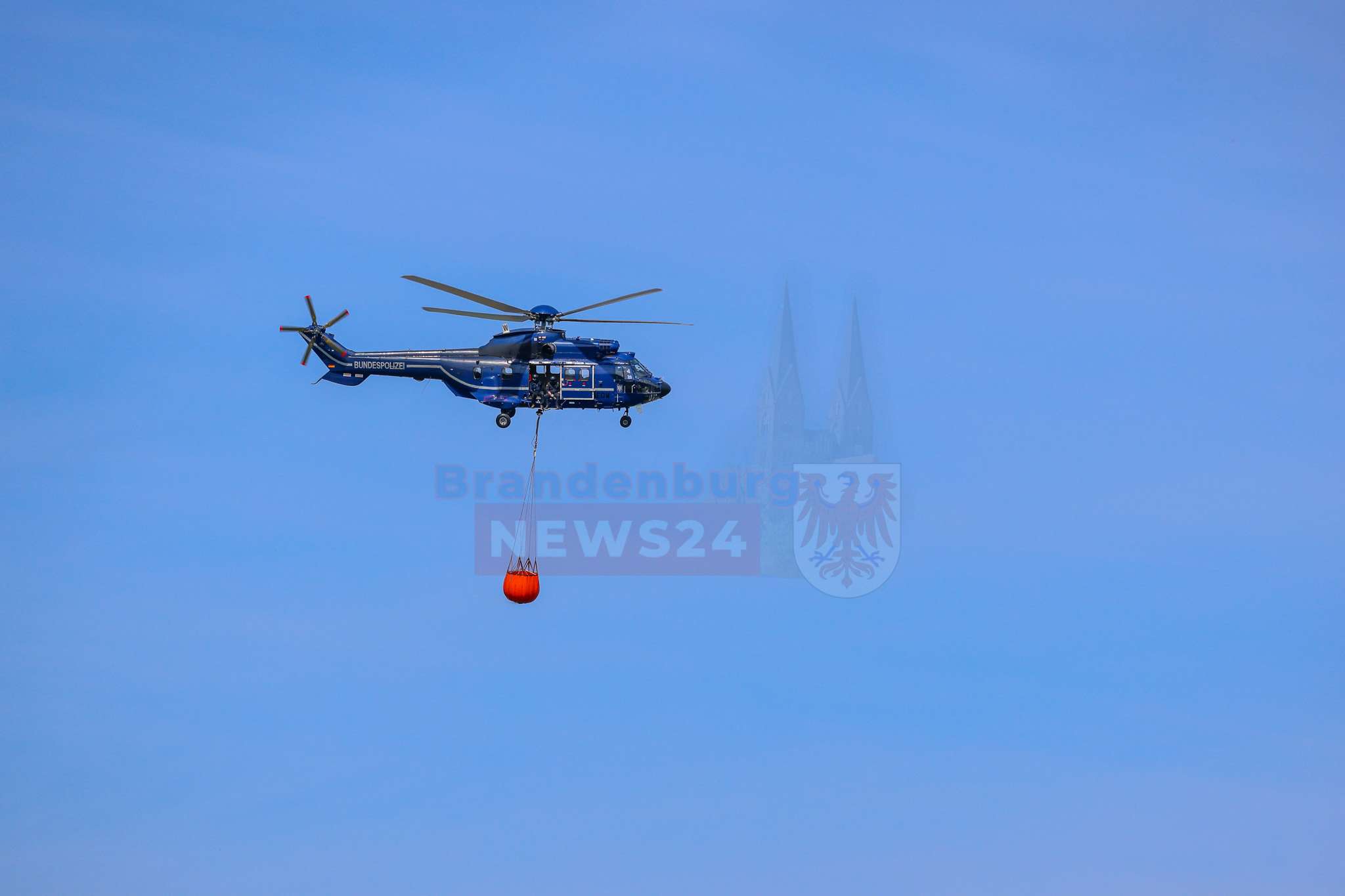 Doch die beste Technik nützt nichts ohne Wasser. Weil Hydranten zwischen den Kiefern fehlen, bauten die Retter eine gigantische Wasserversorgung auf, die zehntausende Liter aus dem Beetzer See über eine Distanz von fünf Kilometern tief in den Forst pumpte. Auch diese leistungsstarken Pumpensysteme sind Teil der neuen Investitionen des Landes. Mit in Reihe geschalteten Hochleistungspumpen und speziellen Regnersystemen errichteten die Einsatzkräfte nasse Barrieren, um das fiktive Feuer vor den bedrohten Dörfern zu stoppen. Unterstützung kam dabei auch von oben: Ein Hubschrauber der Bundespolizei warf gezielt Löschwasser ab. Von einer eigenen Löschflugzeug-Staffel für Brandenburg hält Innenminister Redmann hingegen wenig. Er plädiert für eine europäische Lösung, bei der Flugzeuge flexibel dort eingesetzt werden, wo sie auf dem Kontinent gerade am dringendsten gebraucht werden.