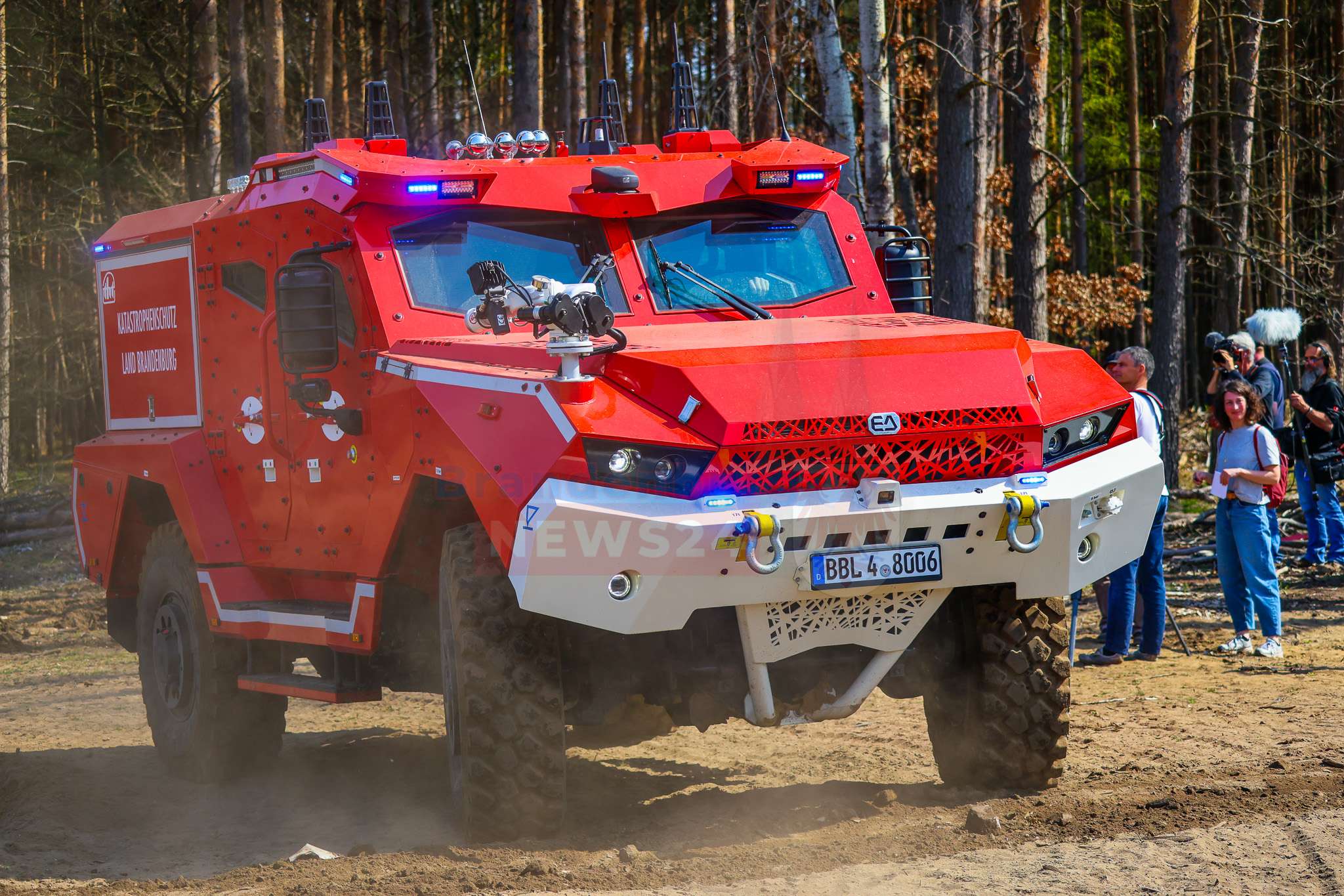 Der Startschuss für das Mammutprojekt fiel bereits am Freitagnachmittag mit einer logistischen Meisterleistung. Auf einer weitläufigen Wiese zwischen Beetz und Rüthnick stampfte das Technische Hilfswerk buchstäblich aus dem Nichts einen riesigen Bereitstellungsraum aus dem Boden. Während schwere Radlader Materialboxen umherwuchteten und Helfer ganze Zeltstädte errichteten, kreisten bereits moderne Aufklärungsdrohnen am Himmel, um der Einsatzleitung erste Übersichtsbilder zu liefern. Ein besonderer Blickfang war dabei das neue, ballistisch geschützte Waldbrand-Spezialfahrzeug des Landeskatastrophenschutzes – ein gepanzerter Riese, der genau für die unwegsamen und lebensgefährlichen Gebiete konzipiert wurde, in die sich die Helfer am nächsten Tag wagen sollten.