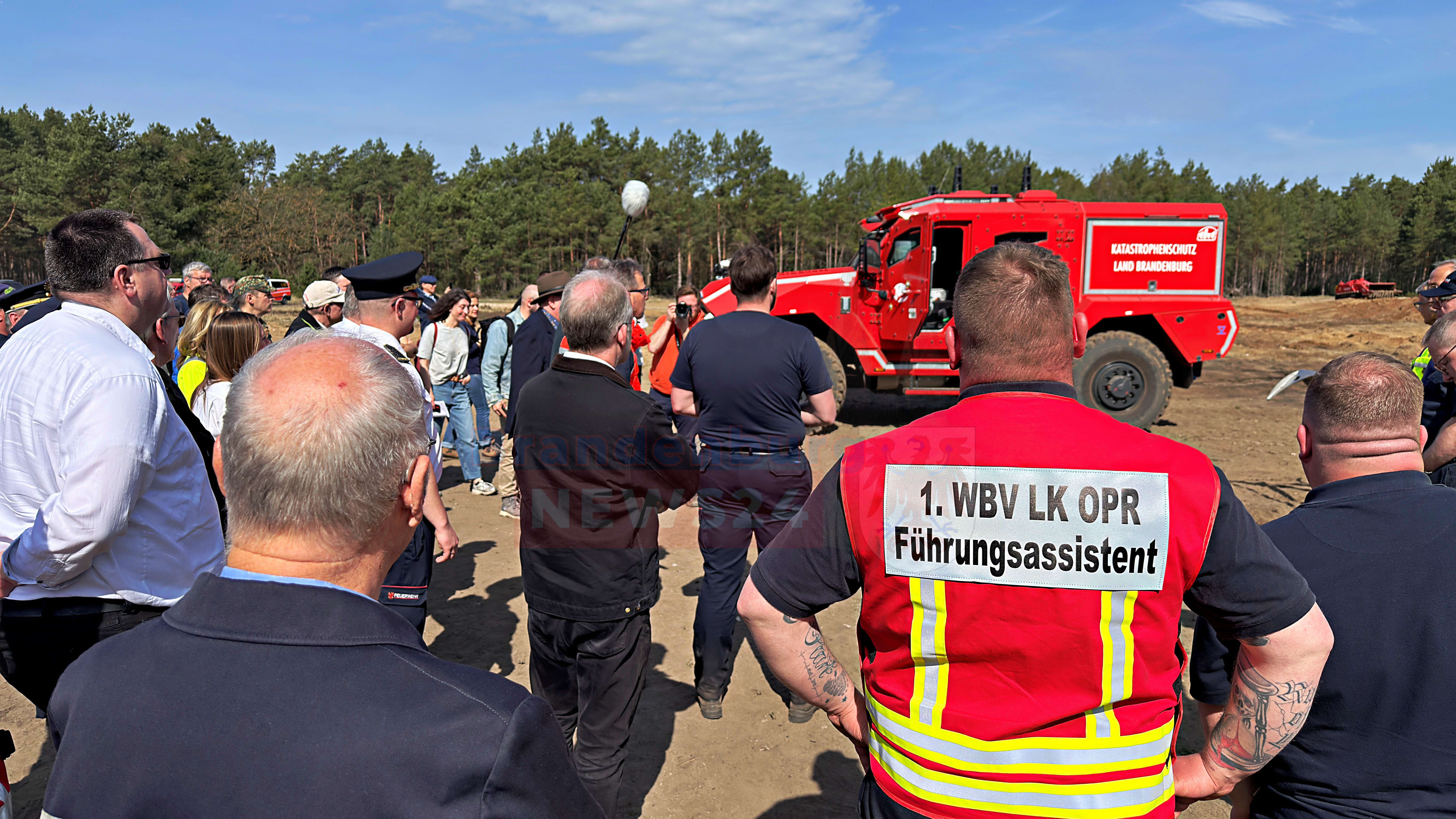 Während an der Front gegen Hitze und Trockenheit gekämpft und parallel die geordnete Evakuierung der betroffenen Dörfer geprobt wurde, glühten im Oranienburger Technik- und Ausbildungszentrum die Drähte. Dort lenkte der Krisenstab die hunderten Helfer fernab des Rauchs. Um die interkommunale Zusammenarbeit auf die Spitze zu treiben, wurde die Einsatzleitung während des Wochenendes sogar komplett vom Landkreis Oberhavel an Ostprignitz-Ruppin übergeben. Allein in OPR gibt es 90.000 Hektar Wald, darunter die gefährliche Kyritz-Ruppiner Heide. Bei einem Ernstfall dort müssen die Führungskräfte genau wissen, wer am anderen Ende der Funkleitung sitzt.