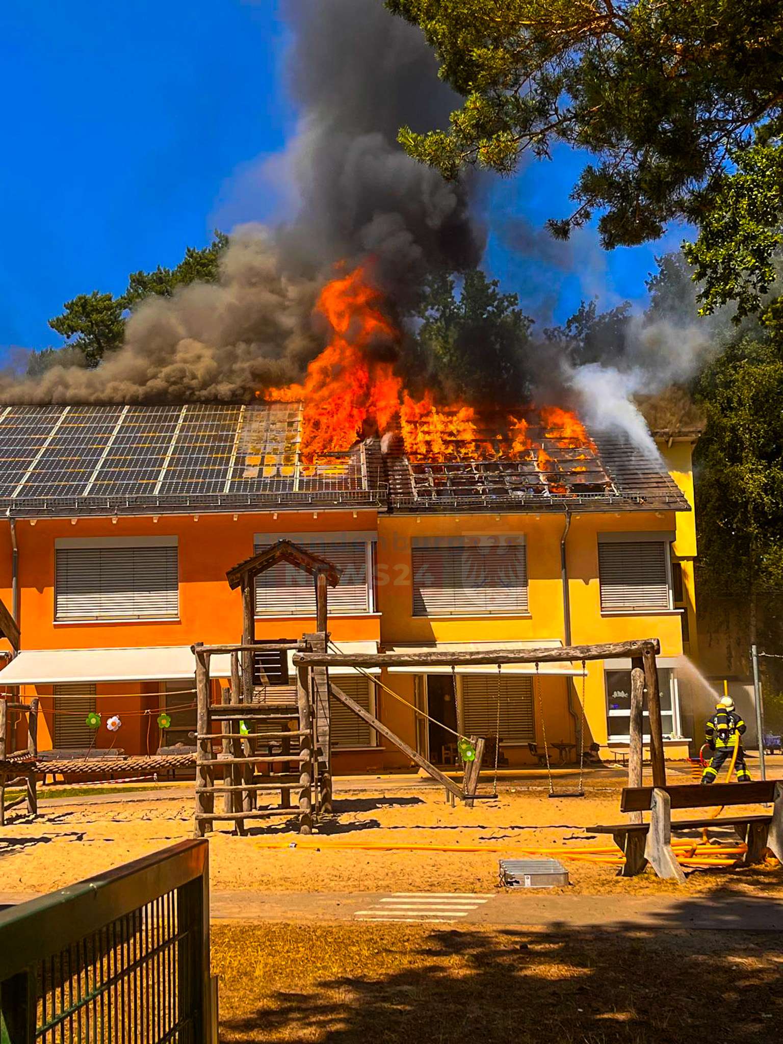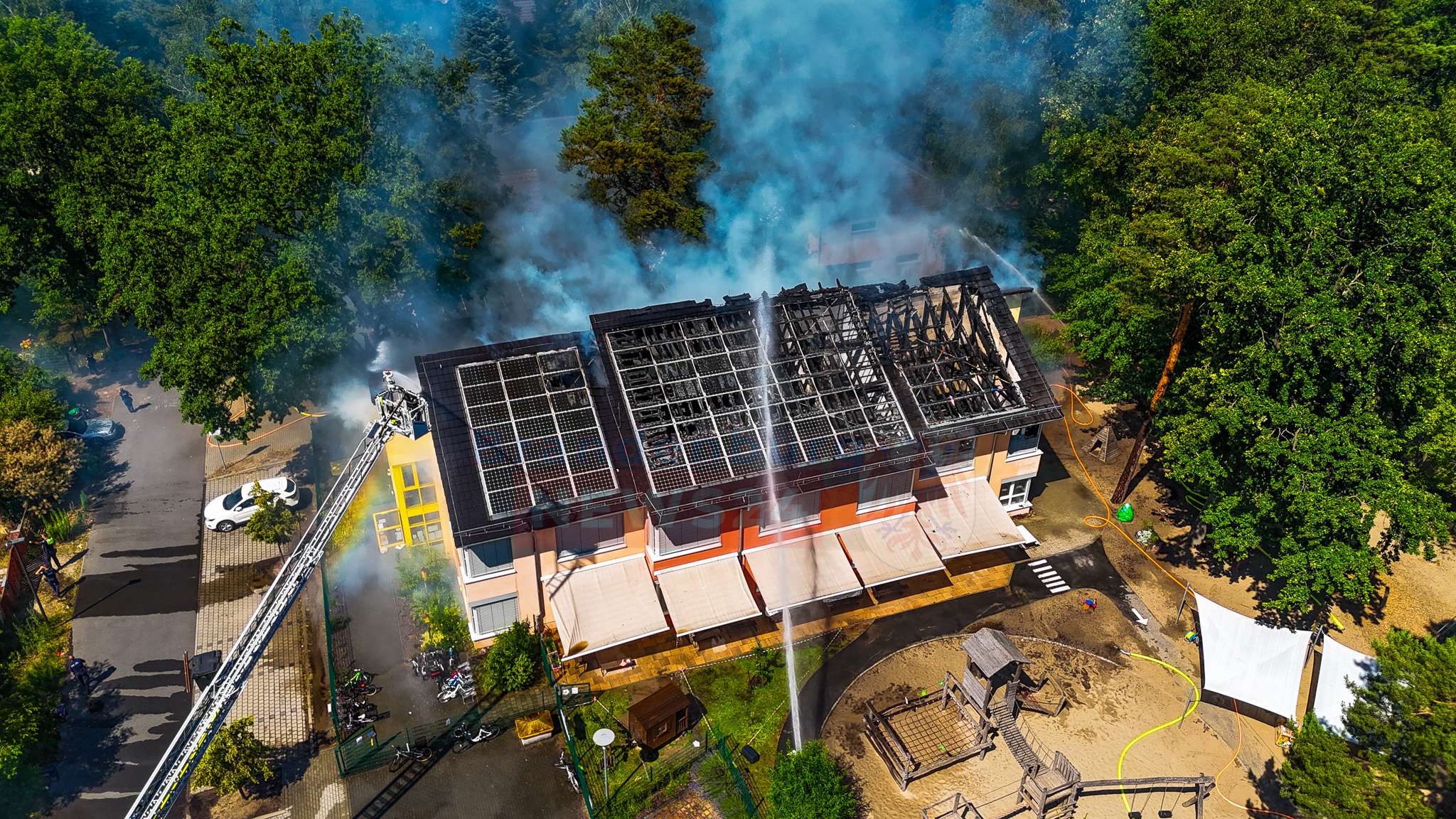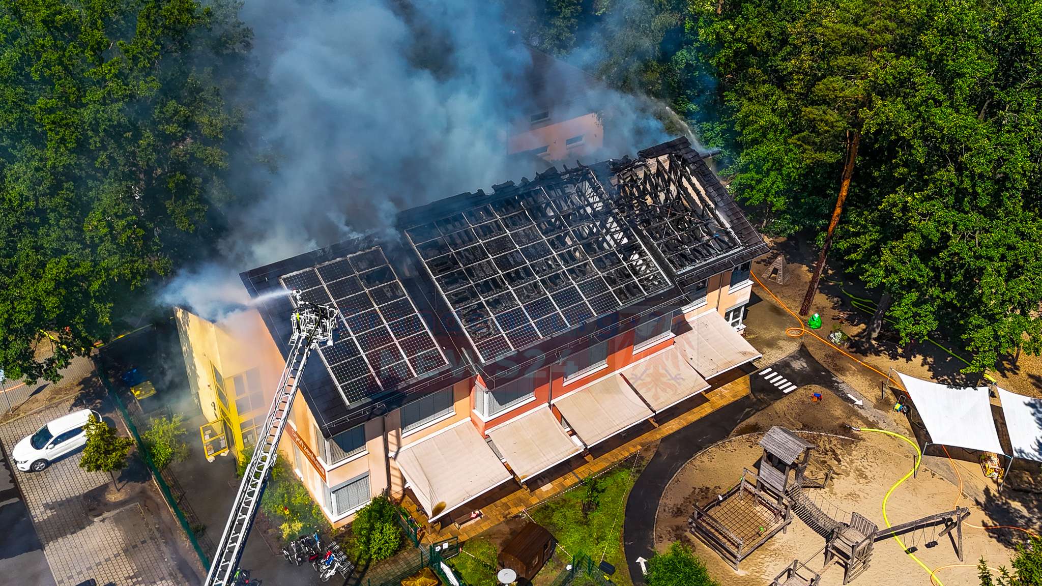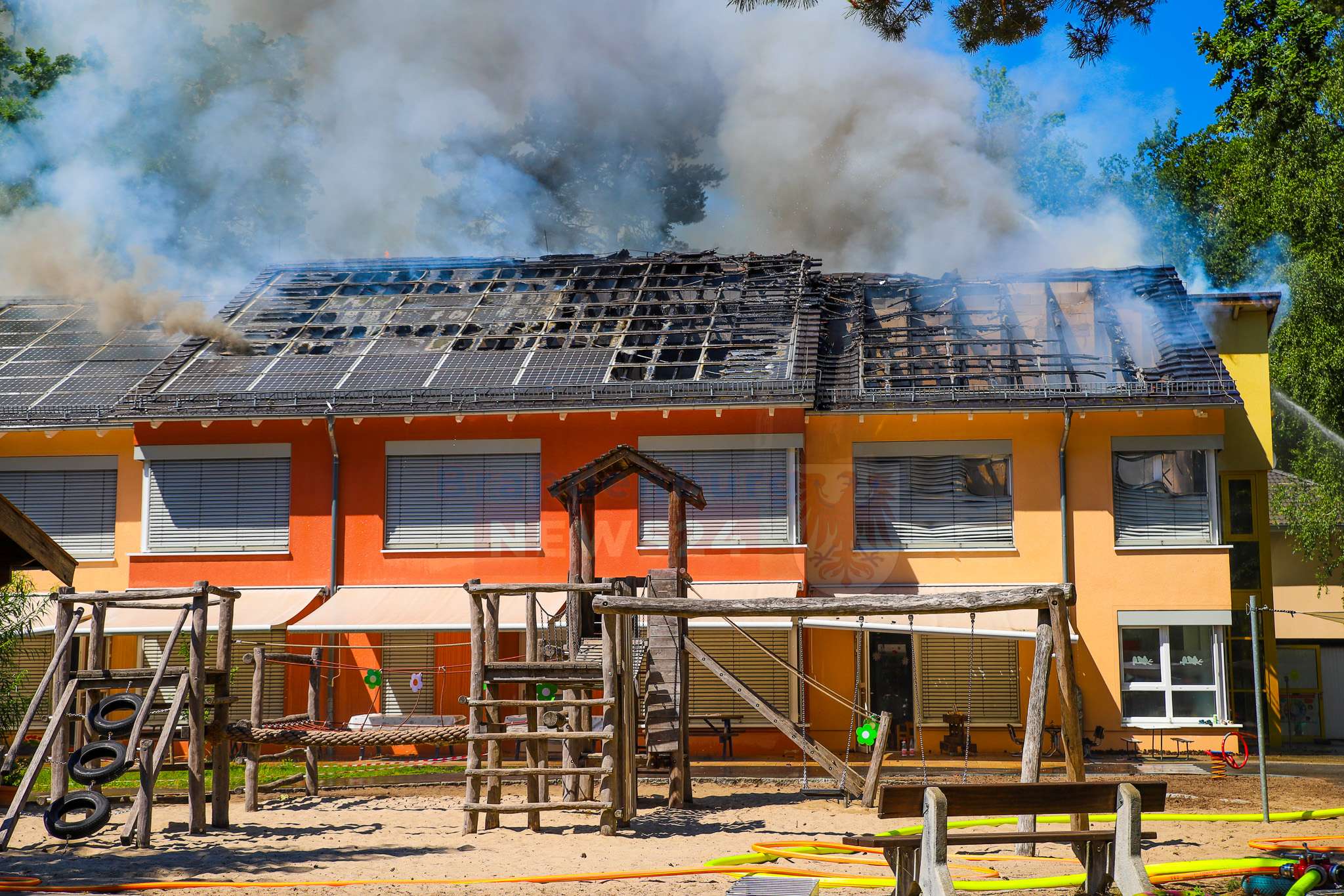 Kita brennt – 73 Kinder evakuiert: Großeinsatz für Feuerwehr bei Dachstuhlbrand bei 38 Grad – Einsatzkräfte an Belastungsgrenze