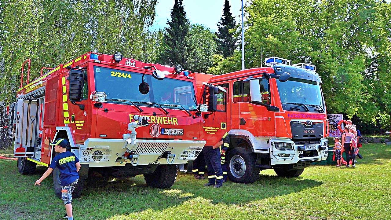 Ab 9:30 Uhr konnten die Gäste spannende Feuerwehrübungen verfolgen und sich am Brandschutzmobil über wichtige Sicherheitsmaßnahmen informieren. Neben den Feuerwehren präsentierten auch das THW, das DRK, die Polizei und die Wasserwacht ihre Arbeit und Ausrüstung. Ebenfalls präsentierte die Bundeswehr mehrere Ihrer Fahrzeuge. Darunter der Spähwagen FENNEK.