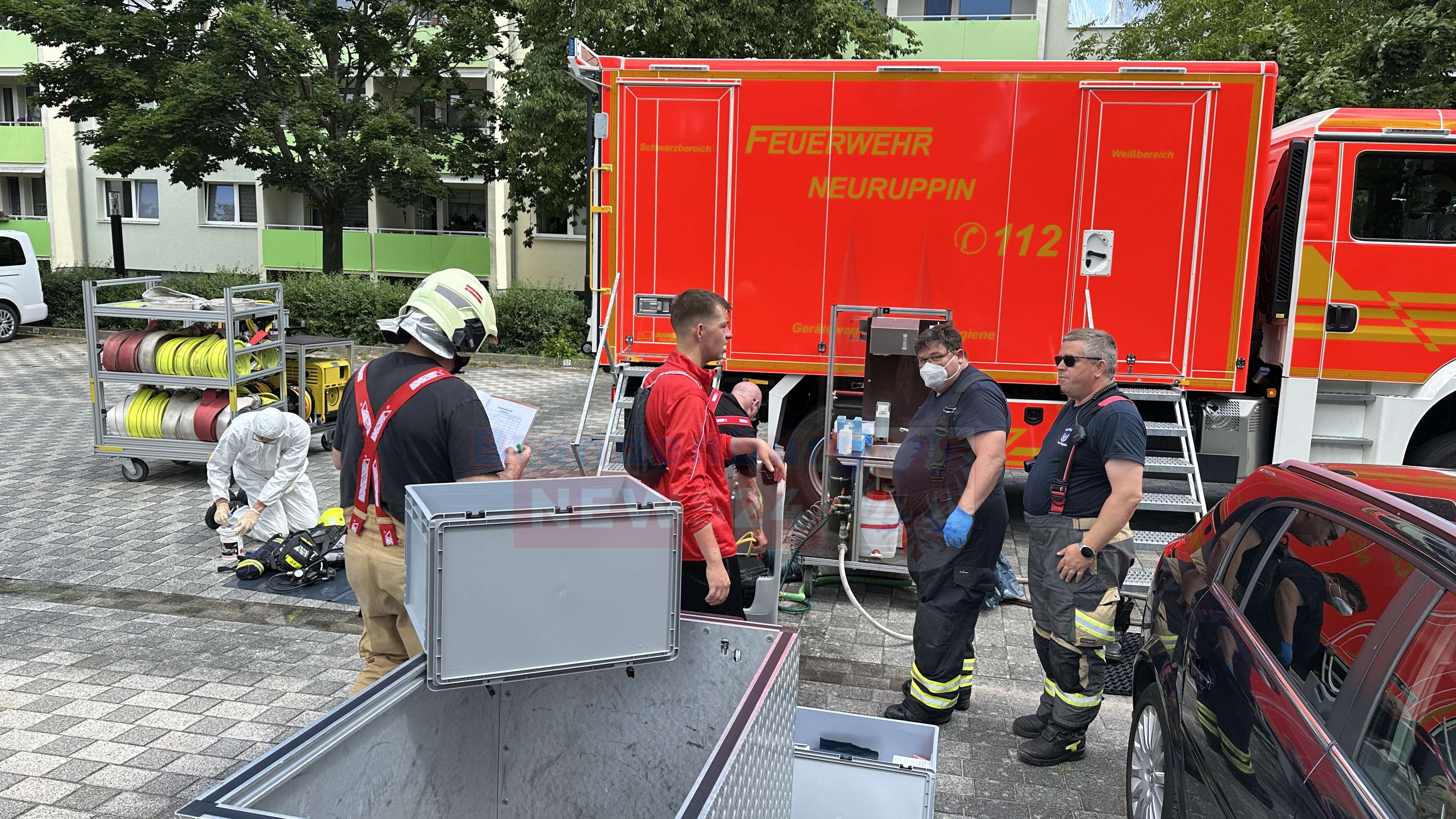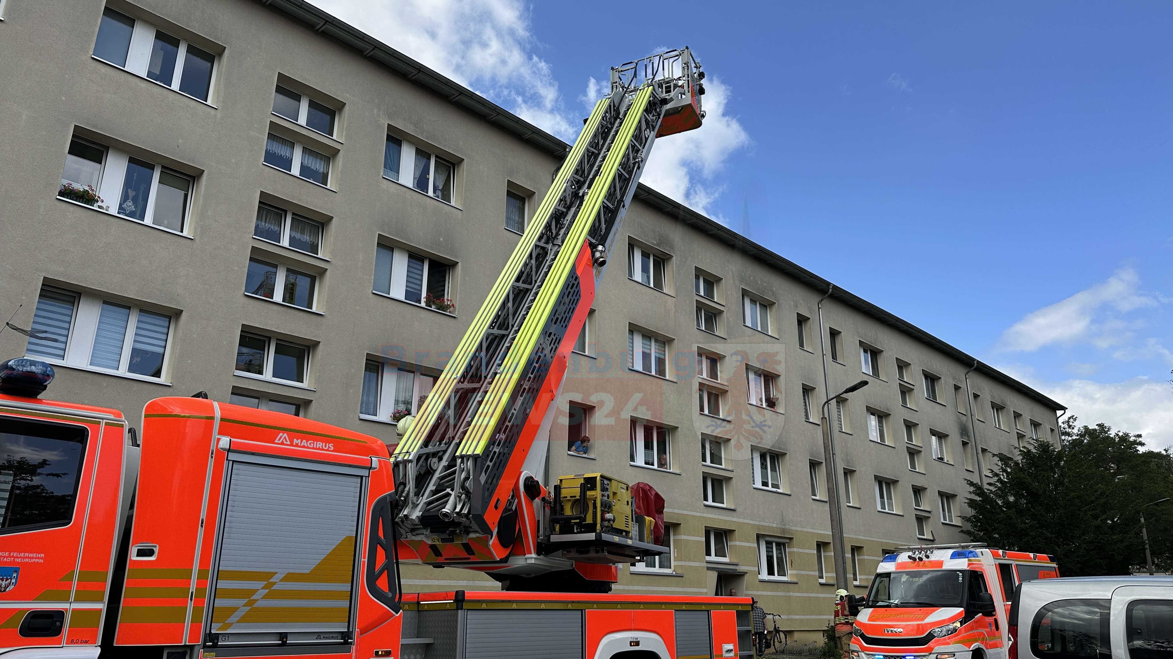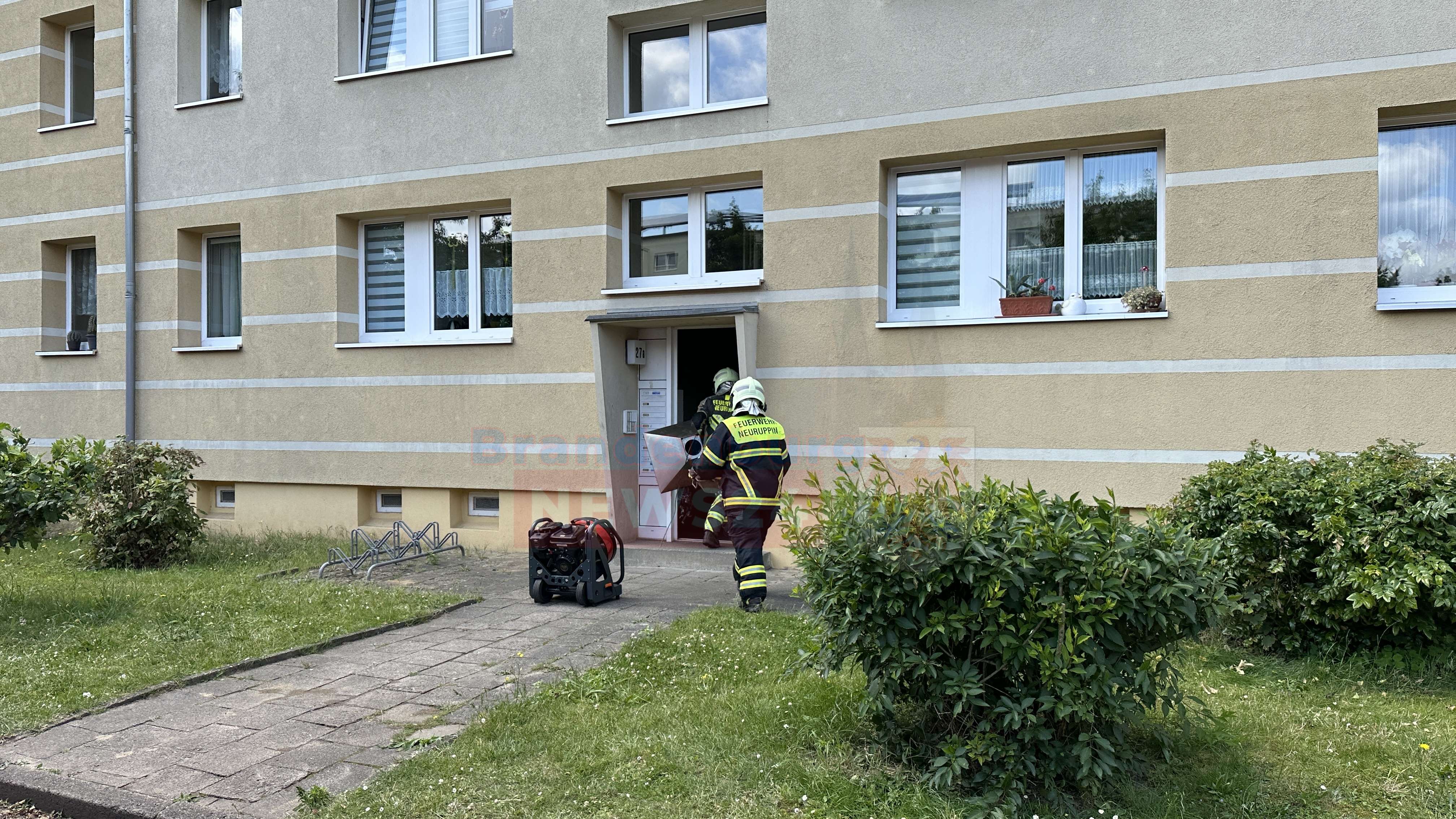 Neuruppin – Ein Küchenbrand in der Franz-Maecker-Straße in Neuruppin hat heute Vormittag zu einem Großeinsatz der Feuerwehr geführt. Ausgelöst durch einen piependen Rauchmelder in einer stark verqualmten Wohnung, fanden die Einsatzkräfte bei ihrem Eintreffen einen Küchenbrand vor. Vermutlich hat sich ein Holzbrett auf dem eingeschalteten Herd entzündet, sodass weitere Küchenmöbel in Brand gerieten.