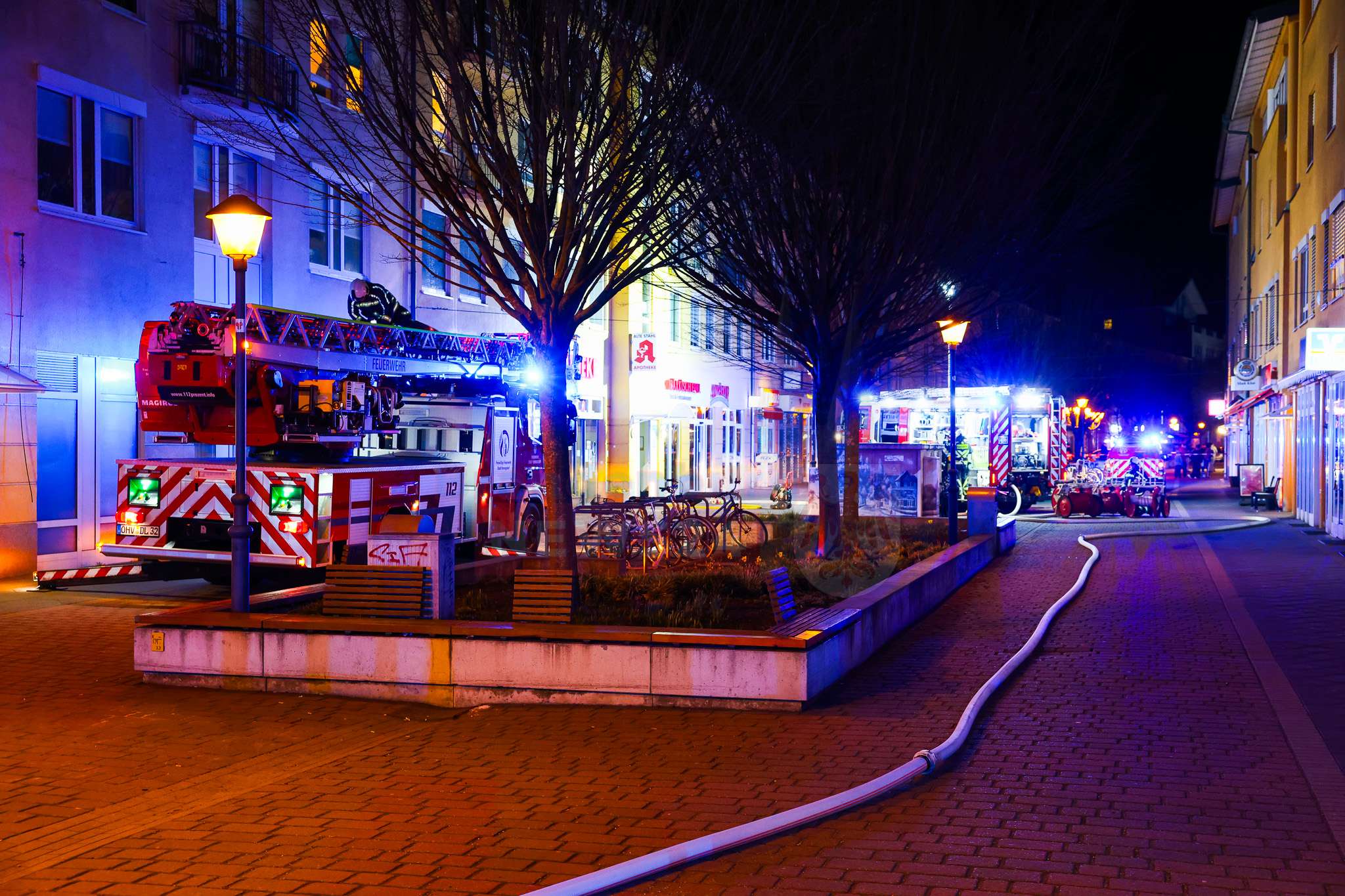 Aufgrund der zentralen Lage der Havelpassage war die Einsatzstelle zunächst von zahlreichen Schaulustigen umgeben. „Zu dieser Uhrzeit sind hier viele Menschen unterwegs – sei es in den Bars oder beim Spazierengehen“, erklärte Stephan. Die Polizei sperrte den Bereich jedoch zügig ab, sodass die Feuerwehr ungestört arbeiten konnte.