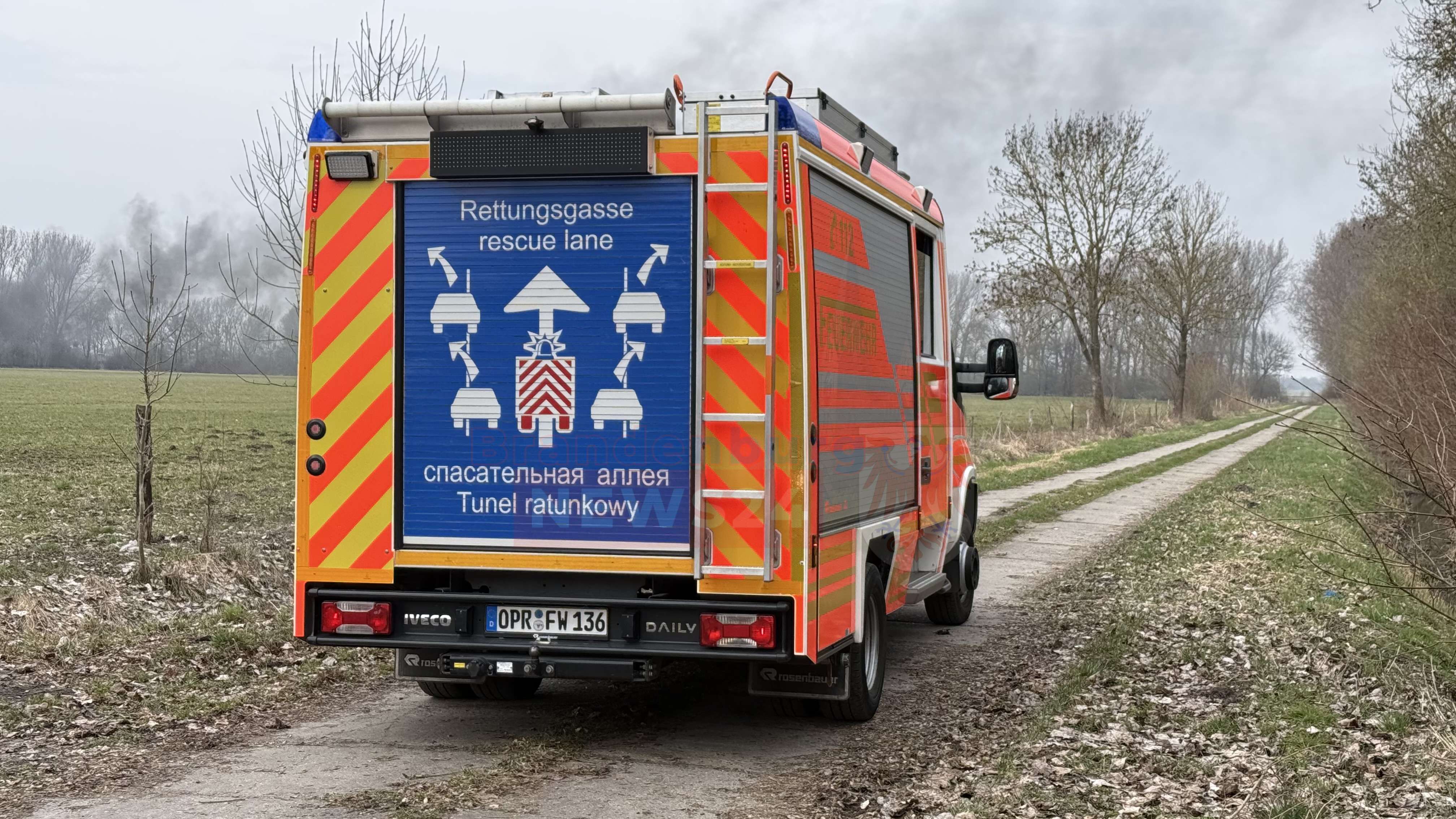Neuruppin. Es war 13:25 Uhr am Dienstag als die Feuerwehr zu einem Brand auf ein landwirtschaftliches Feld nahe dem Ortsteil Bechlin gerufen wurden. Schon aus der Ferne wies eine gewaltige, tiefschwarze Rauchwolke den Einsatzkräften den Weg.
