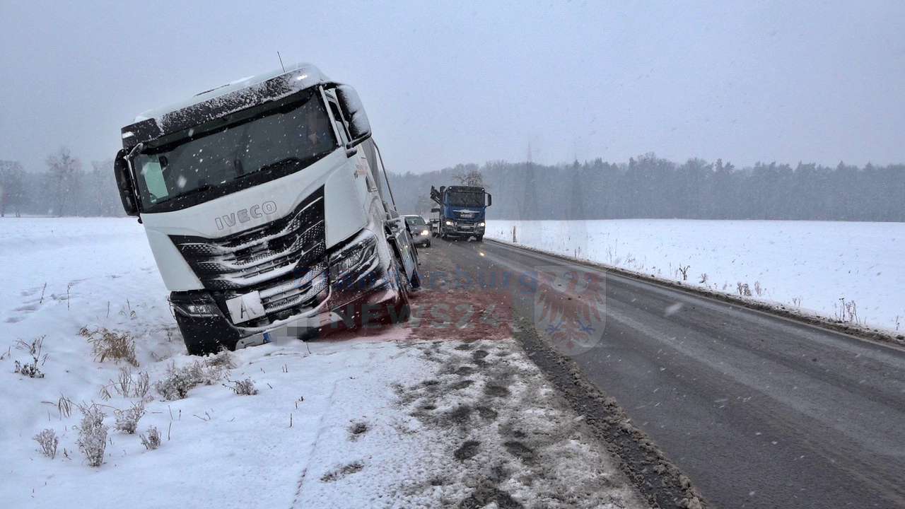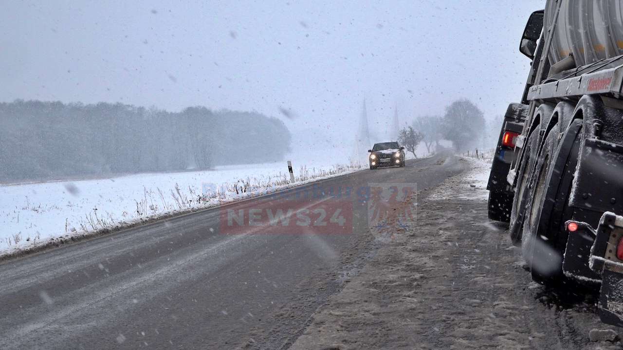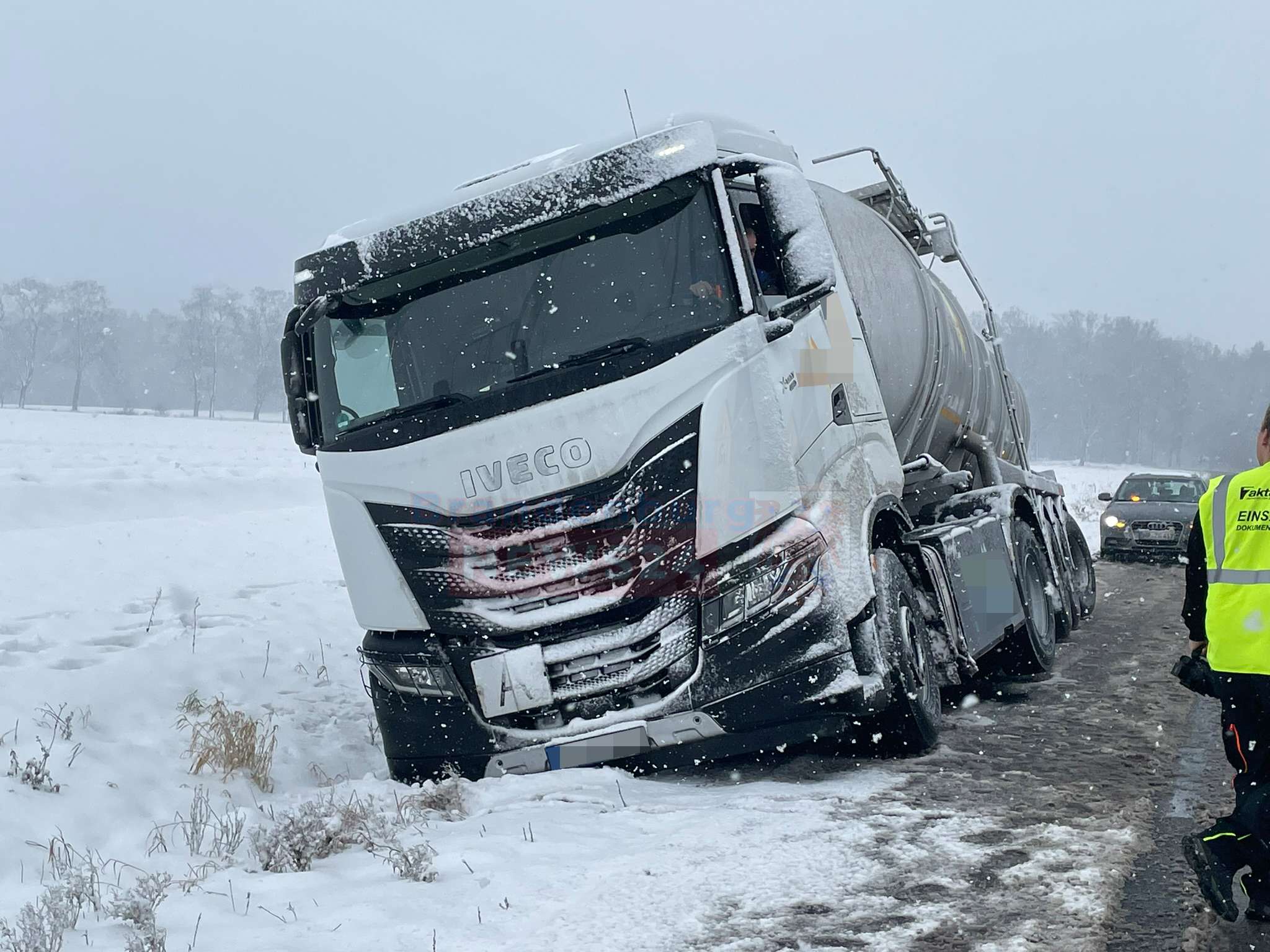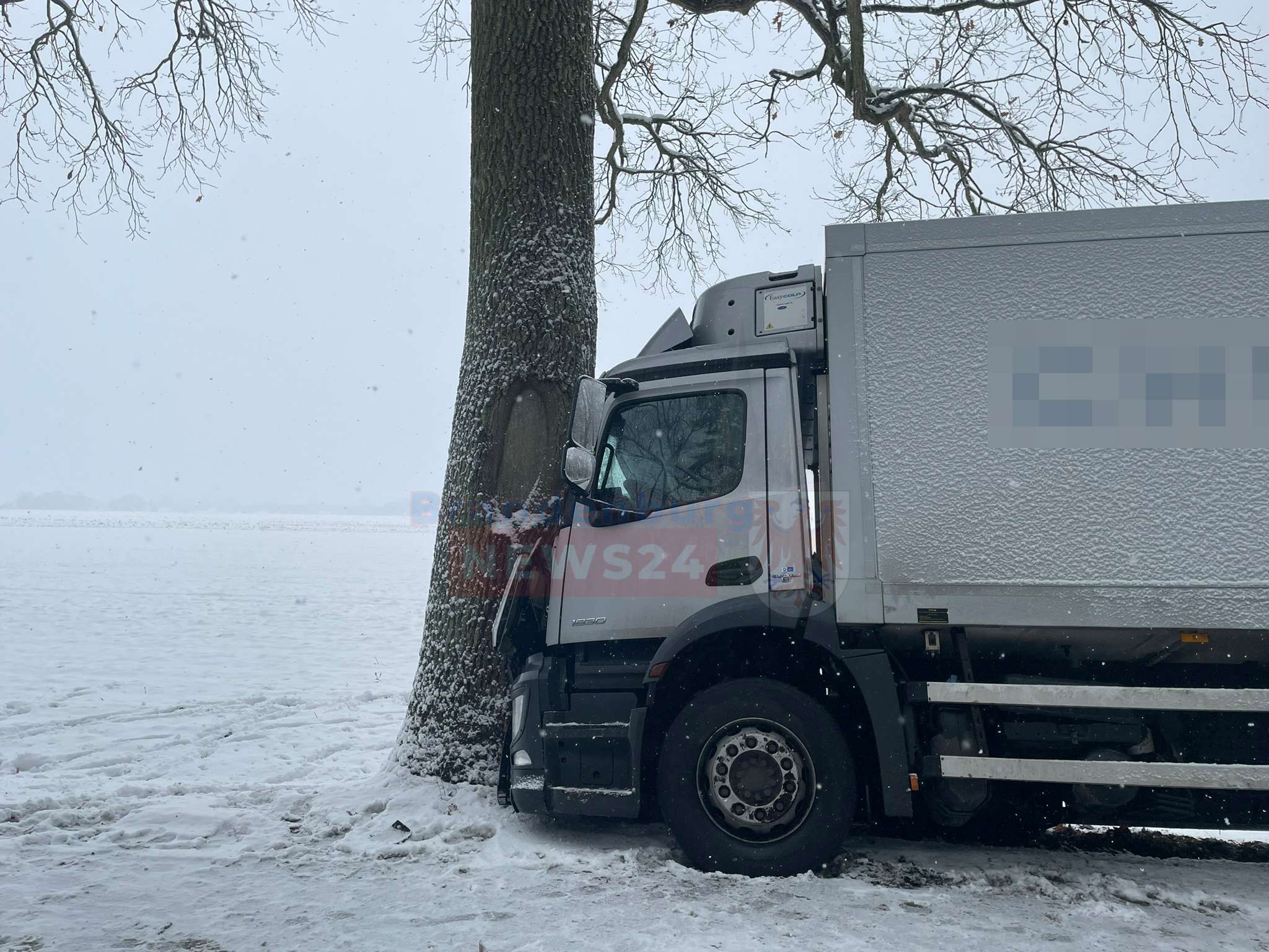 Aufgrund einer Glatten Fahrbahn kam ein 43-Jähriger LKW-Fahrer, der in Richtung Großwoltersdorf unterwegs war, nach rechts von der Fahrbahn ab und kollidierte mit einem Baum. Der Fahrer wurde leicht verletzt mit einem Rettungswagen in ein Krankenhaus verbracht. Es entstand ein Sachschaden von circa 10.000 Euro.