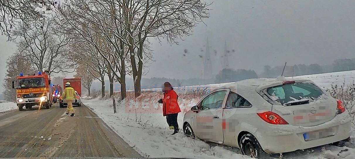 Ein weiterer Unfall ereignete sich ebenfalls auf der L222 in Richtung Großwoltersdorf, als eine PKW-Fahrerin nach rechts von der Fahrbahn abkam und in ein Graben rutschte. Sie wurde ebenfalls nicht verletzt.