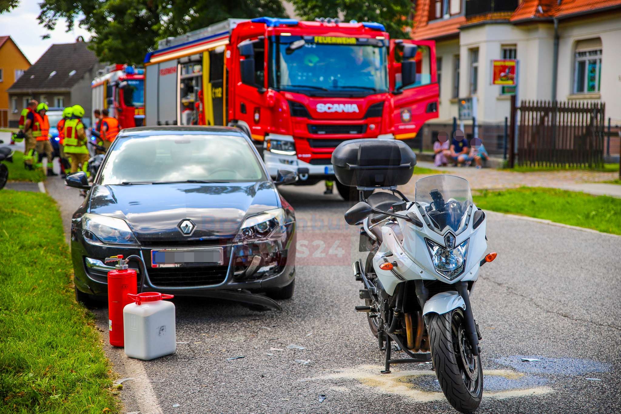 Kremmen – Am Sonntagmittag kam es gegen 13:25 Uhr auf der Ruppiner Straße in Kremmen zu einem Verkehrsunfall. Nach ersten Angaben der Polizei wollte ein Motorradfahrer vom Parkplatz nach rechts auf die Ruppiner Straße auffahren, als es zur Kollision mit einem Renault-Pkw kam.
