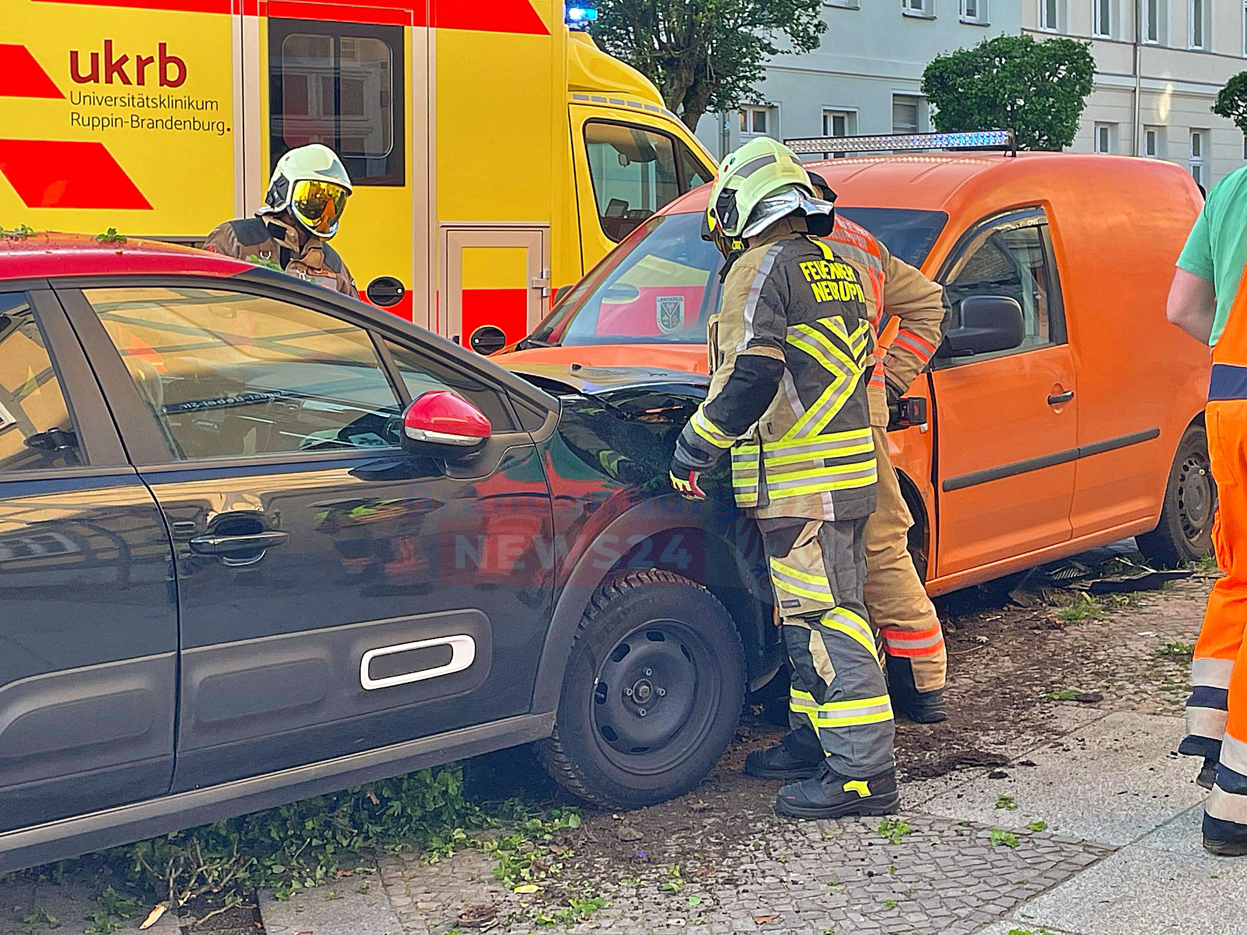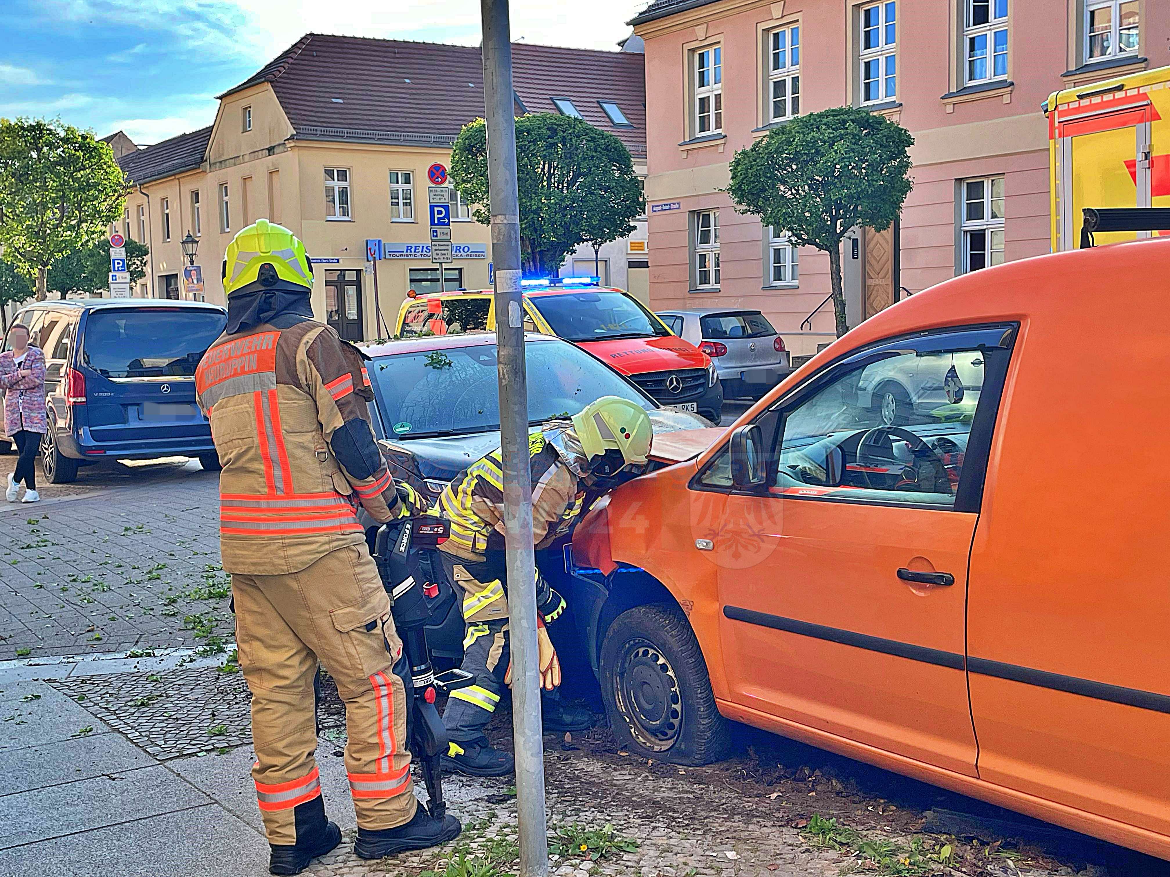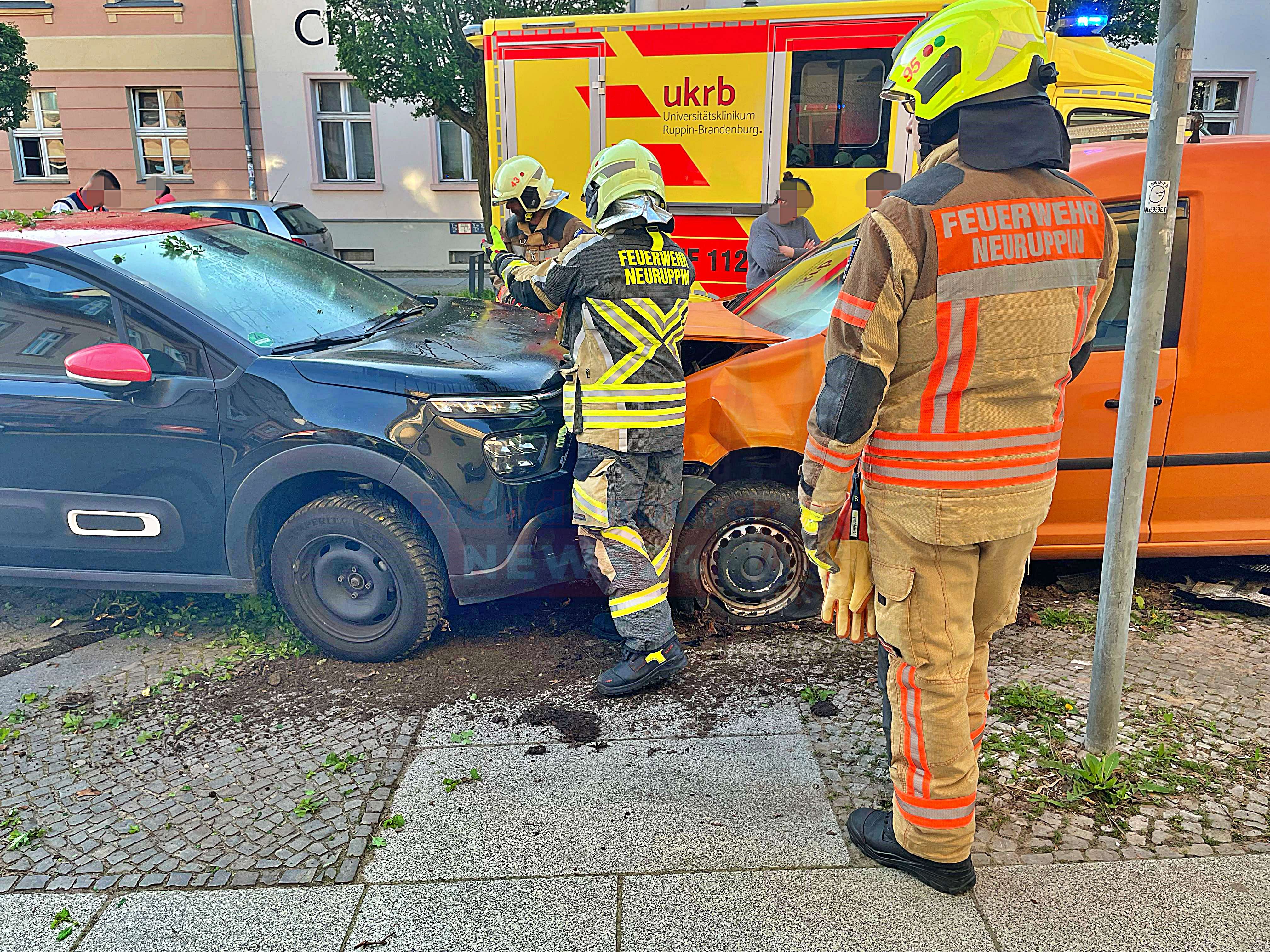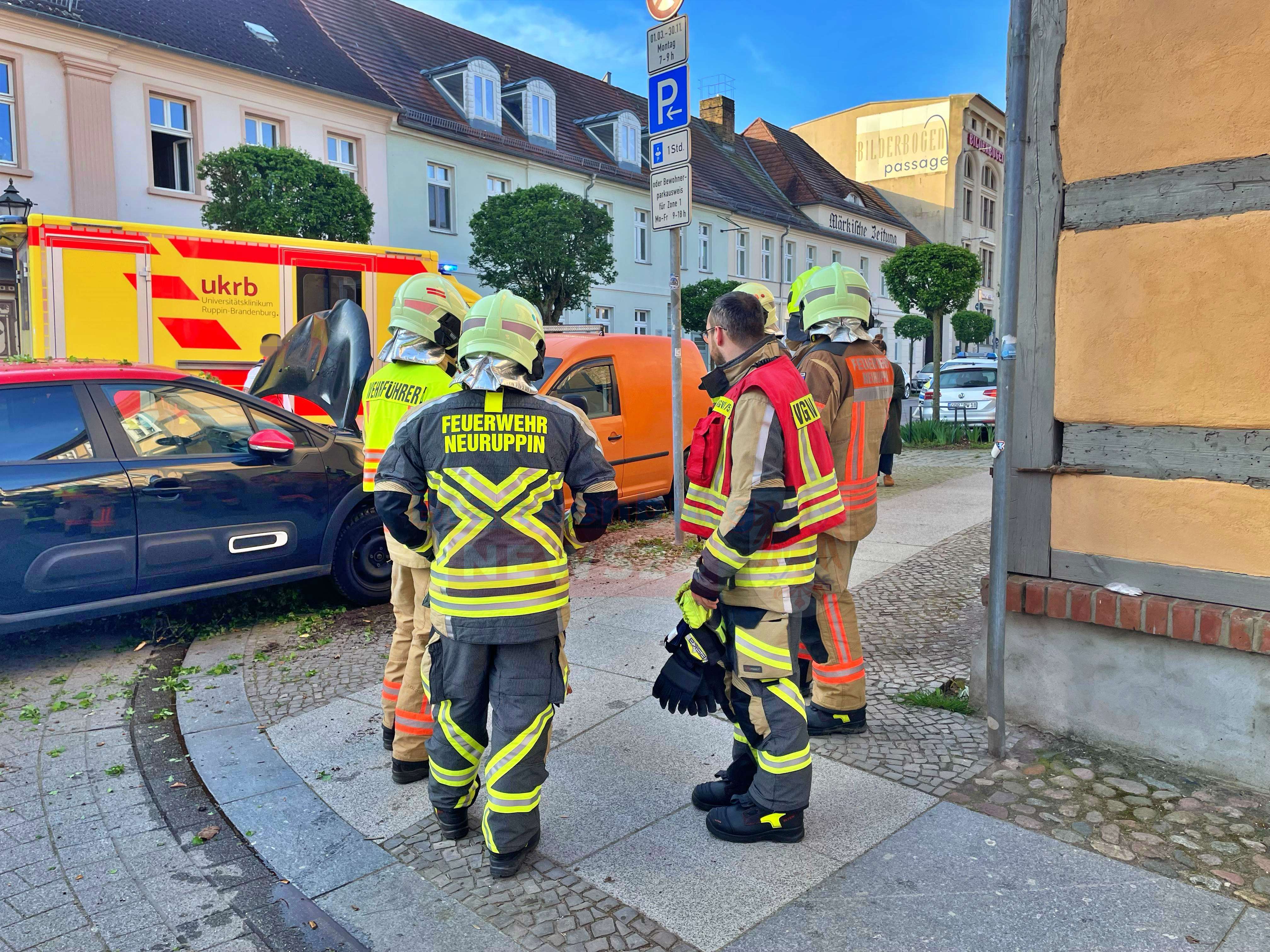 Die Feuerwehr Neuruppin war ebenfalls im Einsatz und klemmte die Batterie der beschädigten Fahrzeugen ab. Außerdem nahm sie auslaufende Betriebsstoffe auf.