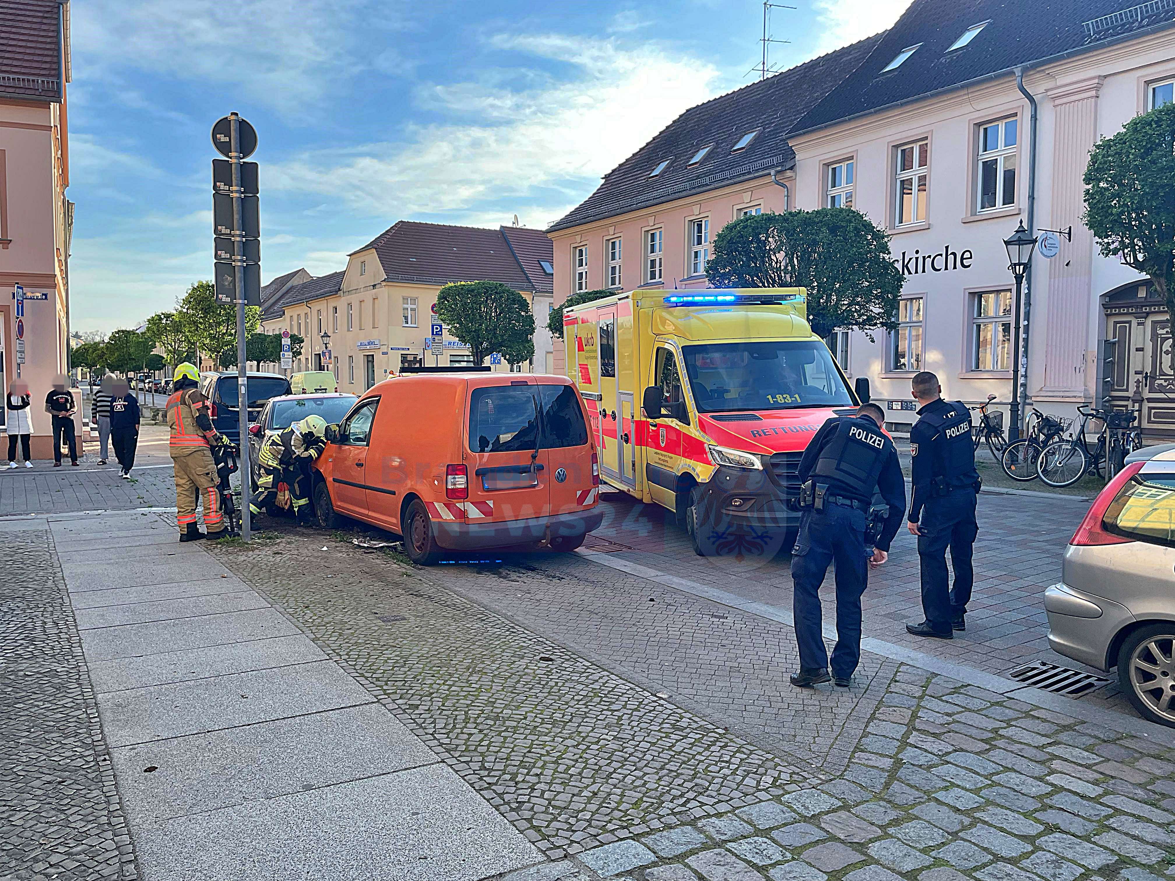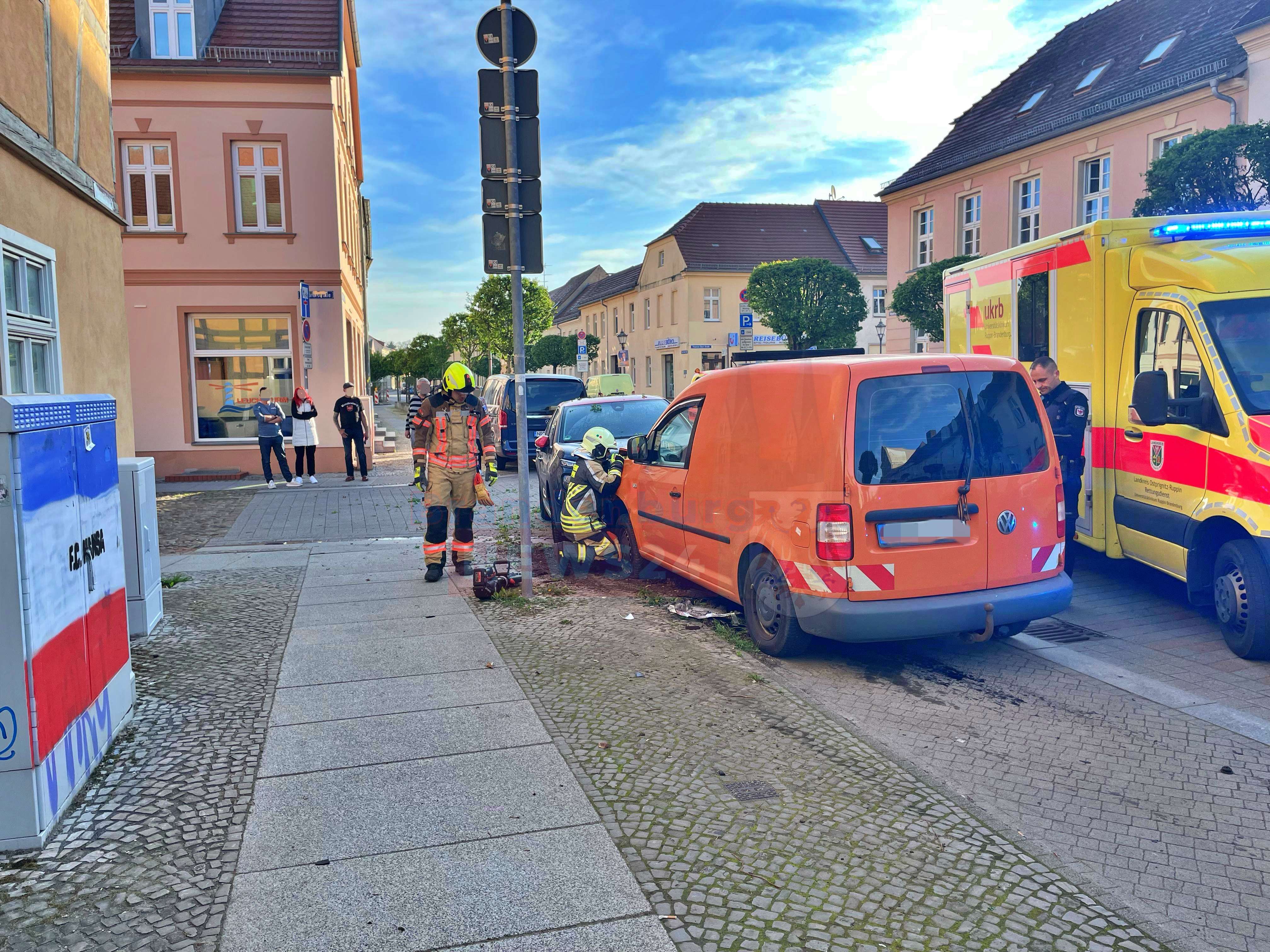 Neuruppin: Am Samstagmorgen kam es gegen 7:50 Uhr auf der August-Bebel-Straße in Neuruppin zu einem Verkehrsunfall mit einem Verletzten.