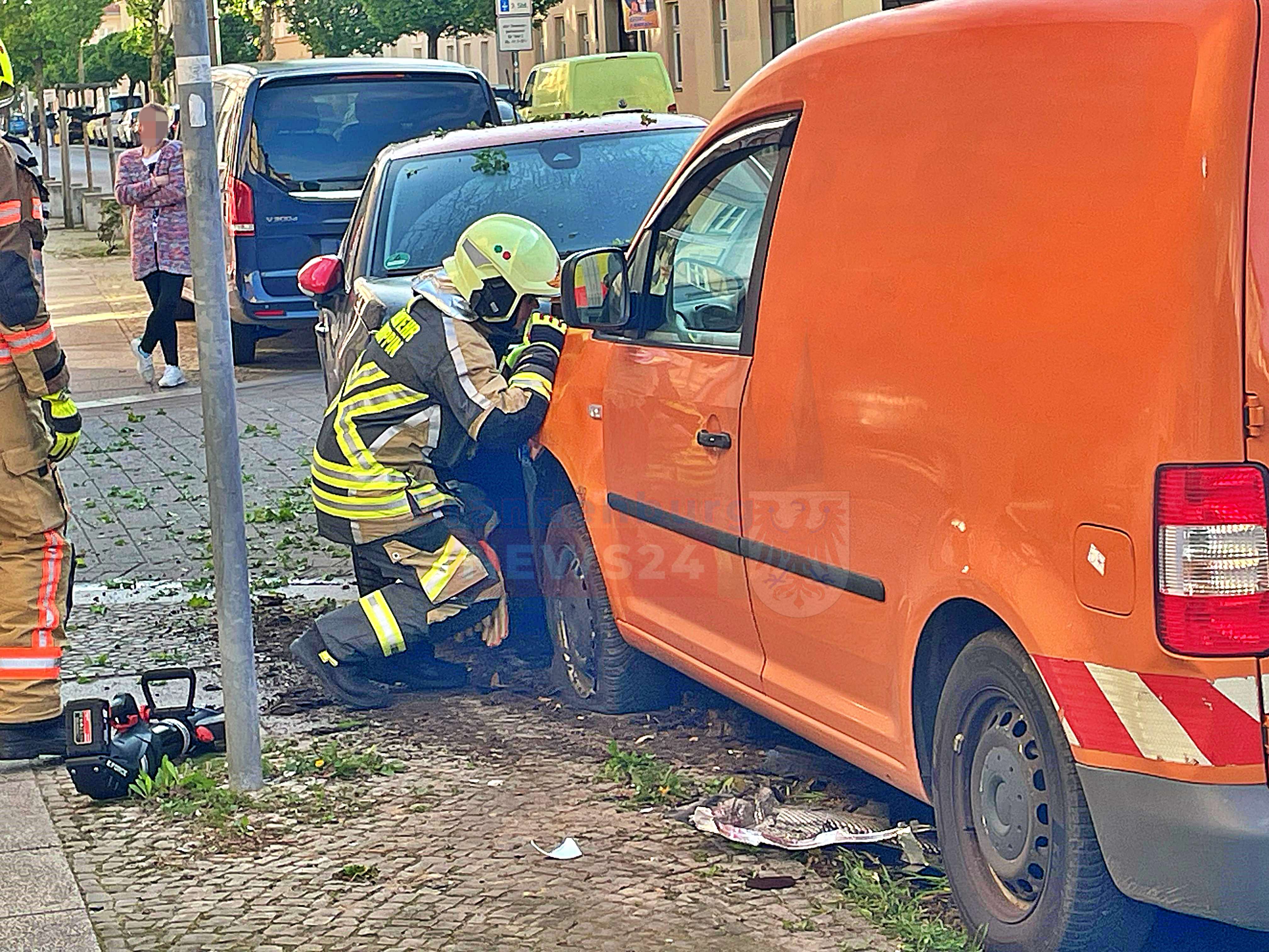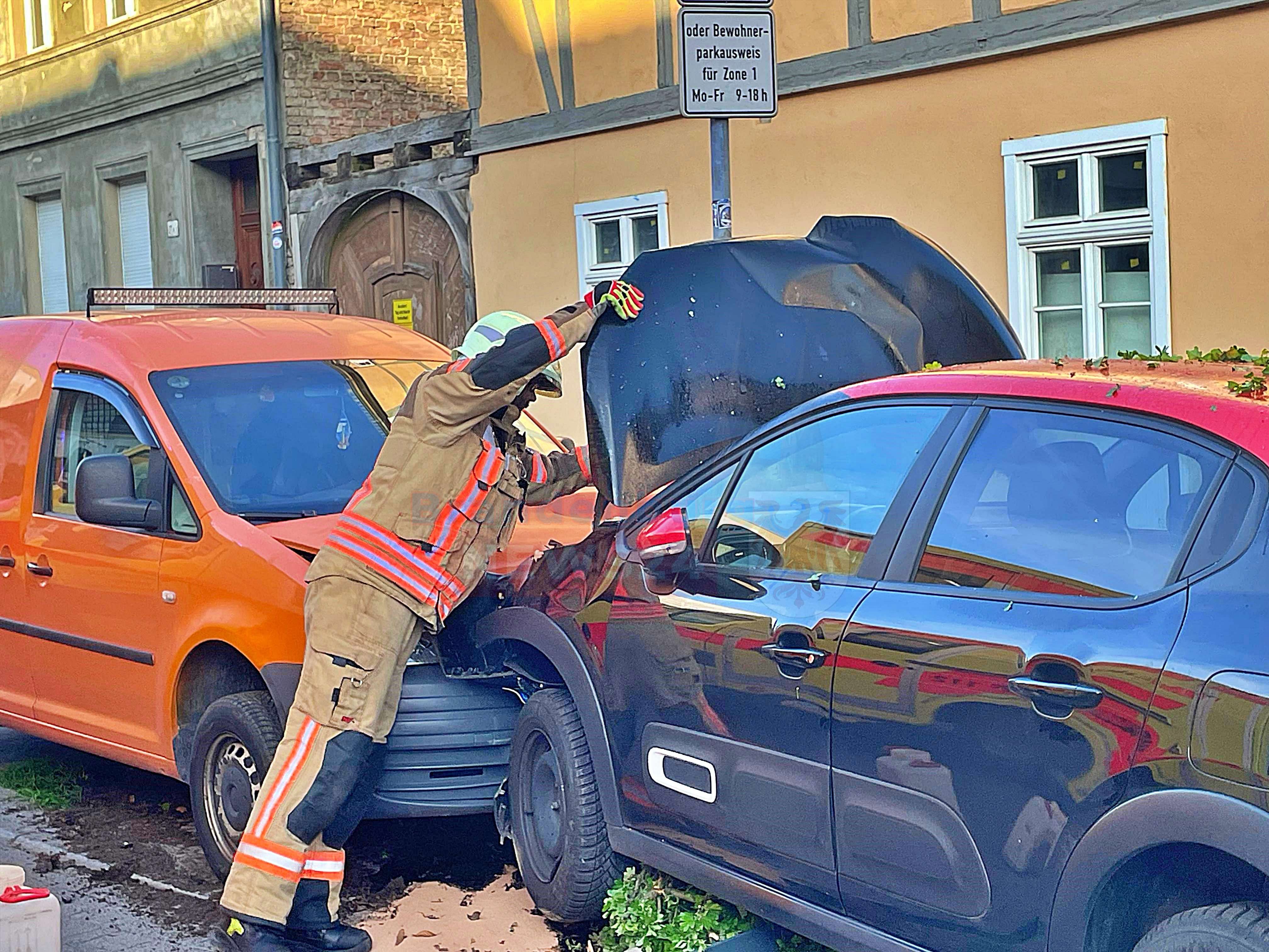 Ein 39-jähriger Mann war mit seinem VW Caddy in Richtung Schinkelstraße unterwegs, als er aus gesundheitlichen Gründen die Kontrolle über sein Fahrzeug verlor. Er kam nach links von der Fahrbahn ab, streifte ein geparktes Fahrzeug und prallte dann frontal mit einem Citroen zusammen.