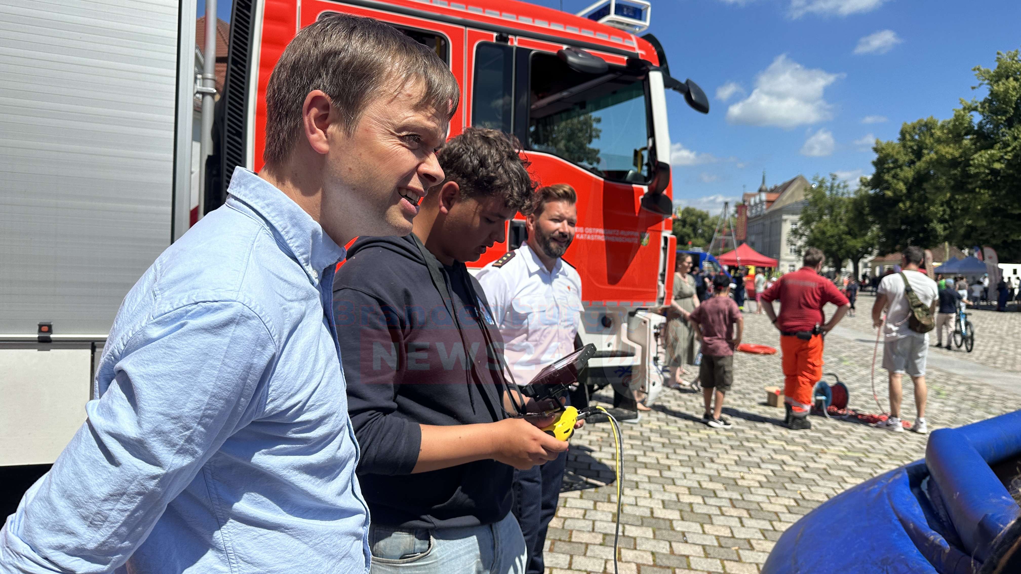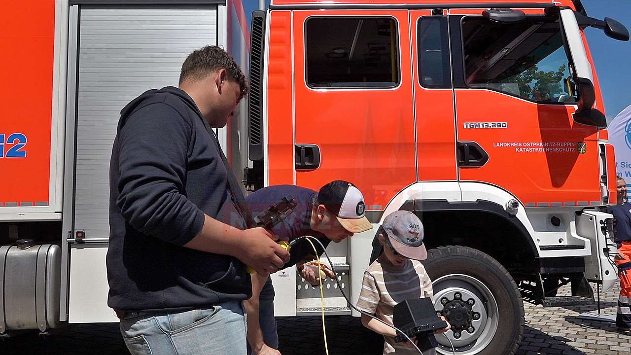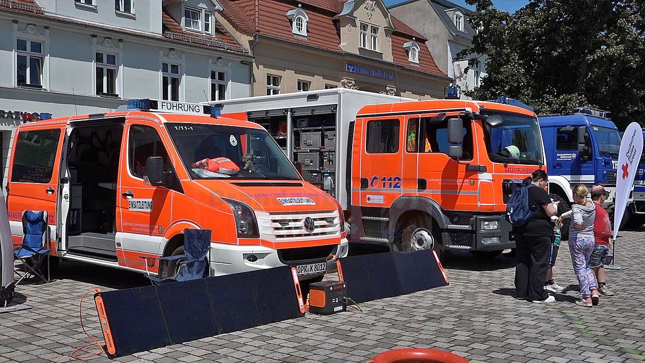 Neuruppin. Am gestrigen Sonnabend dem 28.06.2025 verwandelte sich der Schulplatz in Neuruppin in eine lebendige Demonstrationsfläche für die gesamte "Blaulichtfamilie". Trotz hochsommerlicher Temperaturen um die 30 Grad strömten den Tag über Tausende von Besuchern zum Blaulichttag, um die Arbeit und Ausrüstung von Feuerwehr, Polizei, Rettungsdienst, DRK, THW, Seelsorgern und dem ENT hautnah zu erleben.