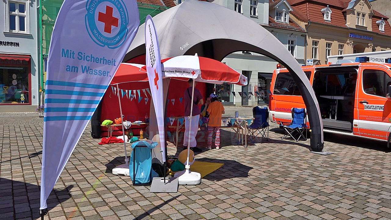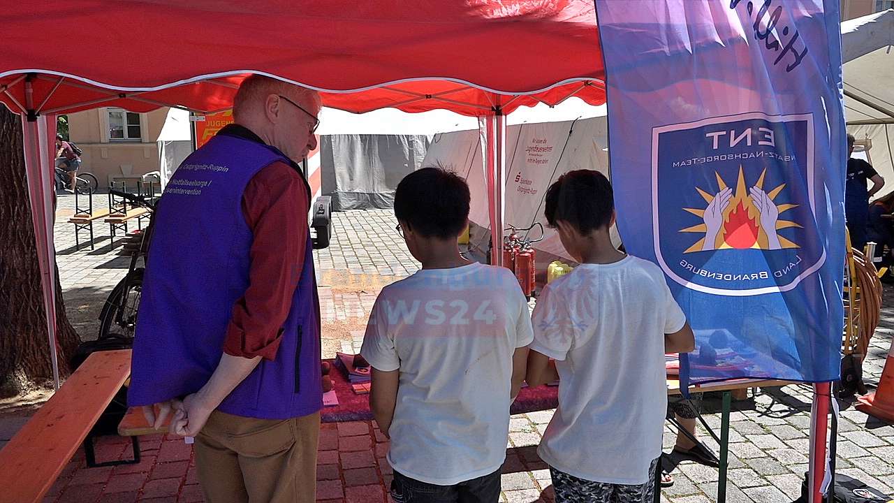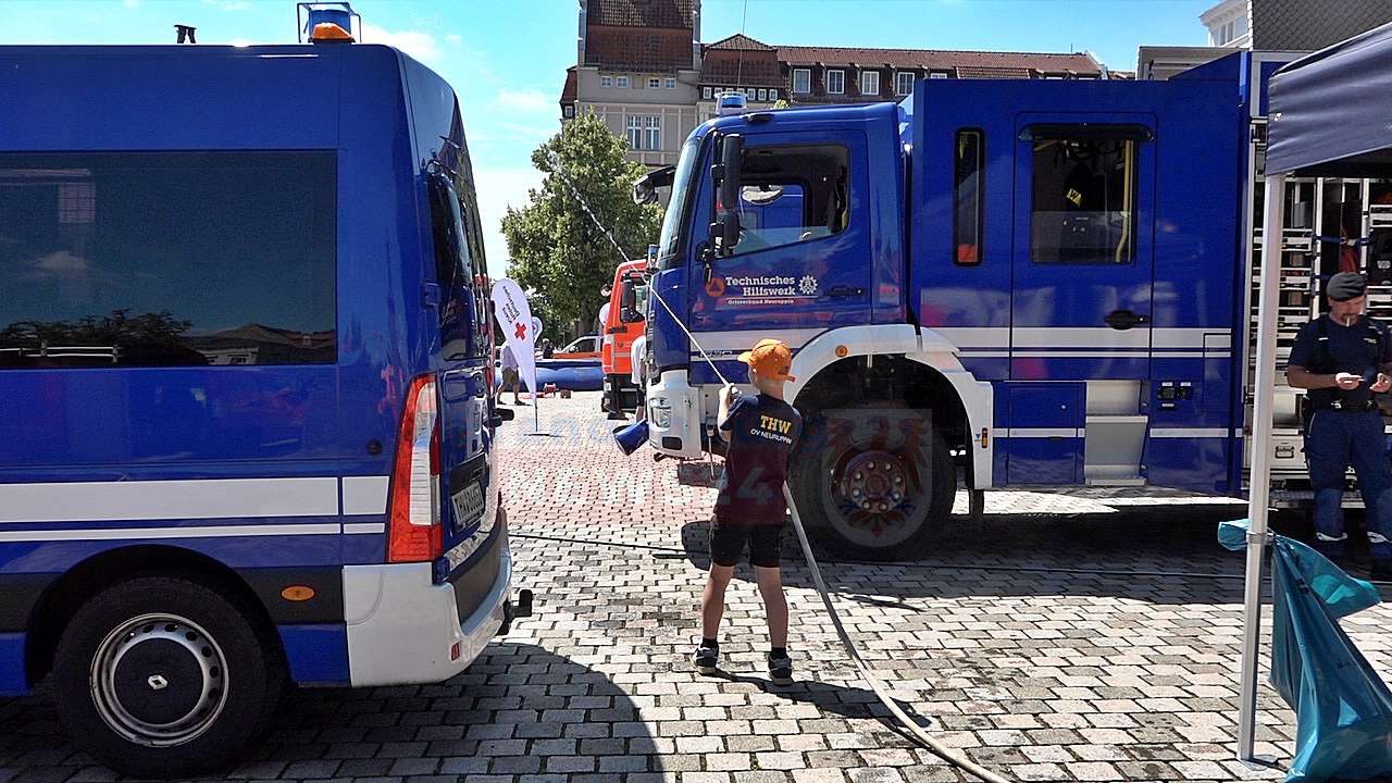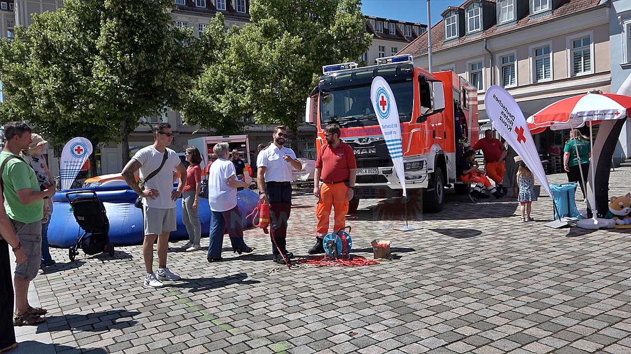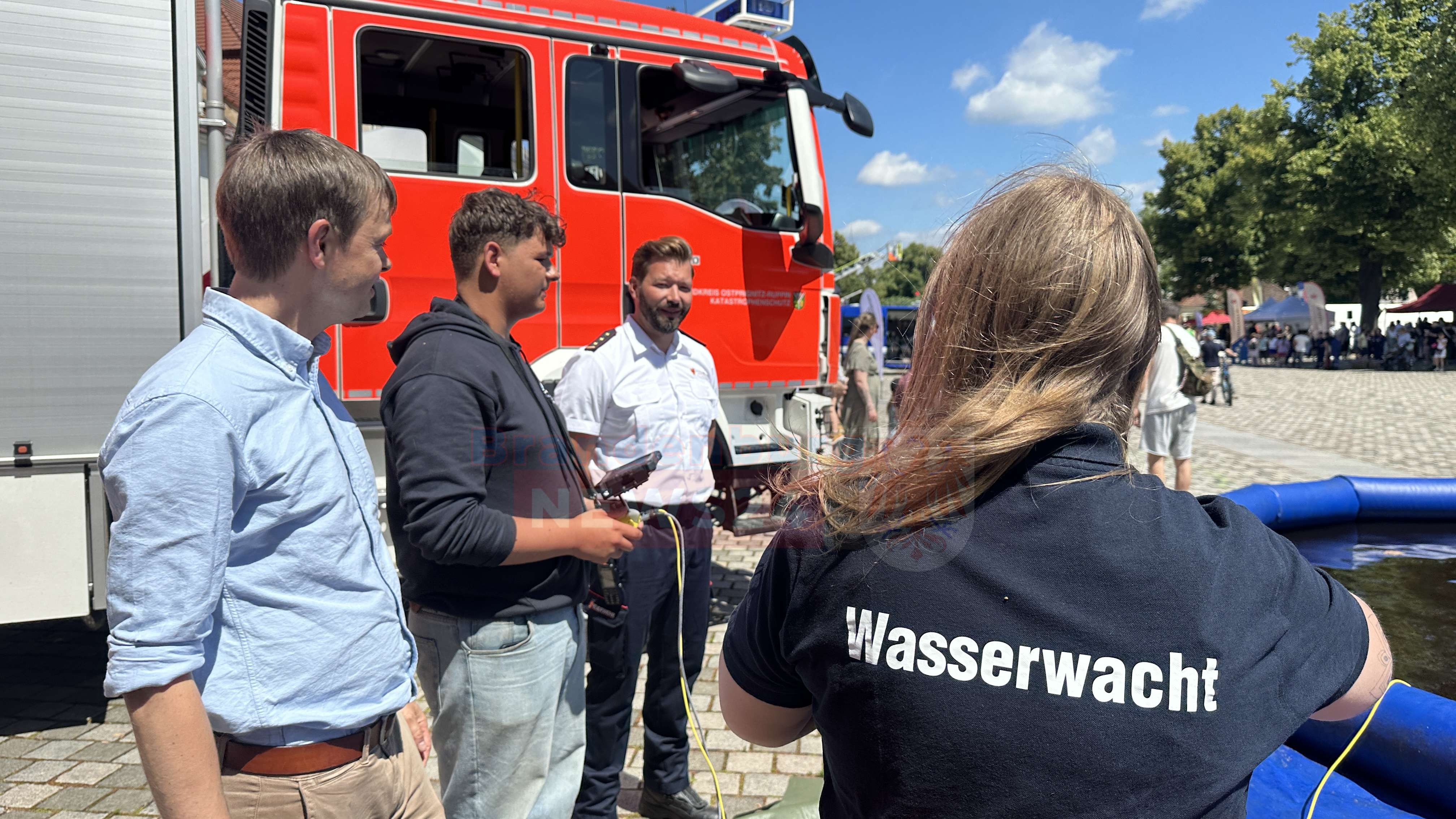 Die Rettungshundestaffel begeisterte die Zuschauer mit spannenden Vorführungen ihrer vierbeinigen Helden. Technikfans kamen bei der Unterwasserdrohne der Wasserwacht auf ihre Kosten, deren Funktionen in einem großen Wasserbecken präsentiert wurden. Auch die Jugendfeuerwehr der Hauptwache zeigte ihr Können bei einem Löschangriff, der bei den sommerlichen Temperaturen für eine willkommene Abkühlung sorgte.