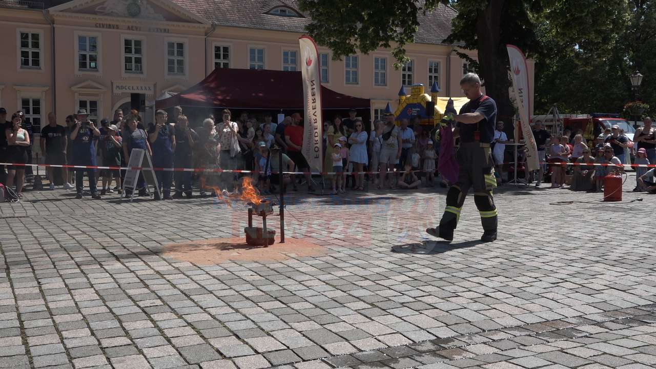 Der Tag bot ein vielfältiges Programm für Jung und Alt. Besonders beeindruckend war eine Feuerwehrvorführung, die die Gefahren des Löschens eines Fettbrands mit Wasser drastisch demonstrierte: Eine meterhohe Stichflamme schoss in die Höhe, als Wasser in einen brennenden Topf mit Öl gegossen wurde. Zuvor hatten die Einsatzkräfte jedoch gezeigt, wie man einen solchen Brand richtig und sicher mit einem nassen Tuch erstickt und umgehend die Feuerwehr alarmiert.