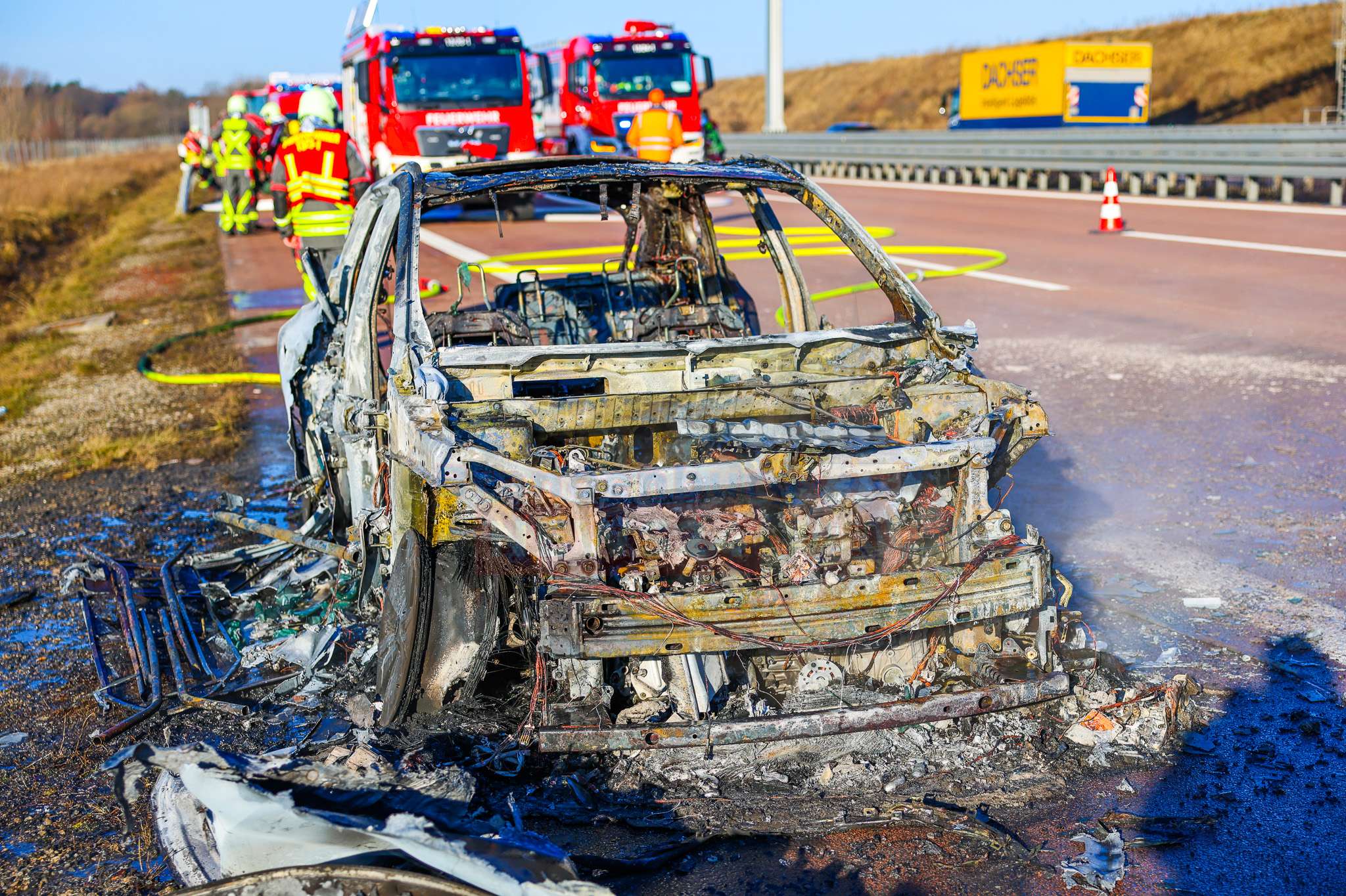Nach Abschluss der Löscharbeiten und der Kontrolle mit der Wärmebildkamera – insbesondere im Bereich der Hybridtechnik – wurden zwei Fahrspuren wieder für den Verkehr freigegeben. Lediglich der Standstreifen sowie die Lastspur blieben zunächst weiterhin gesperrt. Ausgelaufene Betriebsstoffe wurden gebunden und die Fahrbahn anschließend gereinigt.