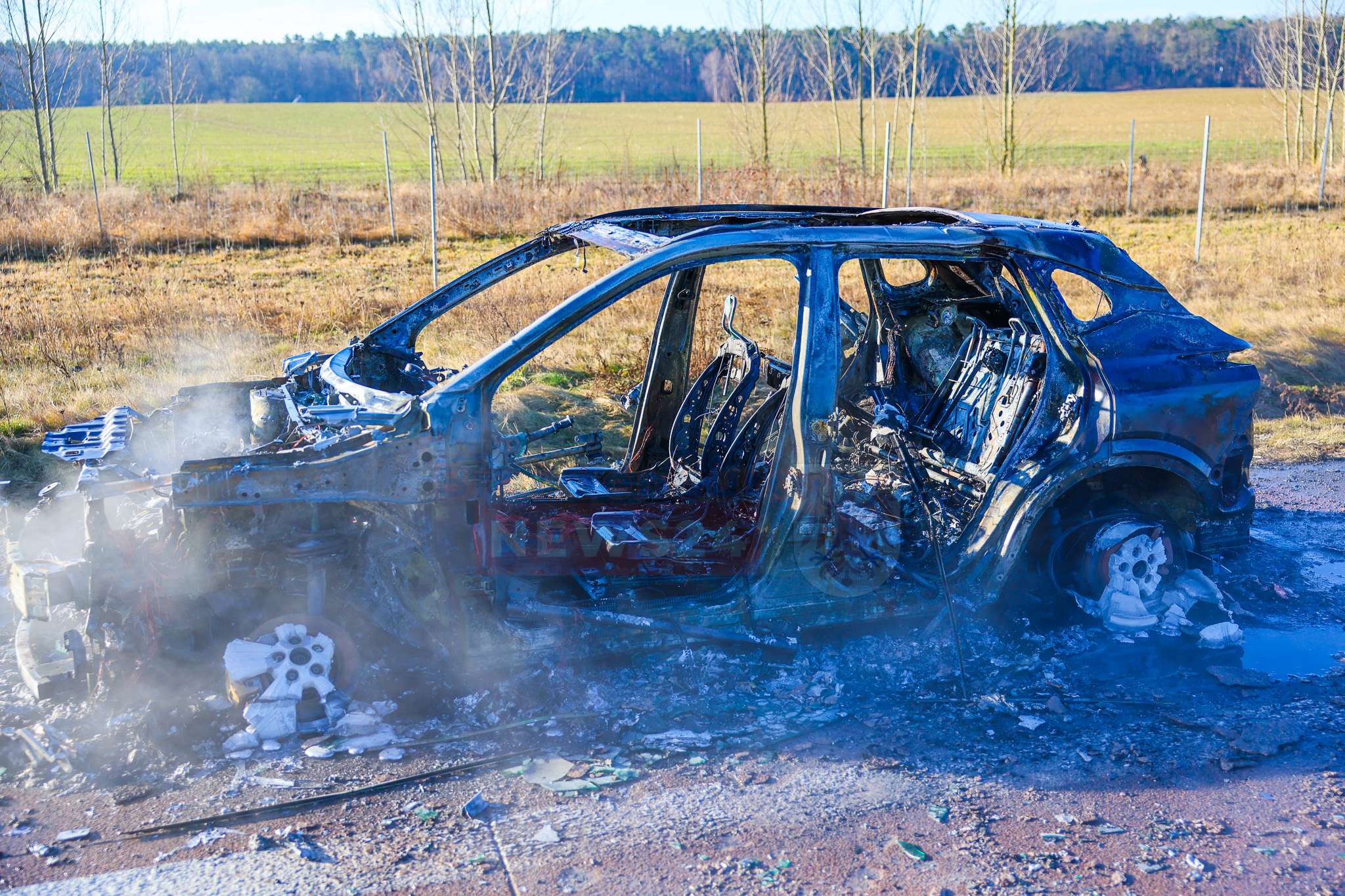 Bereits auf der Anfahrt der Einsatzkräfte war eine deutliche Rauchentwicklung sichtbar. Beim Eintreffen der ersten Kräfte stand das Fahrzeug – ein Hybrid-PKW – in Vollbrand. Der Fahrer konnte sein Auto rechtzeitig verlassen und blieb unverletzt.