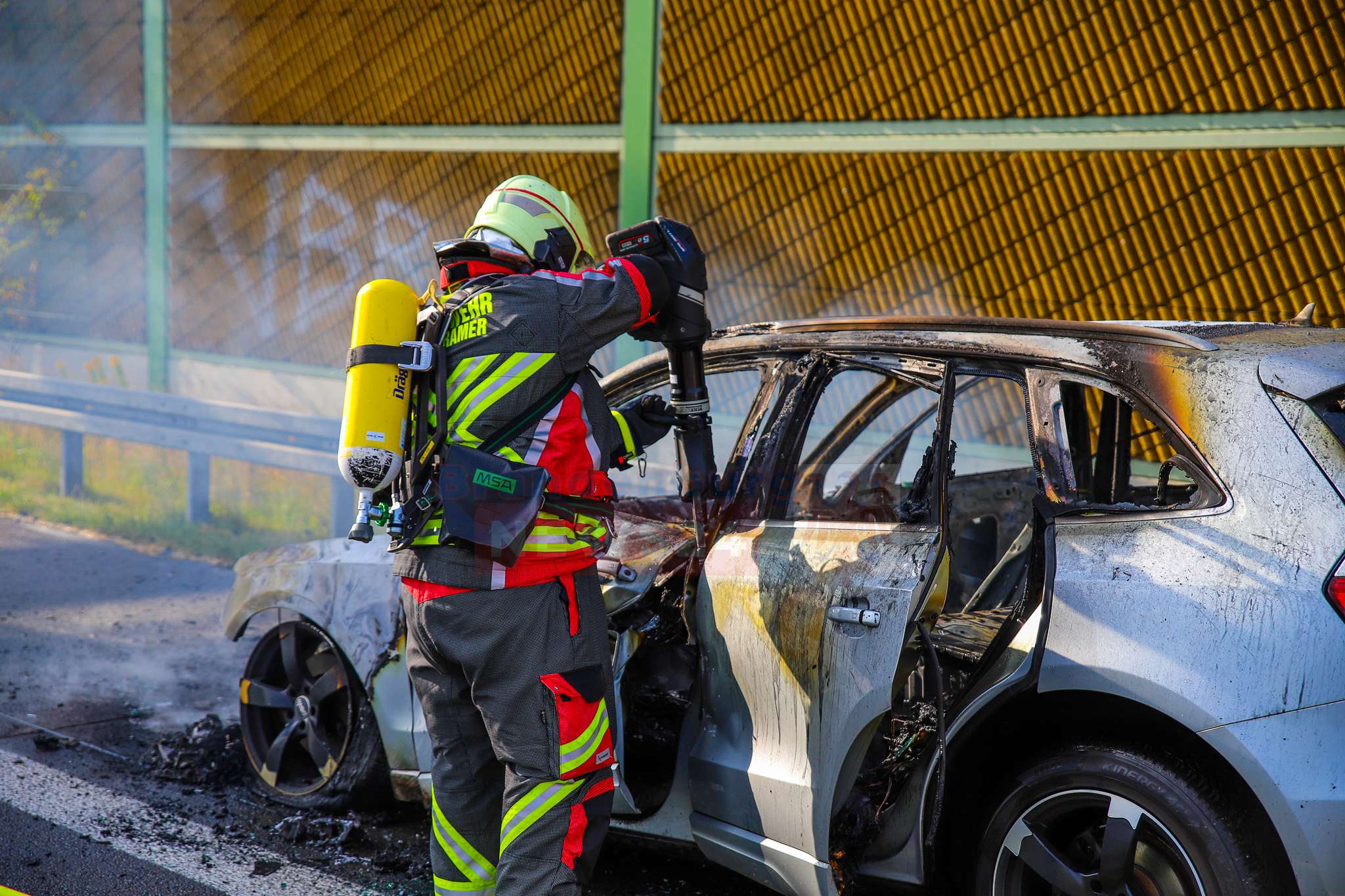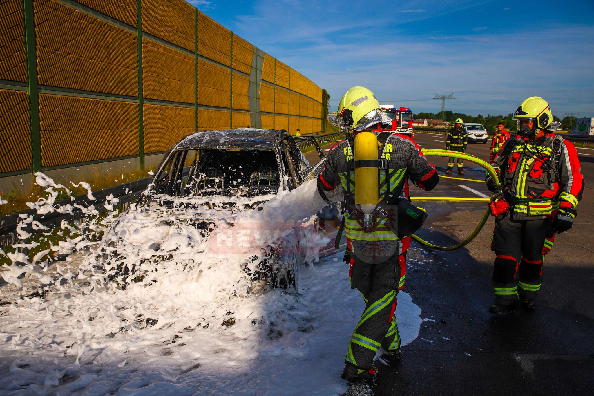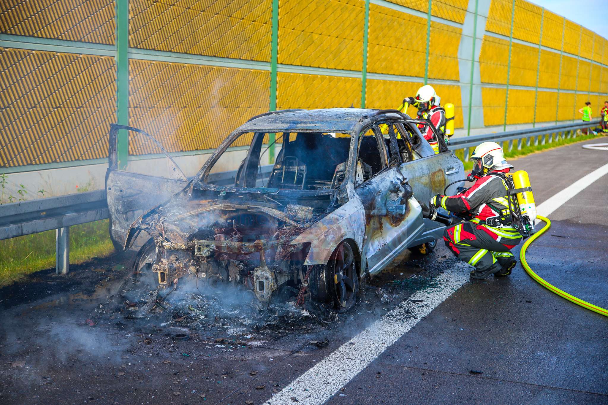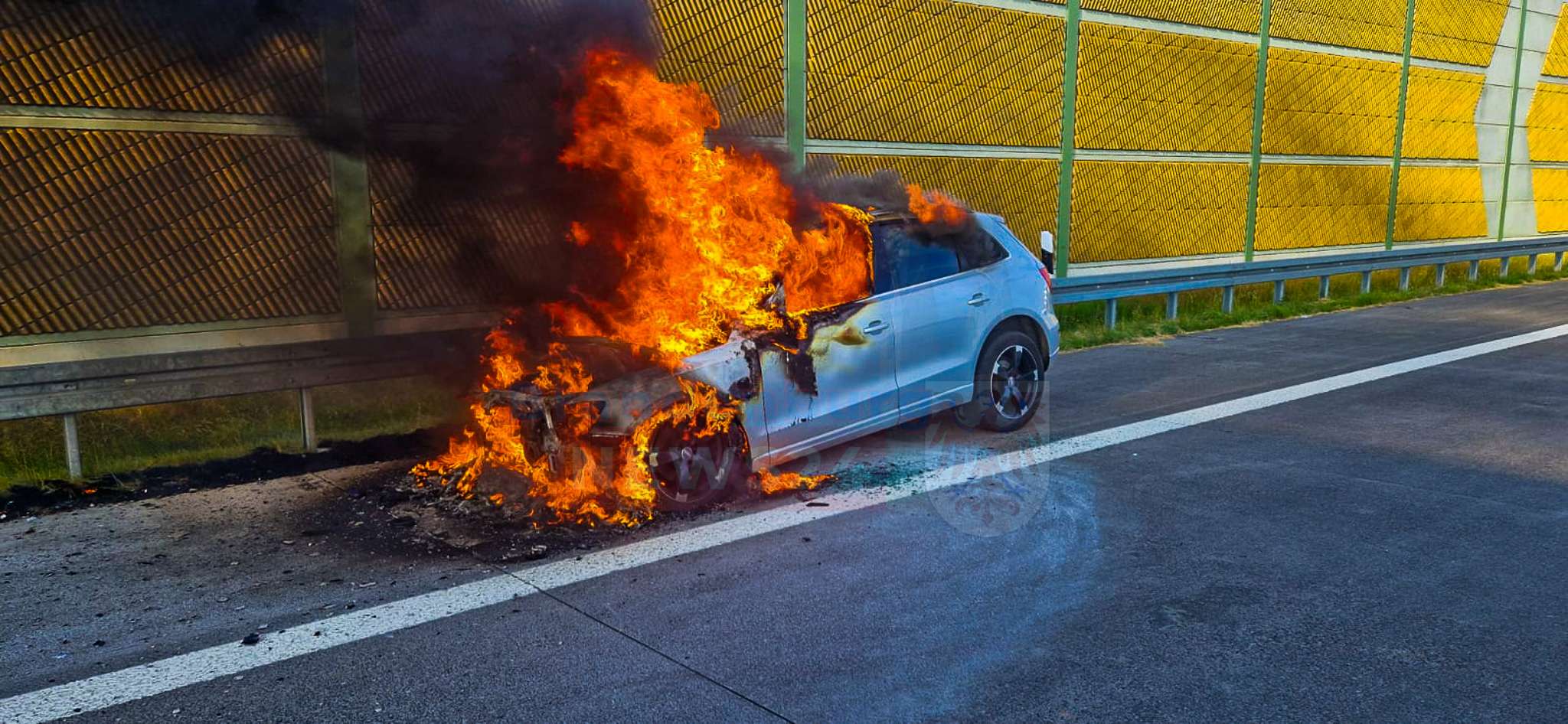 Bereits auf der Anfahrt war eine starke Rauchentwicklung sichtbar. Die Feuerwehren aus Bötzow und Vehlefanz rückten umgehend zur Einsatzstelle aus. Beim Eintreffen der ersten Kräfte stand der PKW auf dem Seitenstreifen in Vollbrand. Sofort ging ein Trupp unter schwerem Atemschutz zur Brandbekämpfung vor.