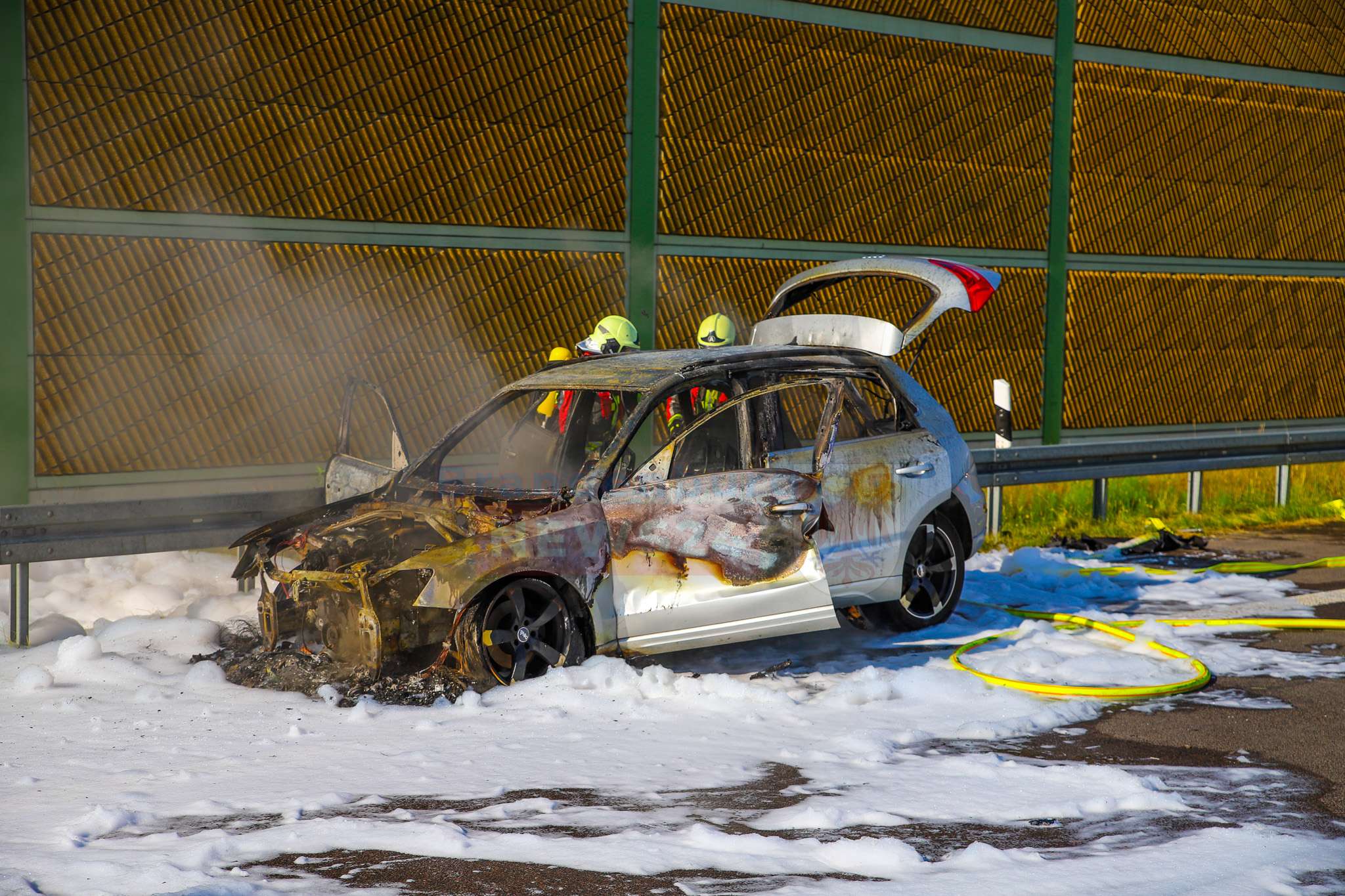 Die Löscharbeiten gestalteten sich schwierig, da aus dem Fahrzeugtank immer wieder Benzin austrat und sich erneut entzündete. Zunächst wurde das Feuer mit Wasser bekämpft, im weiteren Verlauf legten die Einsatzkräfte einen Schaumteppich über das Fahrzeug, um die Flammen endgültig zu ersticken.