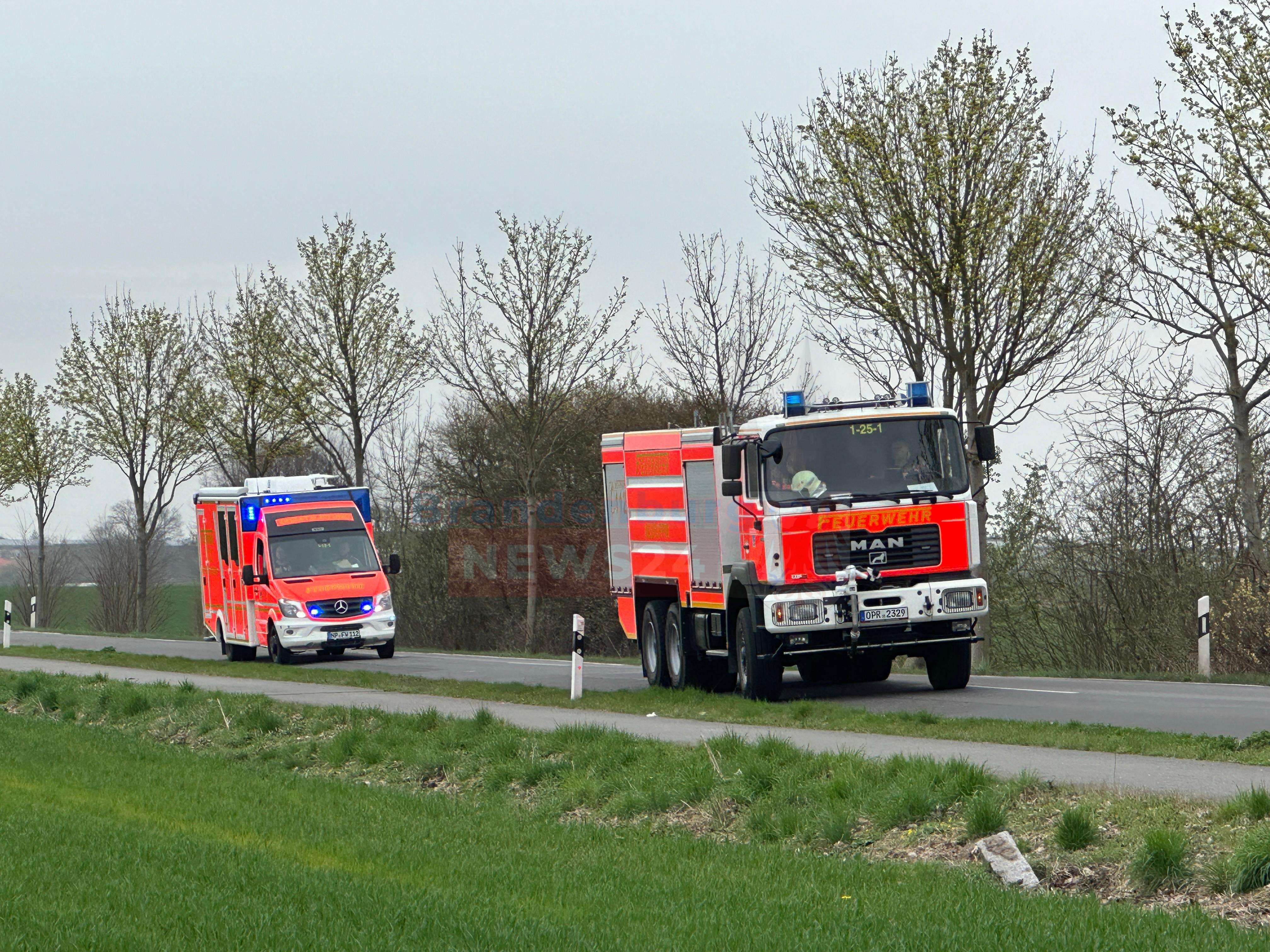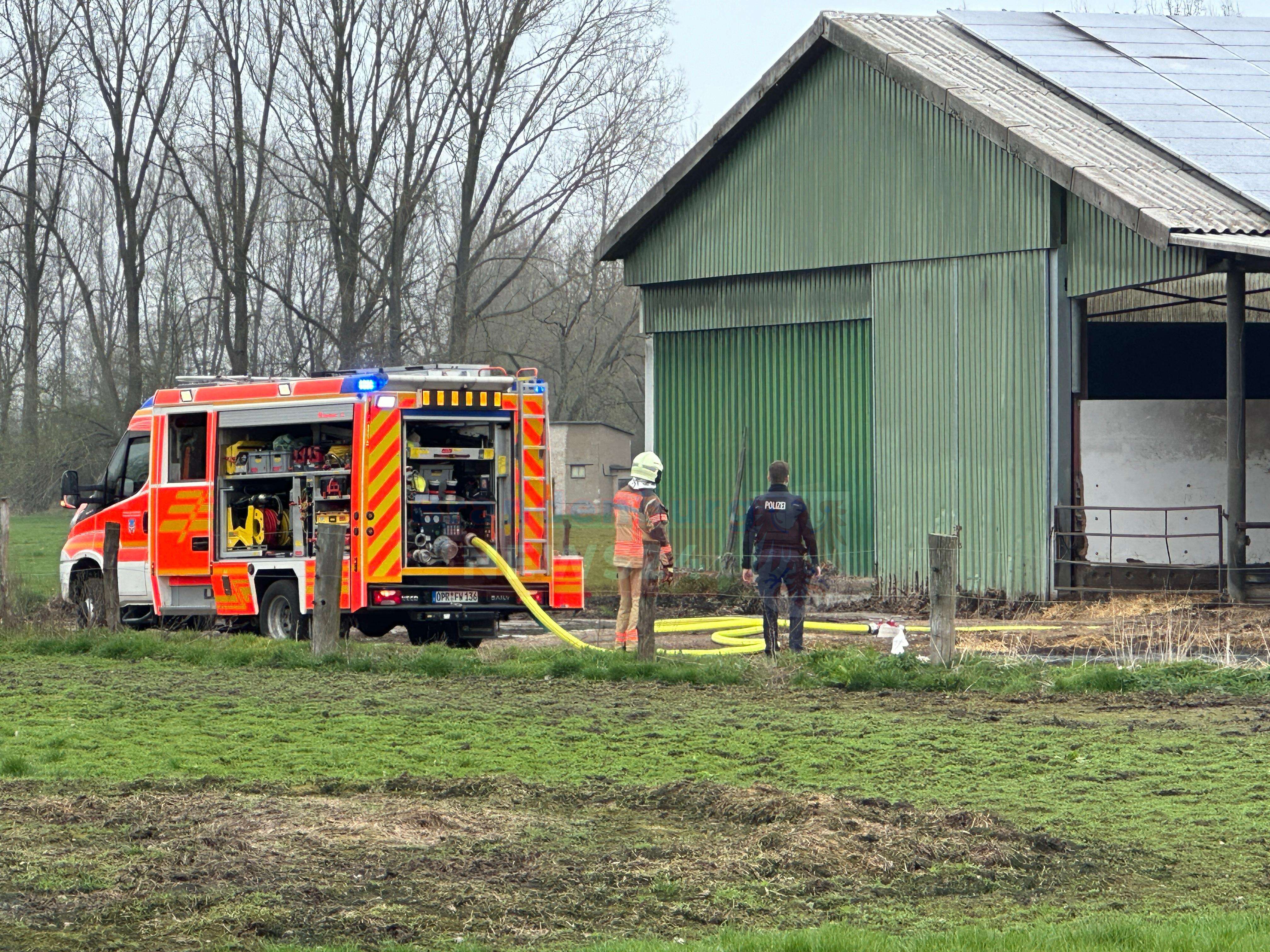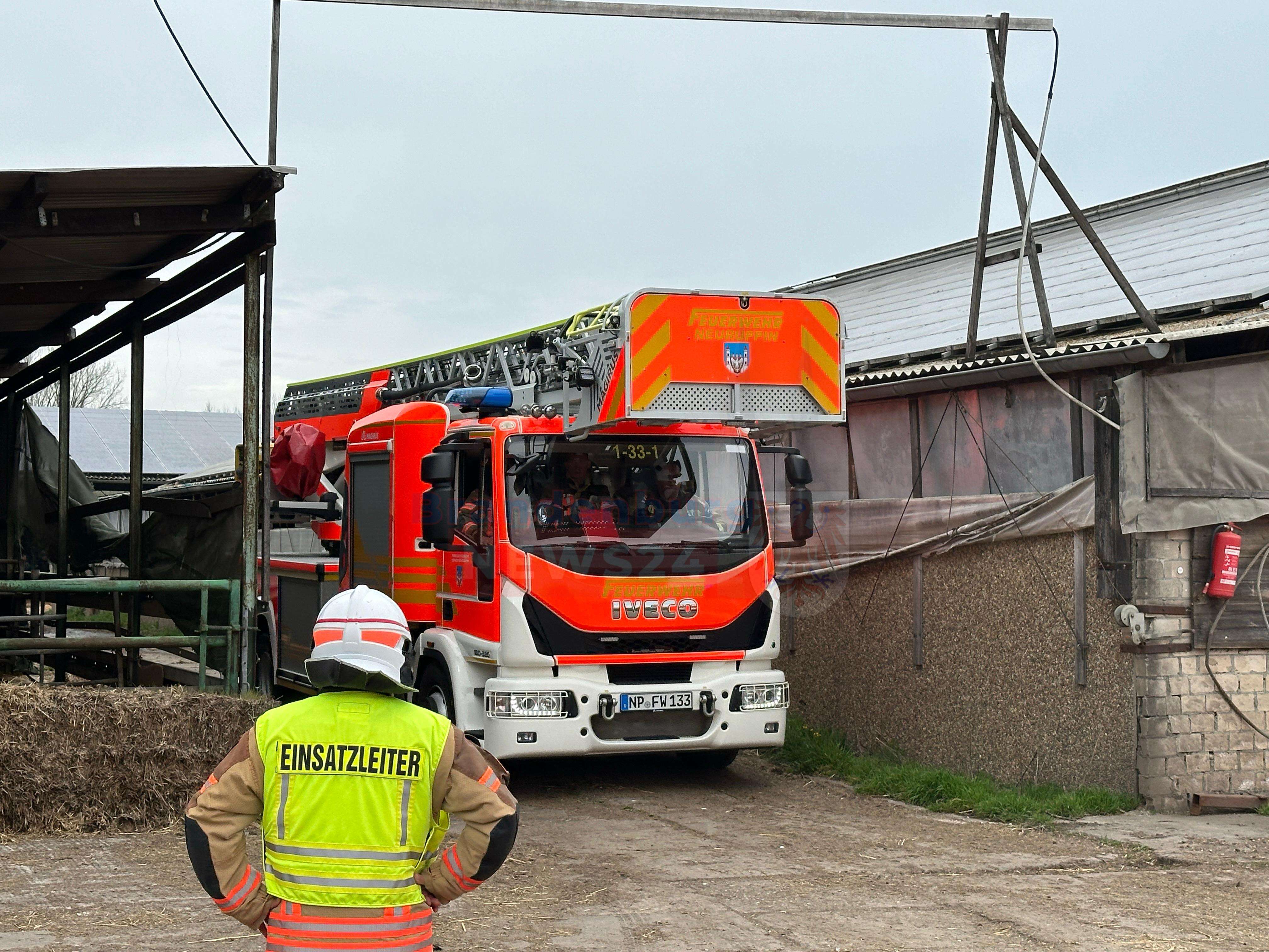 Neuruppin/Kränzlin (Ostprignitz-Ruppin). Am Ostermontag gegen 11:50 Uhr brach ein Brand an einer Photovoltaik-Anlage auf einem landwirtschaftlichen Betrieb zwischen Neuruppin und Kränzlin aus. Einsatzleiter Reinhard Jachnick berichtete, dass die Entzündung zwischen der Photovoltaikanlage und dem eigentlichen Dach stattfand.