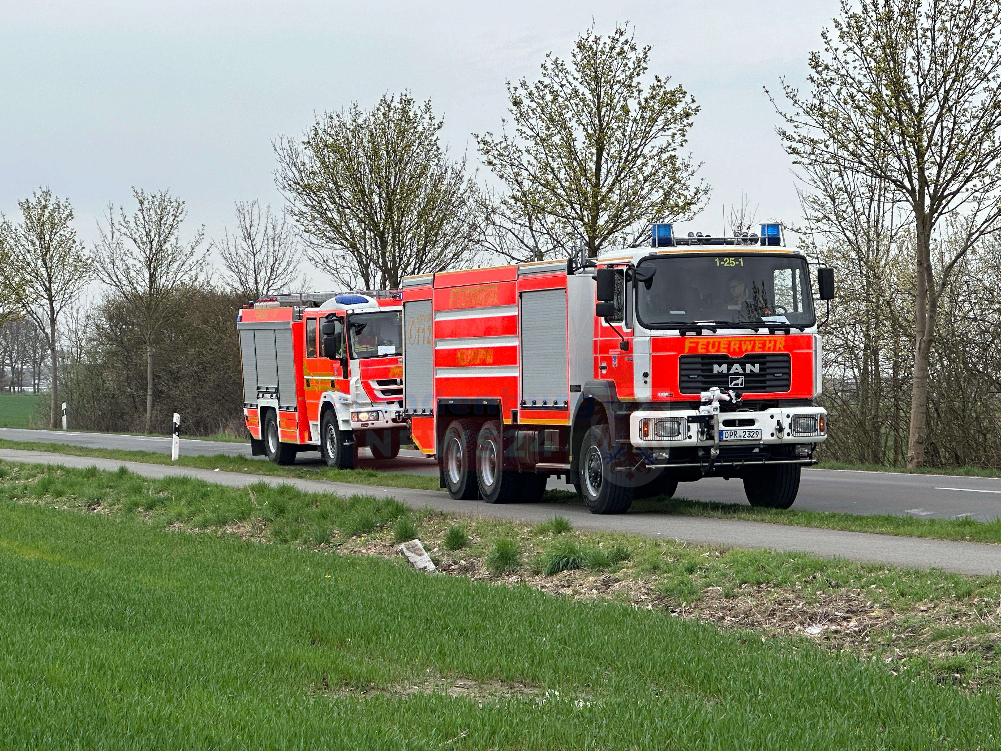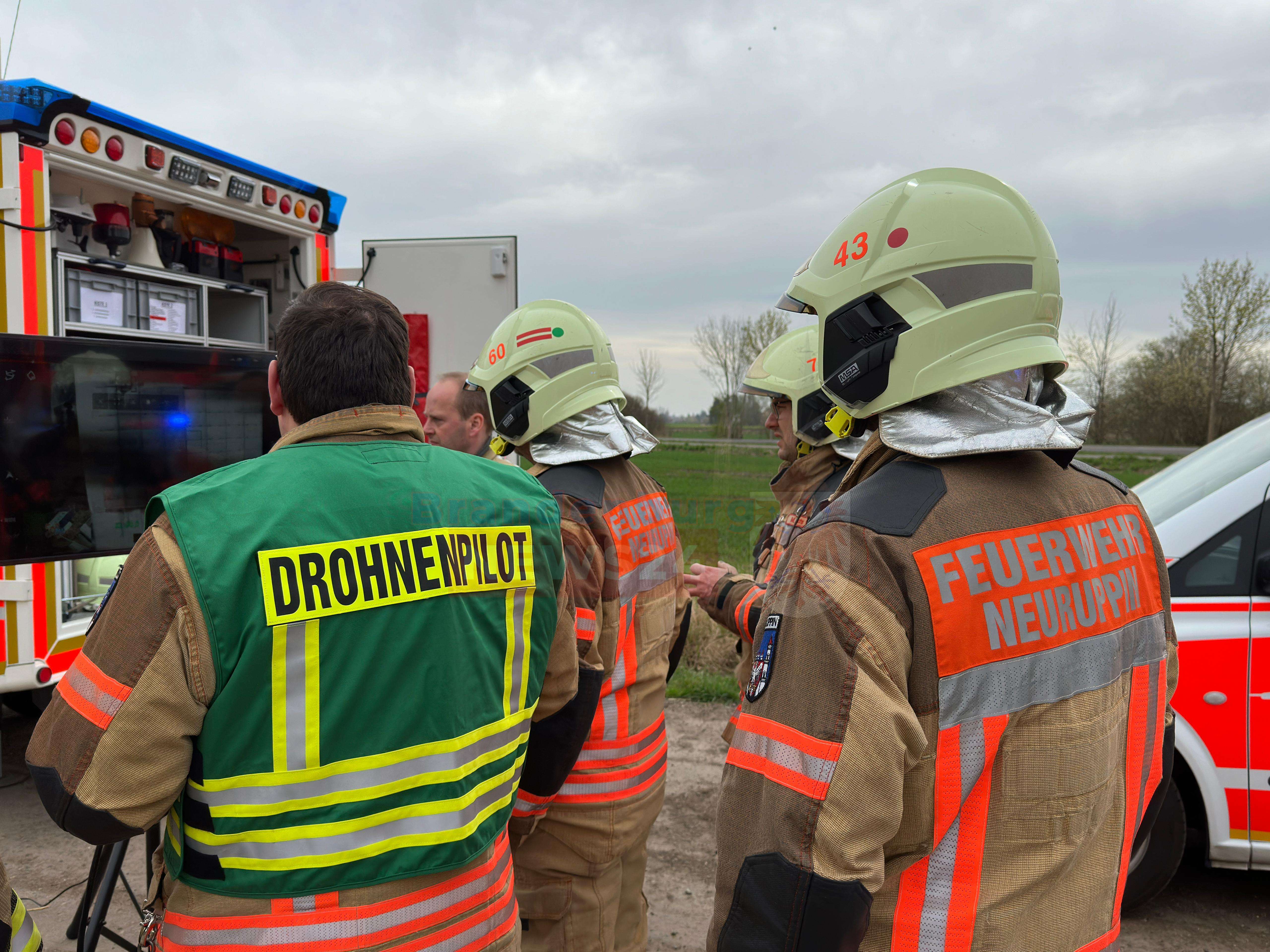 Um sicherzustellen, dass keine weiteren Brandherde oder Glutnester vorhanden waren, wurde ein Drohnenflug über der Brandstelle durchgeführt. Insgesamt waren 37 Einsatzkräfte und 11 Fahrzeuge der Feuerwehr Neuruppin vor Ort, um den Brand erfolgreich zu löschen und die Situation zu kontrollieren.