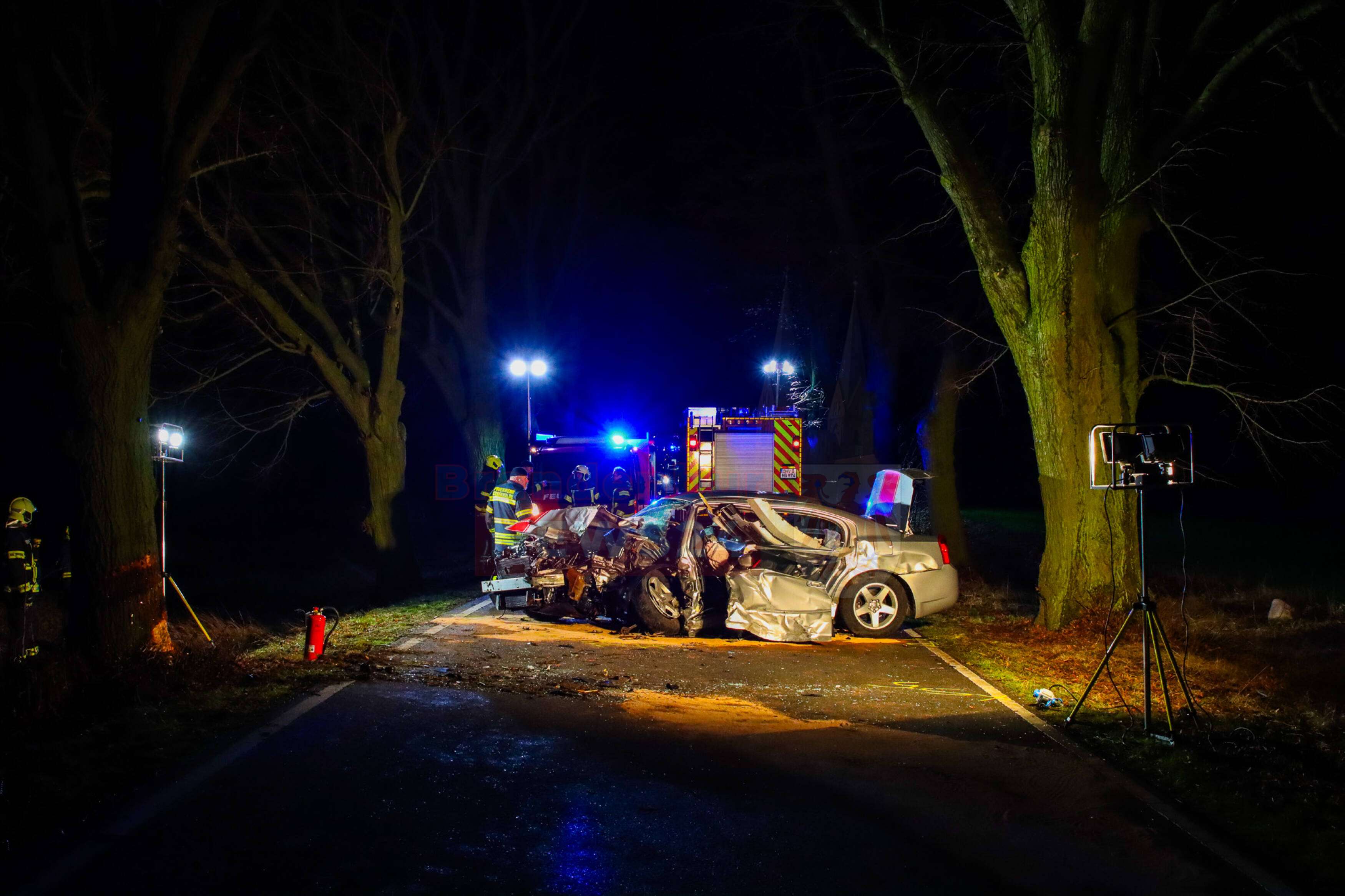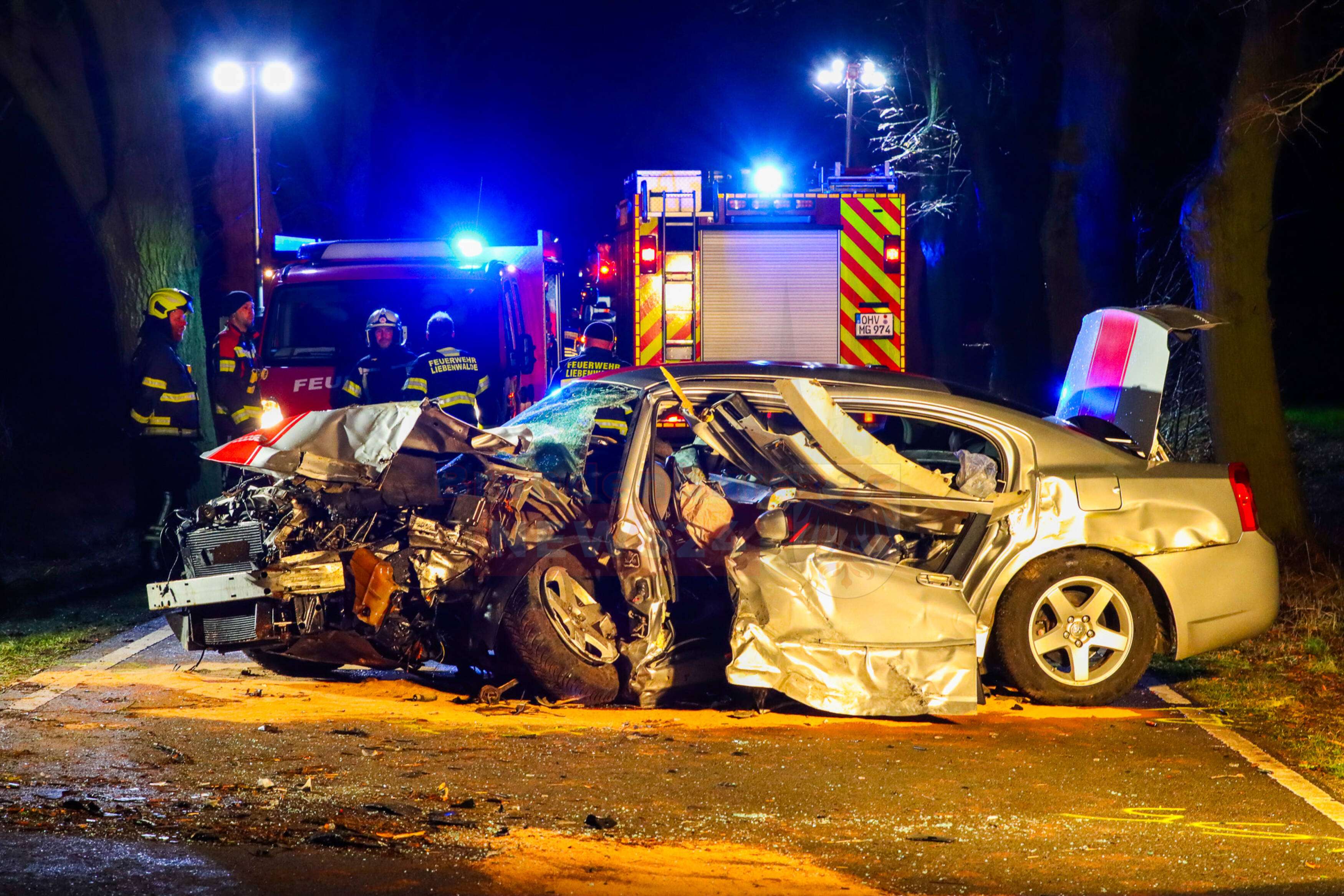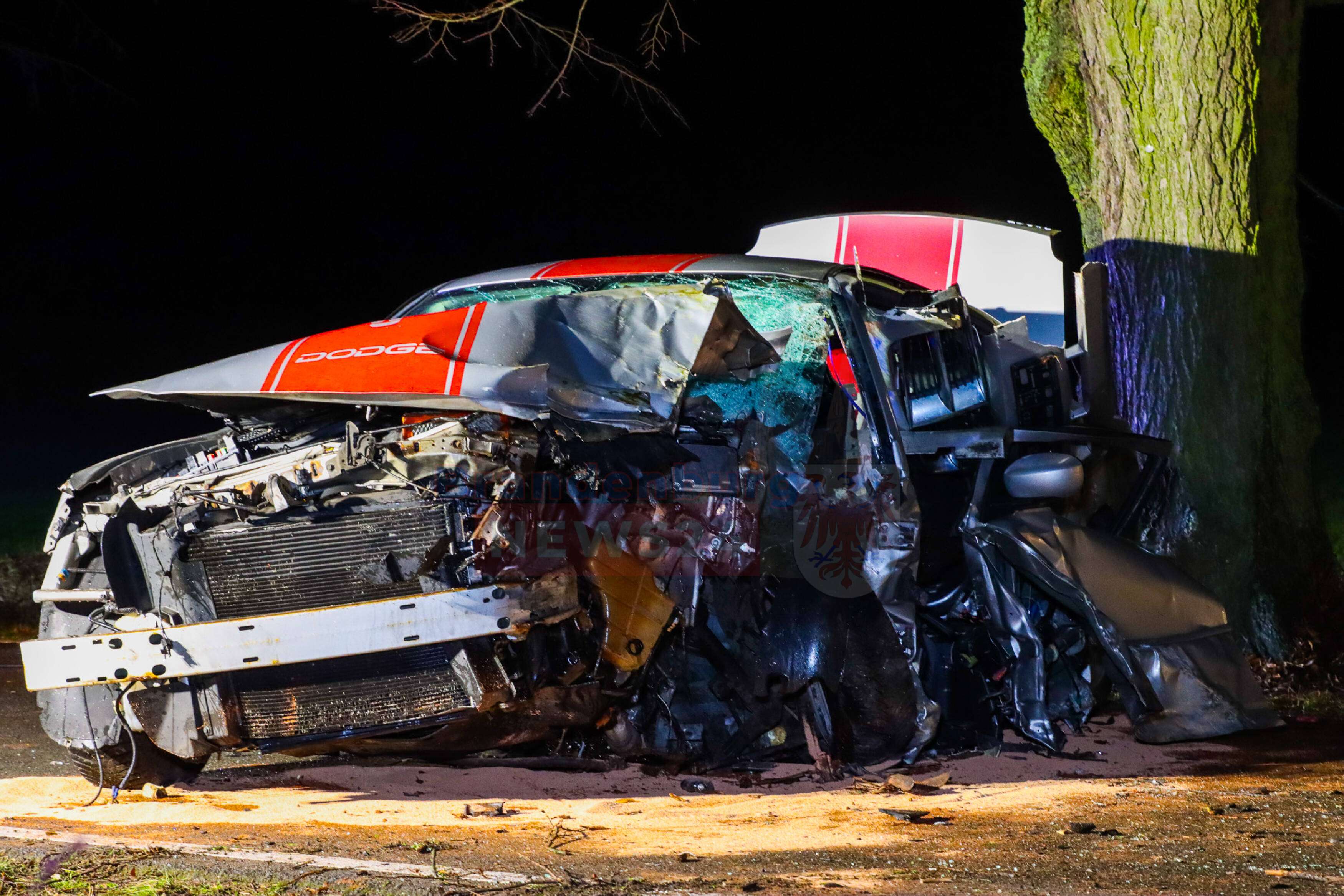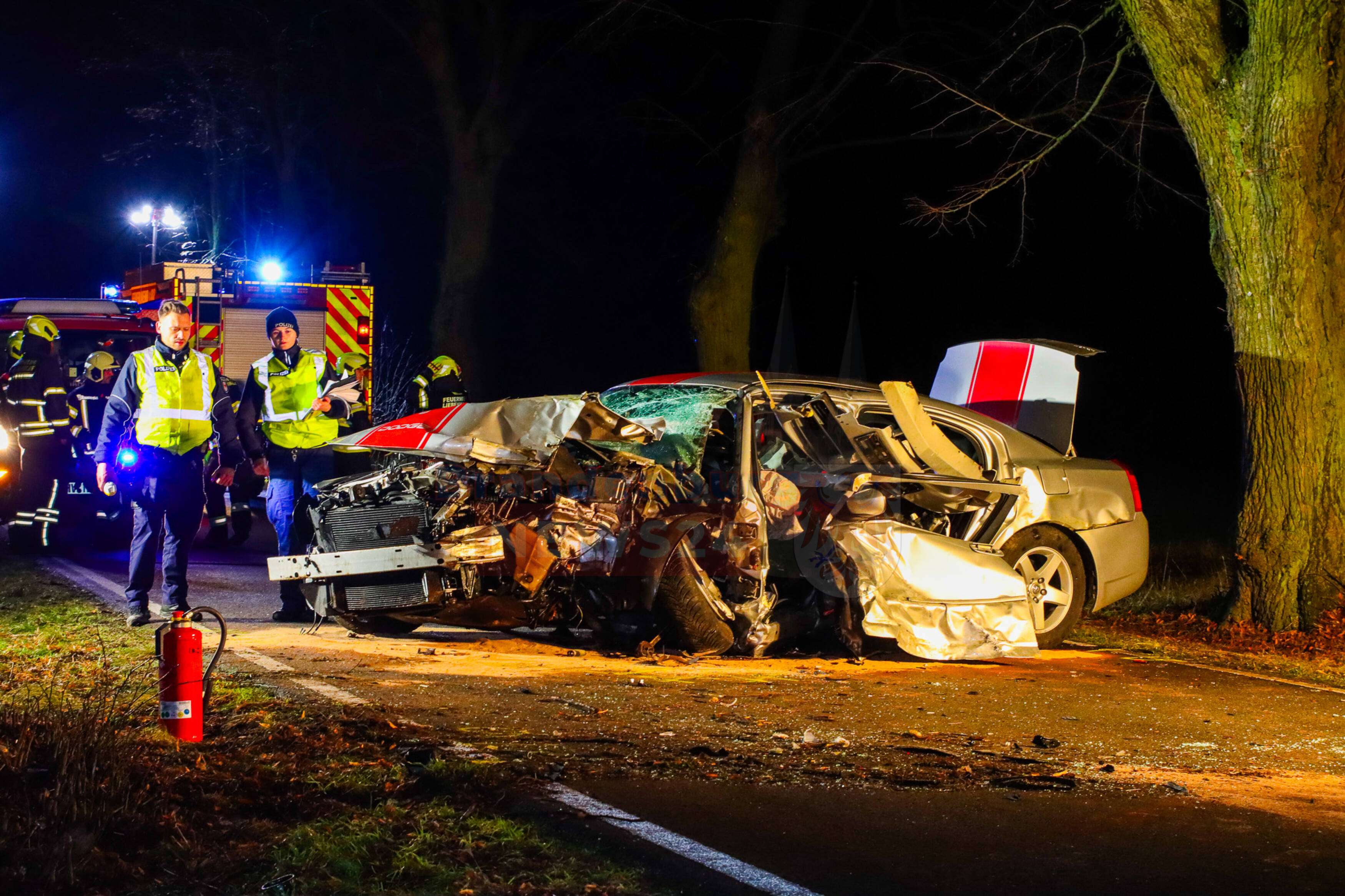 Liebenthal/Hammer, In der Nacht von Samstag auf Sonntag ereignete sich auf der Kreisstraße K6508 zwischen Liebenthal und Hammer ein schwerer Verkehrsunfall mit zwei beteiligten Fahrzeugen. Ein 27-jähriger Fahrer eines Dodge Challenger prallte aus bislang ungeklärter Ursache frontal gegen einen Baum. Ein weiterer PKW, ein VW, fuhr anschließend auf den Dodge auf.