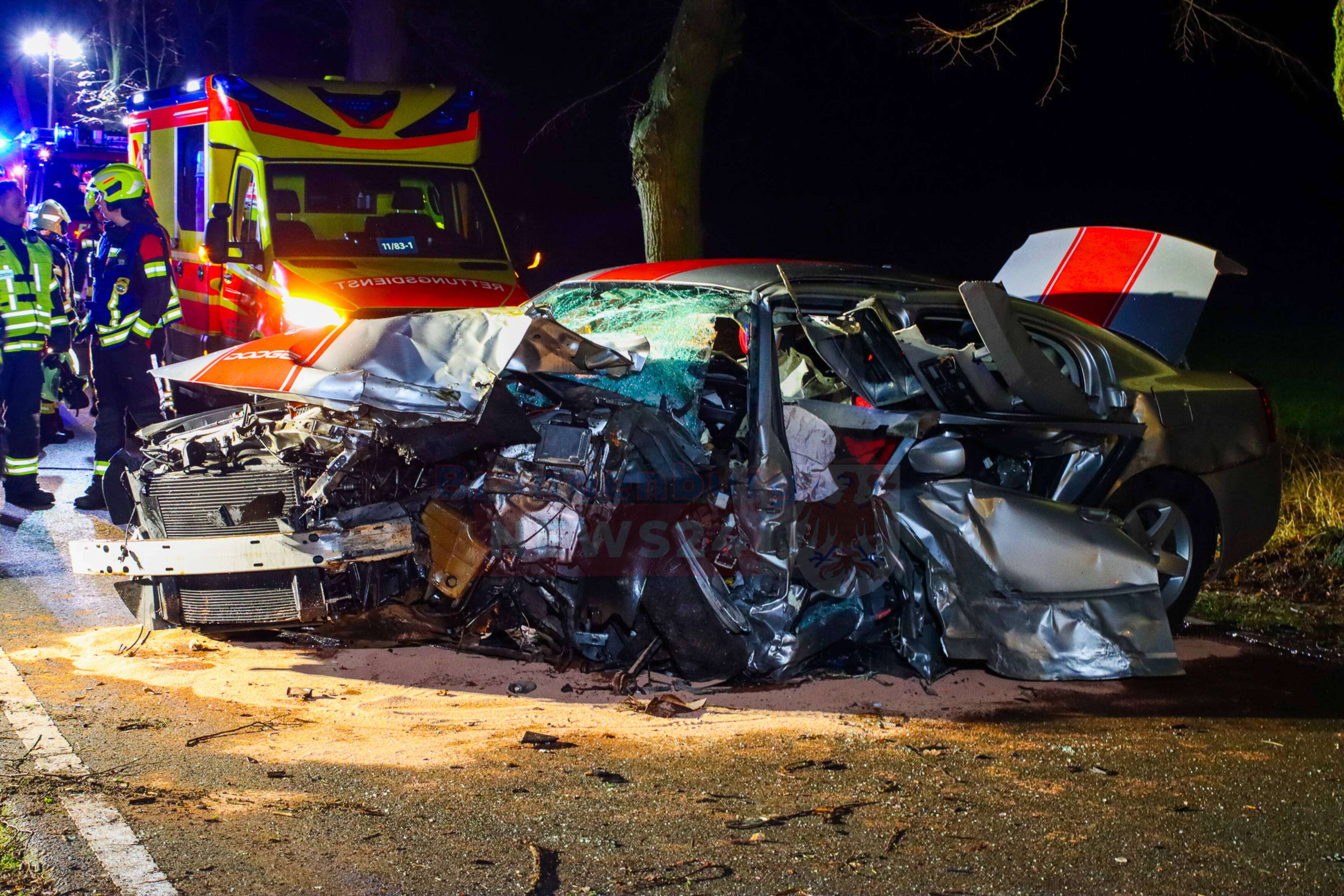 Der 27-jährige Fahrer des Dodge wurde in seinem Fahrzeug schwer eingeklemmt und musste durch die Feuerwehr mit hydraulischem Gerät befreit werden. Er erlitt schwerste Verletzungen und wurde mit dem Rettungshubschrauber Christoph Berlin in ein Krankenhaus geflogen. Der 24-jährige Fahrer des VW wurde mit leichten Verletzungen in ein Krankenhaus gebracht.