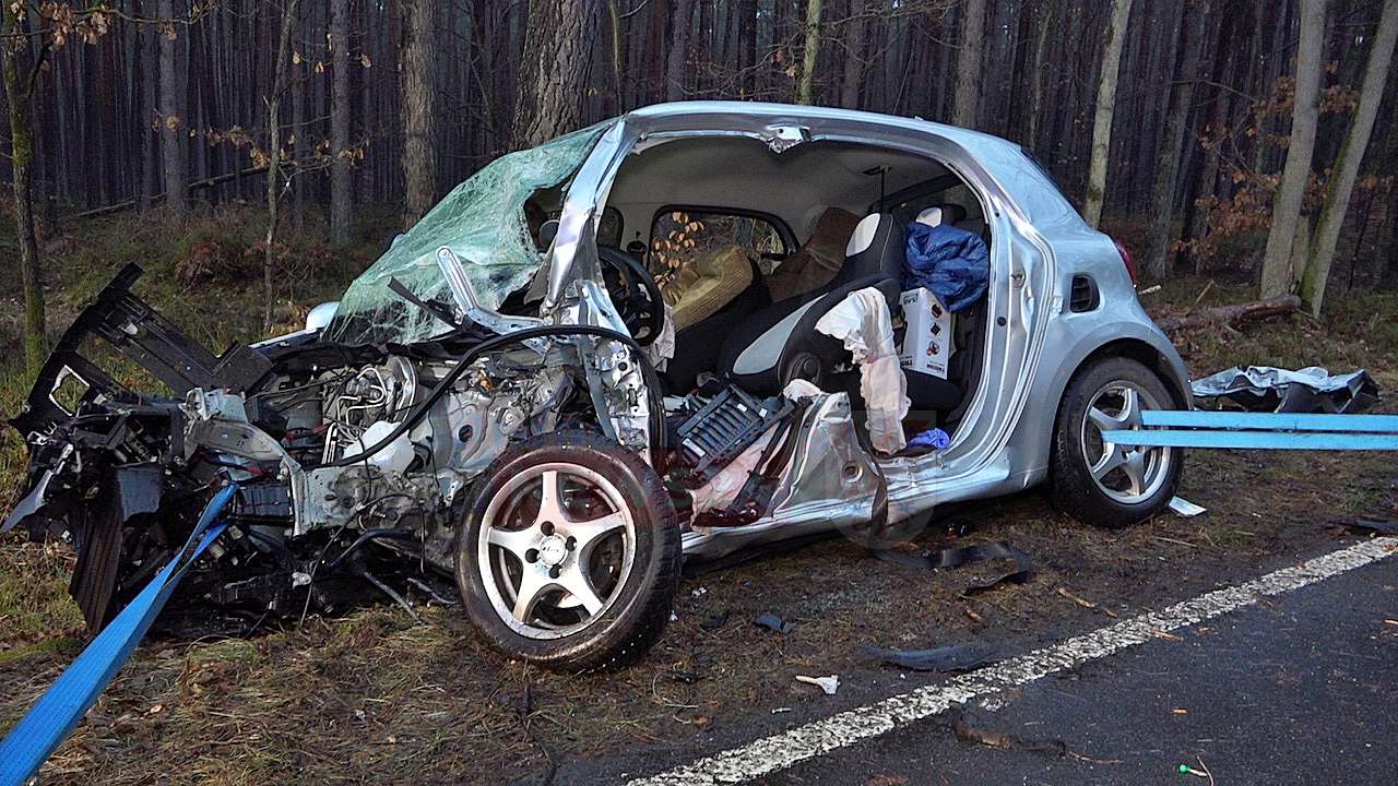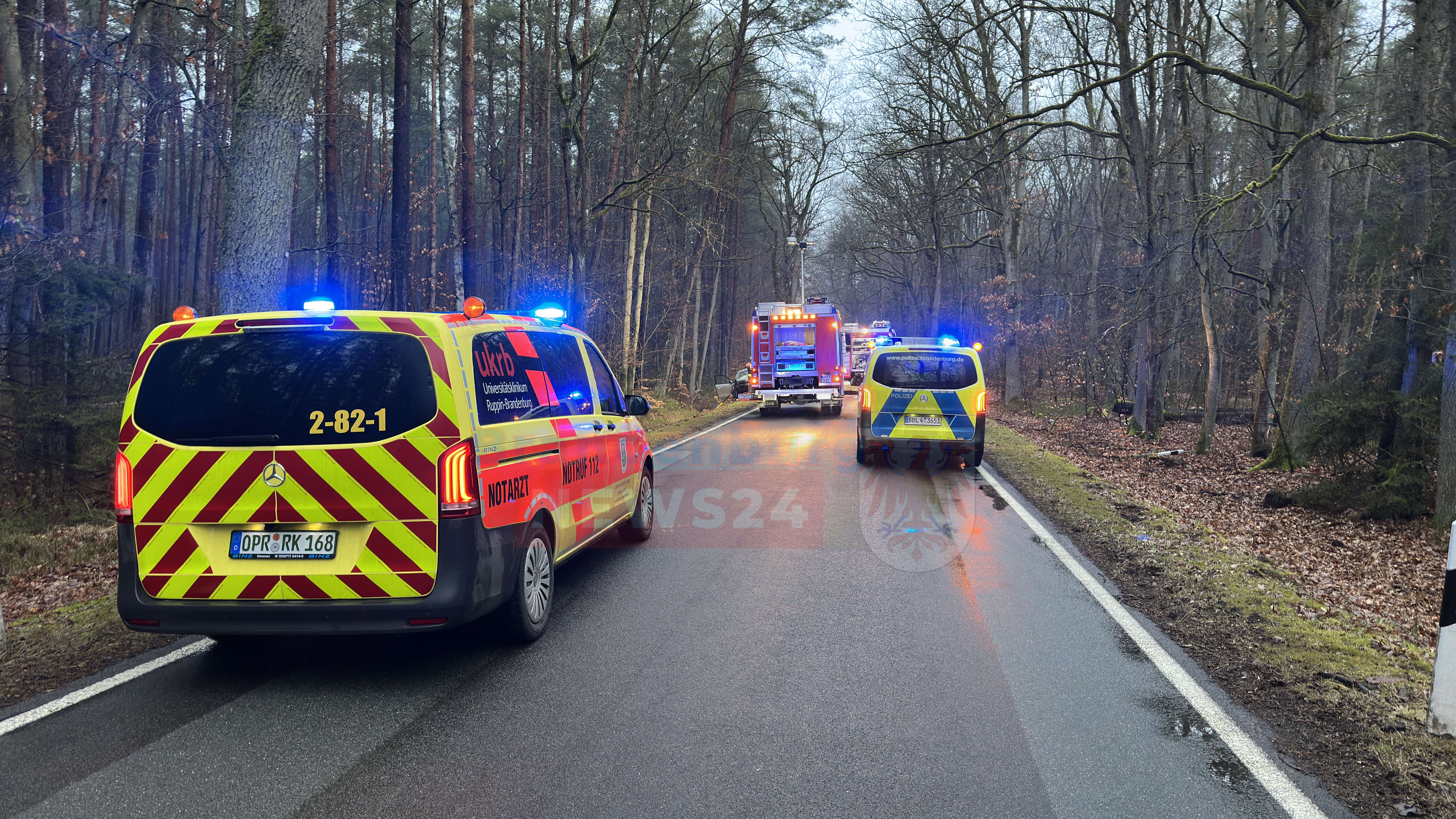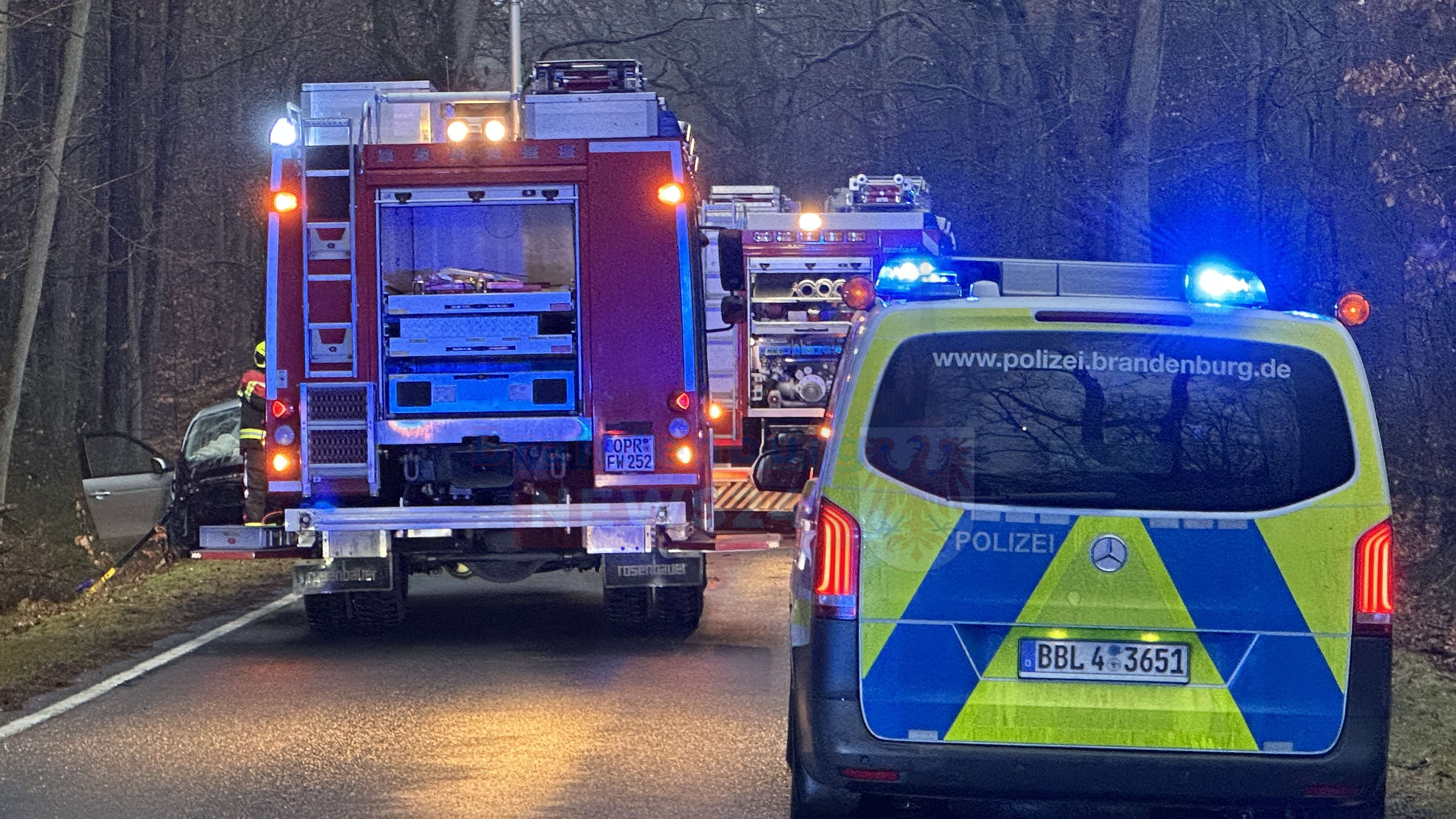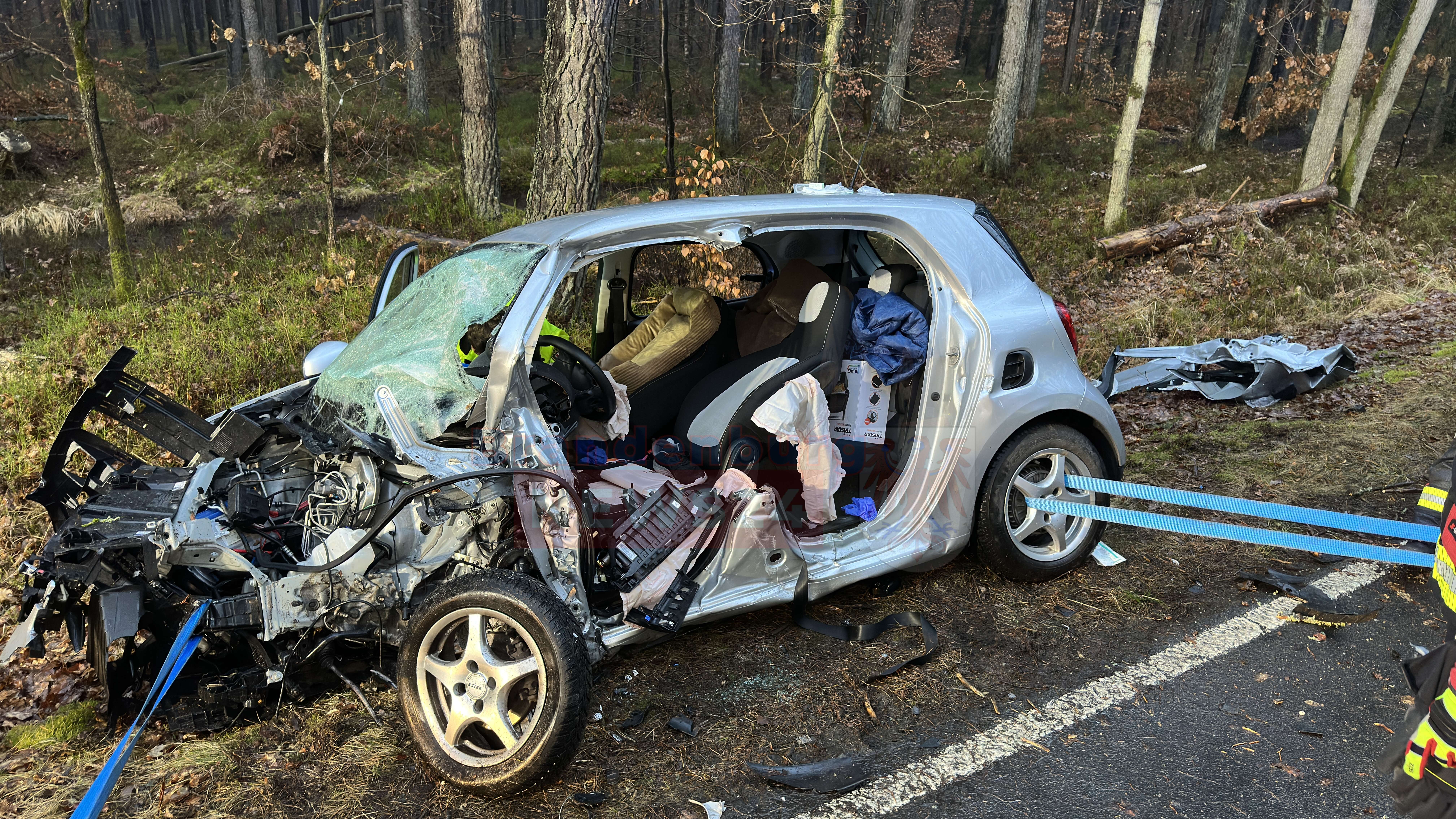 Der 43-jährige Mann war mit seinem Smart aus bislang ungeklärter Ursache links von der Fahrbahn abgekommen und frontal gegen einen Baum geprallt. Die Feuerwehr Wittstock wurde zu dem Unfallort alarmiert, da gemeldet wurde, dass Personen im Fahrzeug eingeklemmt seien. Vor Ort stellte sich jedoch heraus, dass der Fahrer eingeschlossen und schwer verletzt war.