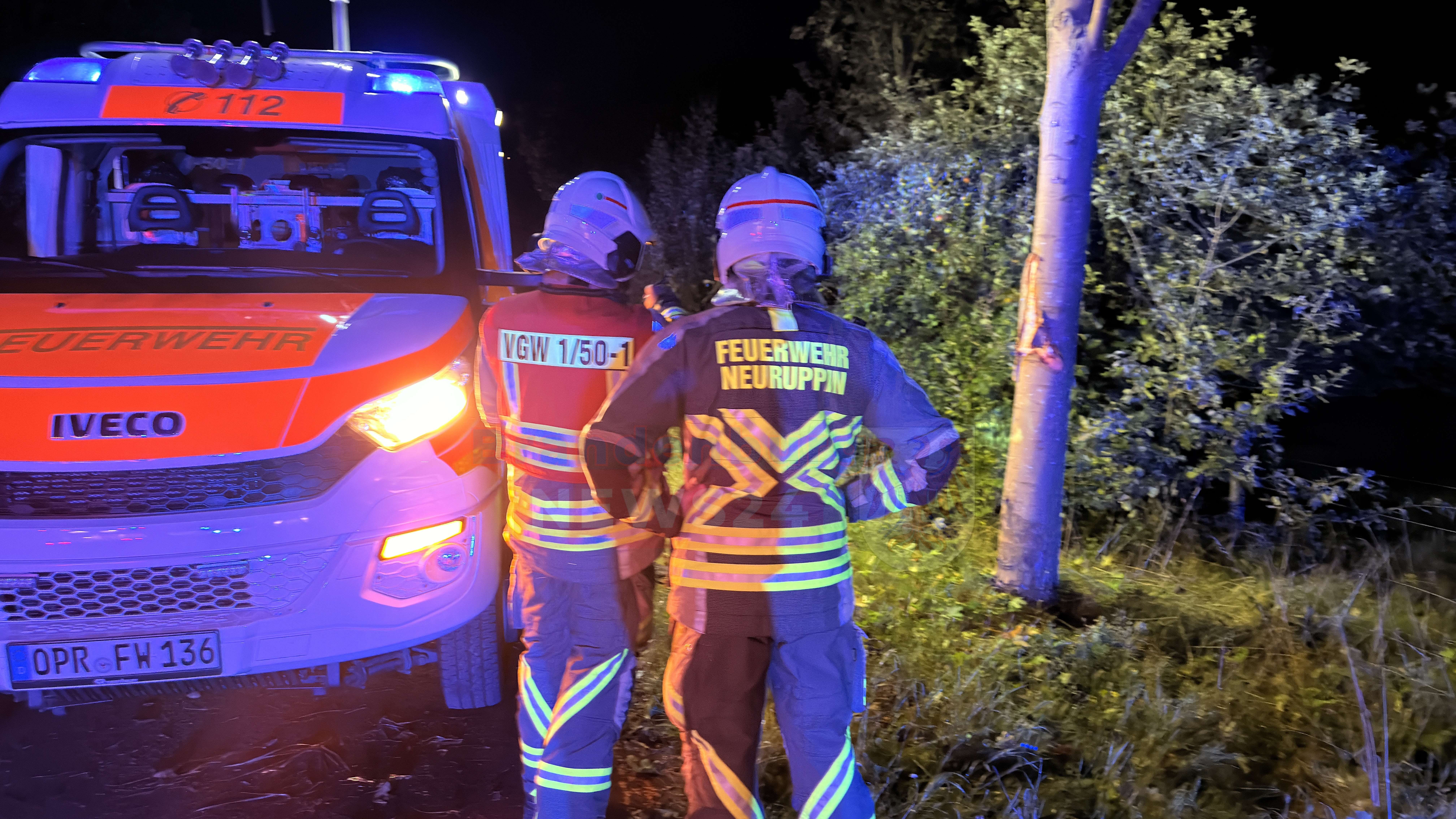 Neuruppin – In der Nacht von Samstag zum Sonntag hat sich auf der Strecke zwischen Neuruppin und Kränzlin ein schwerer Verkehrsunfall ereignet. Ein mit drei Personen besetzter Kleinwagen der Marke Hyundai kam von der Fahrbahn ab und kollidierte mit zwei Bäumen.