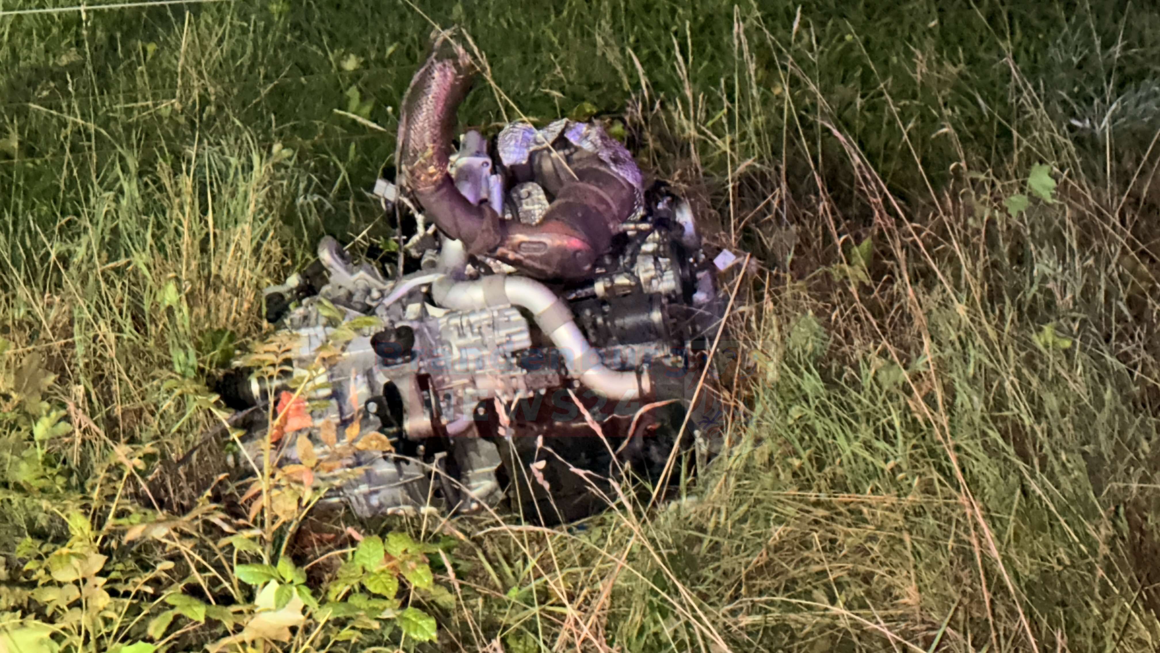 Durch die Wucht des Aufpralls wurde das Fahrzeug durch den Straßengraben katapultiert und krachte in einer Höhe von etwa 1,60 Metern gegen einen zweiten Baum. Die Kräfte waren so enorm, dass der gesamte Motorblock aus dem Fahrzeug gerissen und etwa drei Meter neben dem Baum liegen blieb. Anschließend wurde das Auto zurück auf den gegenüberliegenden Grünstreifen geschleudert, wo es schließlich auf dem Dach zum Liegen kam.