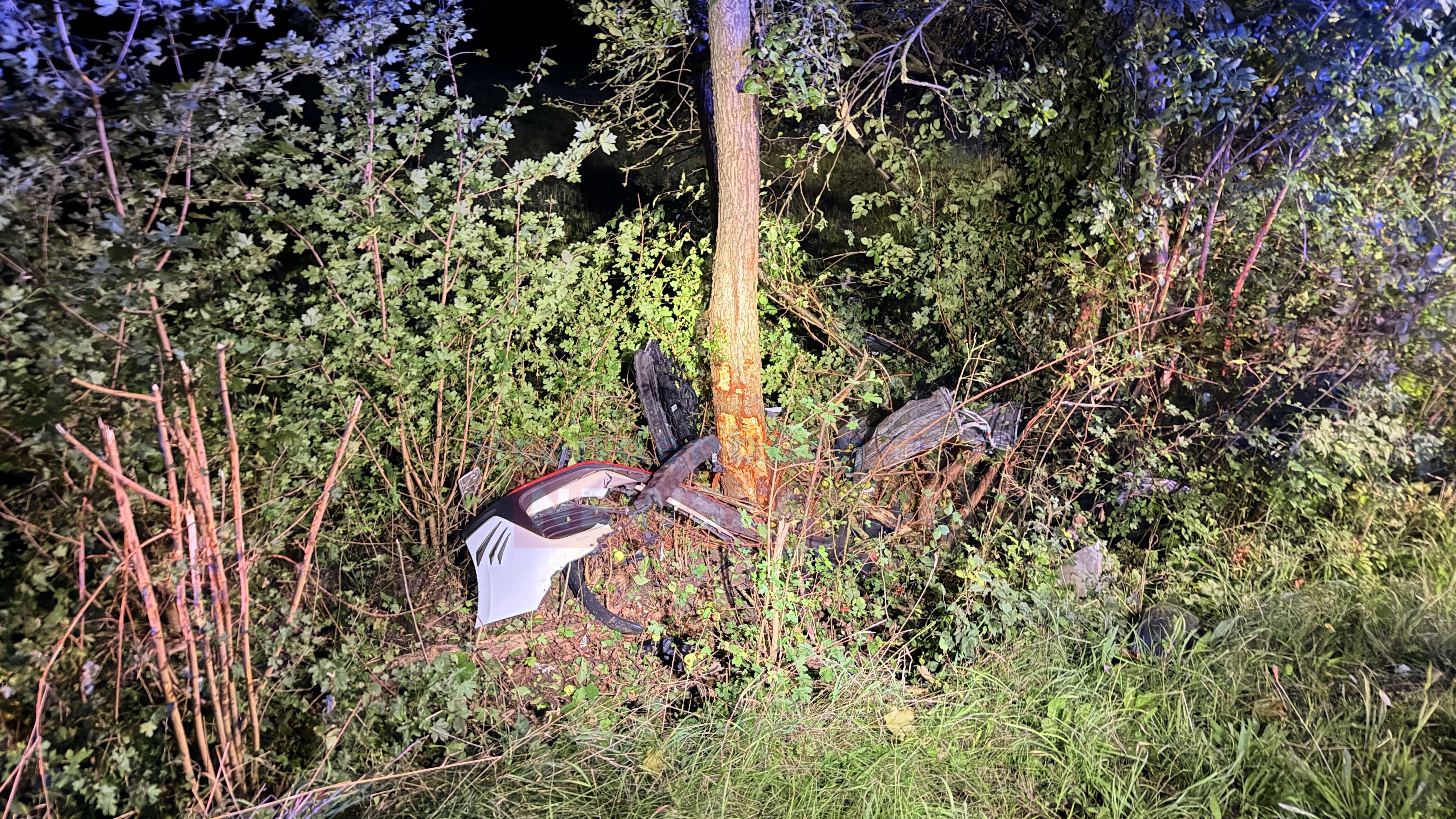 Der Pkw kam nach links von der Straße ab und prallte zunächst gegen den ersten Baum, der sich in einem Straßengraben befand.