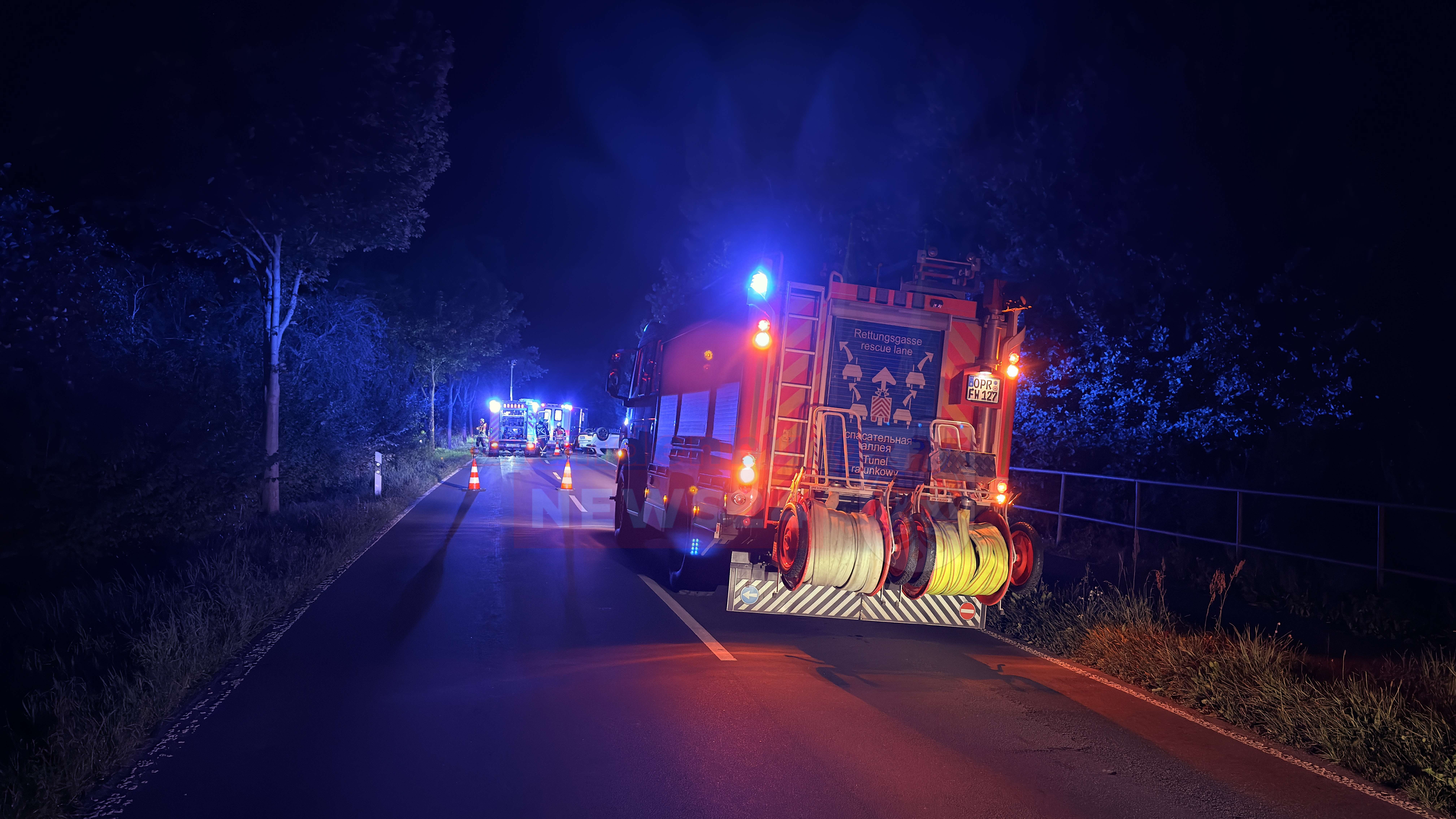Die Landstraße zwischen Neuruppin und Kränzlin musste für die Dauer der Rettungs- und aufräumarbeiten für rund zwei Stunden vollständig gesperrt werden.