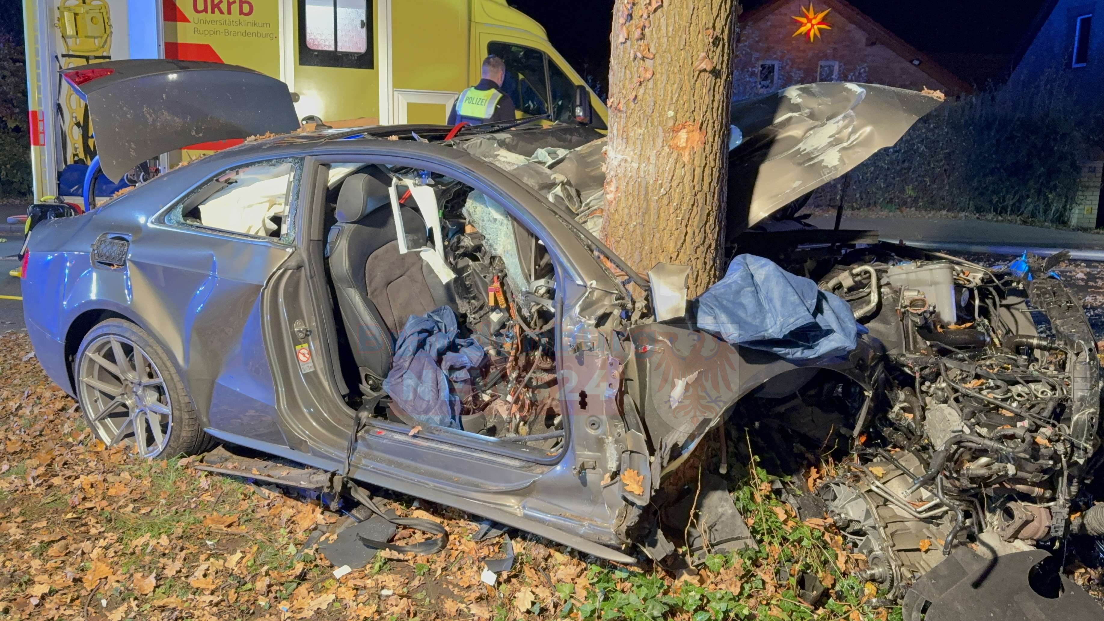 Der Unfall ereignete sich auf der Fehrbelliner Straße. Der Fahrer des Audi A5 war in Richtung Treskow unterwegs, als er gegen 22:00 Uhr aus noch ungeklärter Ursache zunächst eine Verkehrsinsel überfuhr und anschließend die Kontrolle über den Wagen verlor. Das Fahrzeug kam von der Straße ab und prallte frontal gegen einen massiven Straßenbaum.