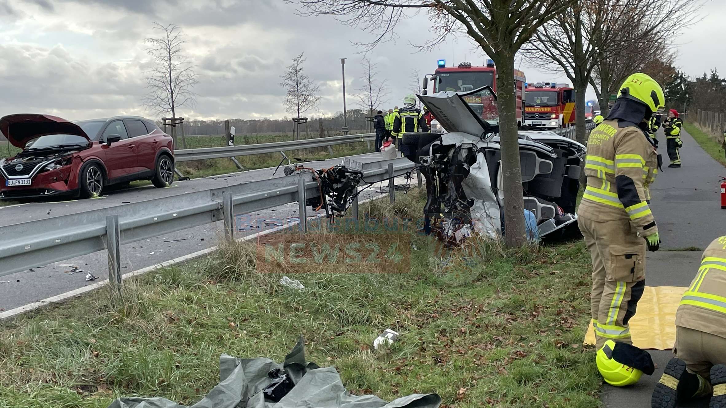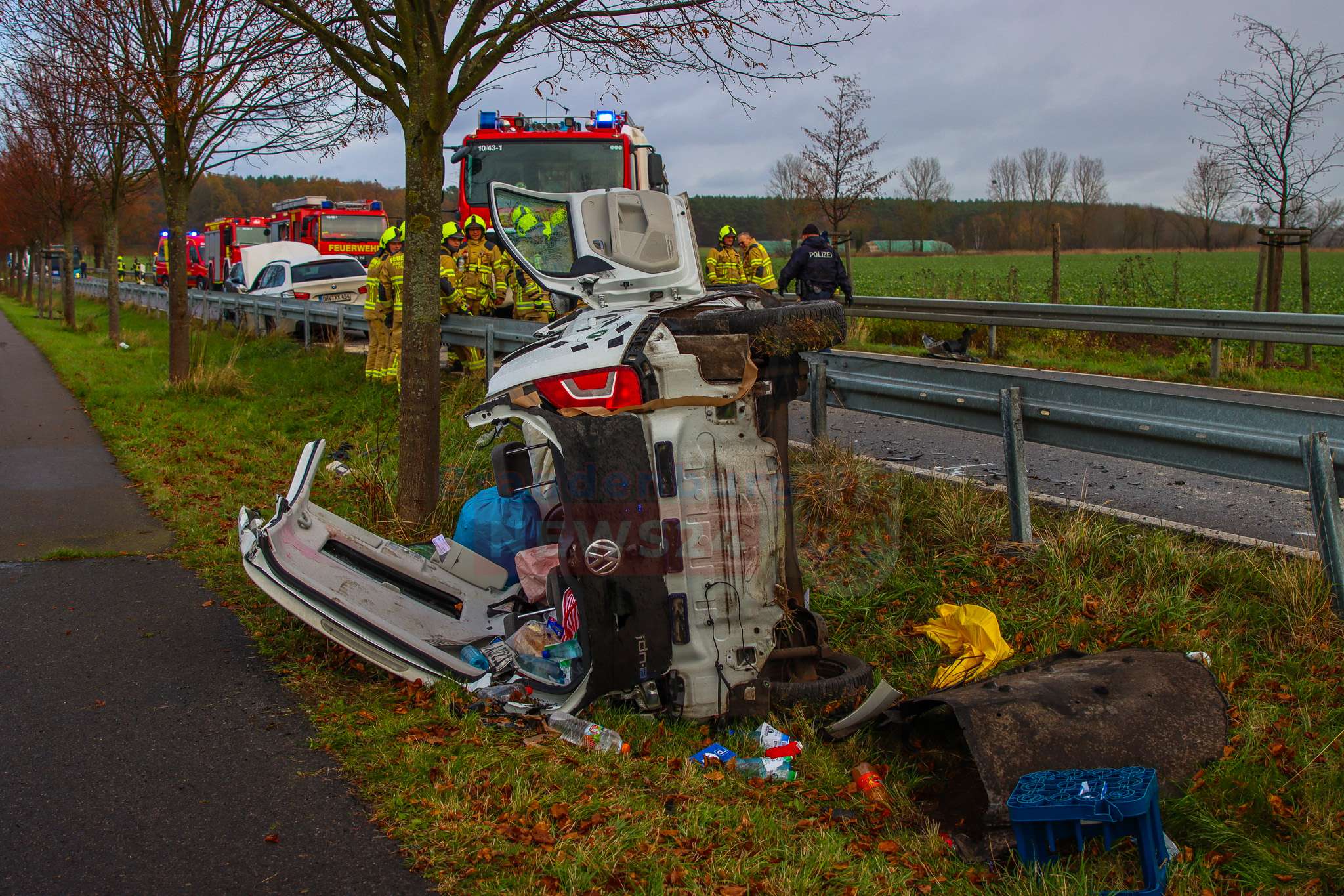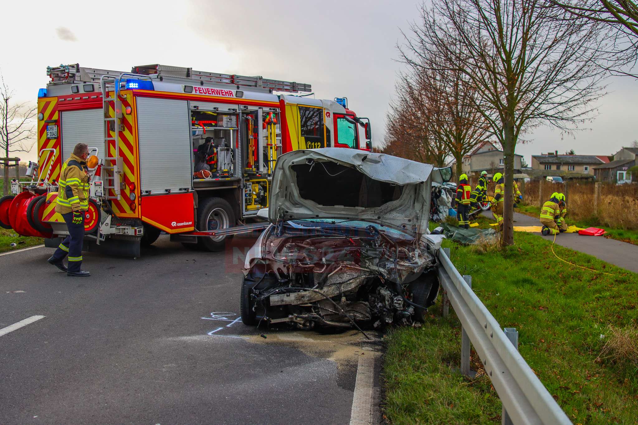 Kremmen (Oberhvel). Am Freitag gegen 11:10 Uhr kam es auf der Landstraße 170 zwischen Staffelde und Charlottenau zu einem schweren Verkehrsunfall zwischen 3 Fahrzeugen. Nach ersten Erkenntnissen der Polizei hatte ein PKW BMW versucht einen PKW Nissan zu überholen.