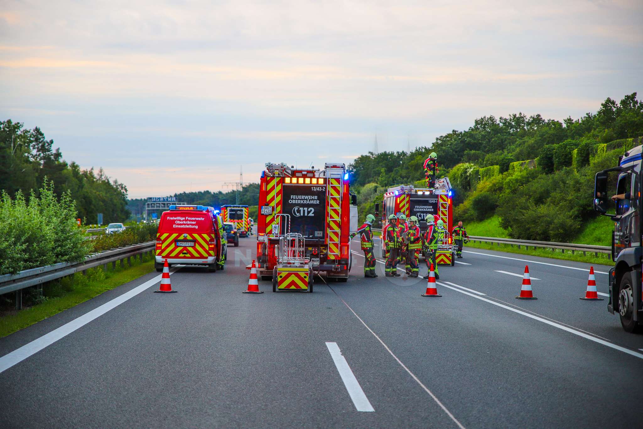 Die Feuerwehr Oberkrämer sicherte die Unfallstelle ab, stellte den Brandschutz sicher und nahm auslaufende Betriebsstoffe auf. Während der Rettungsmaßnahmen musste die A111 in diesem Bereich voll gesperrt werden, was zu einem erheblichen Rückstau im morgendlichen Berufsverkehr führte.