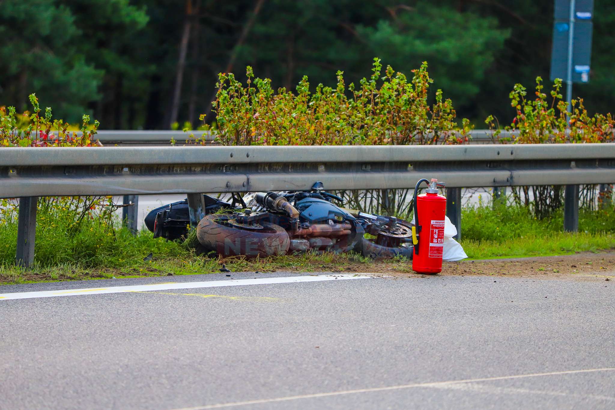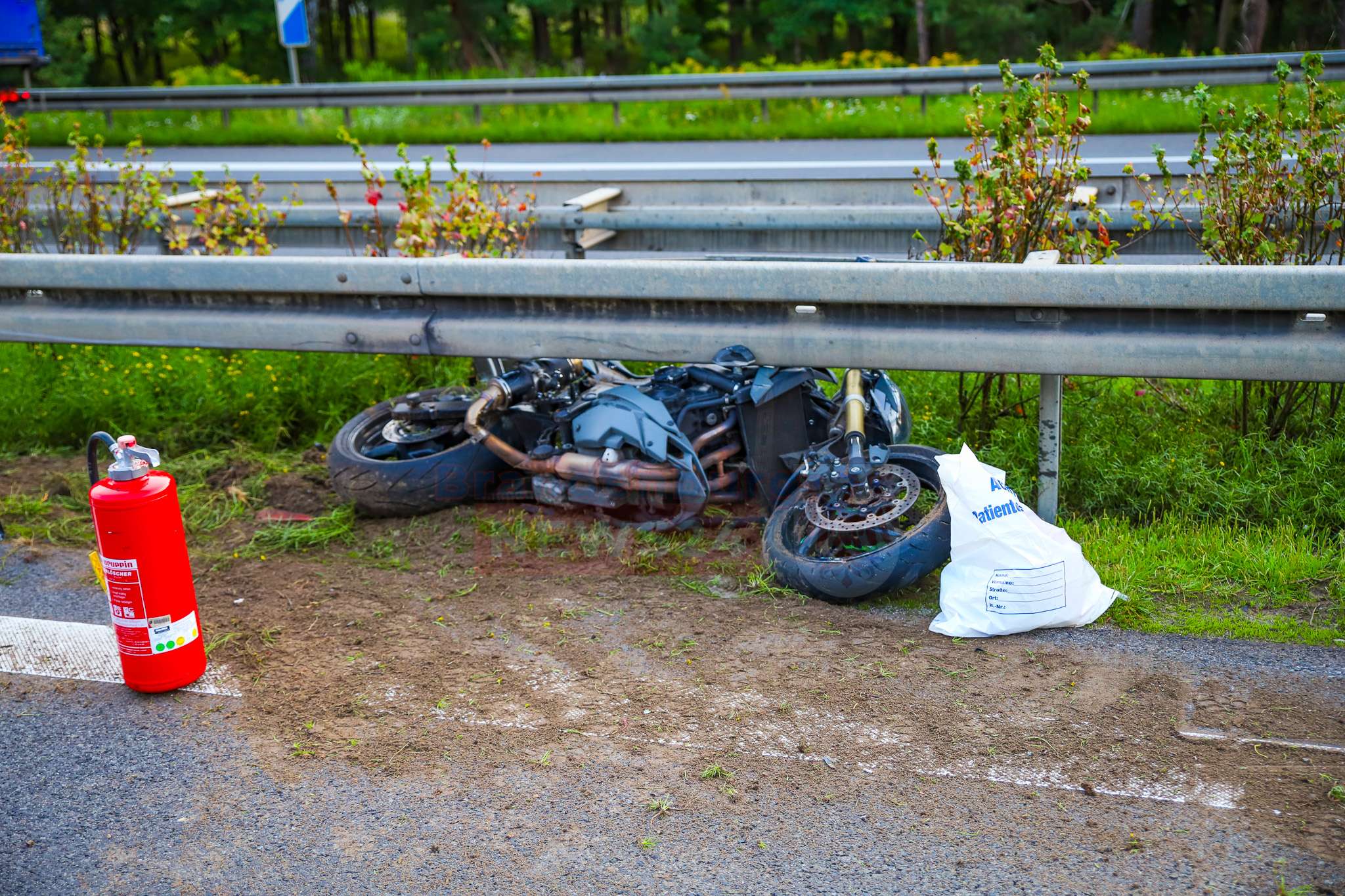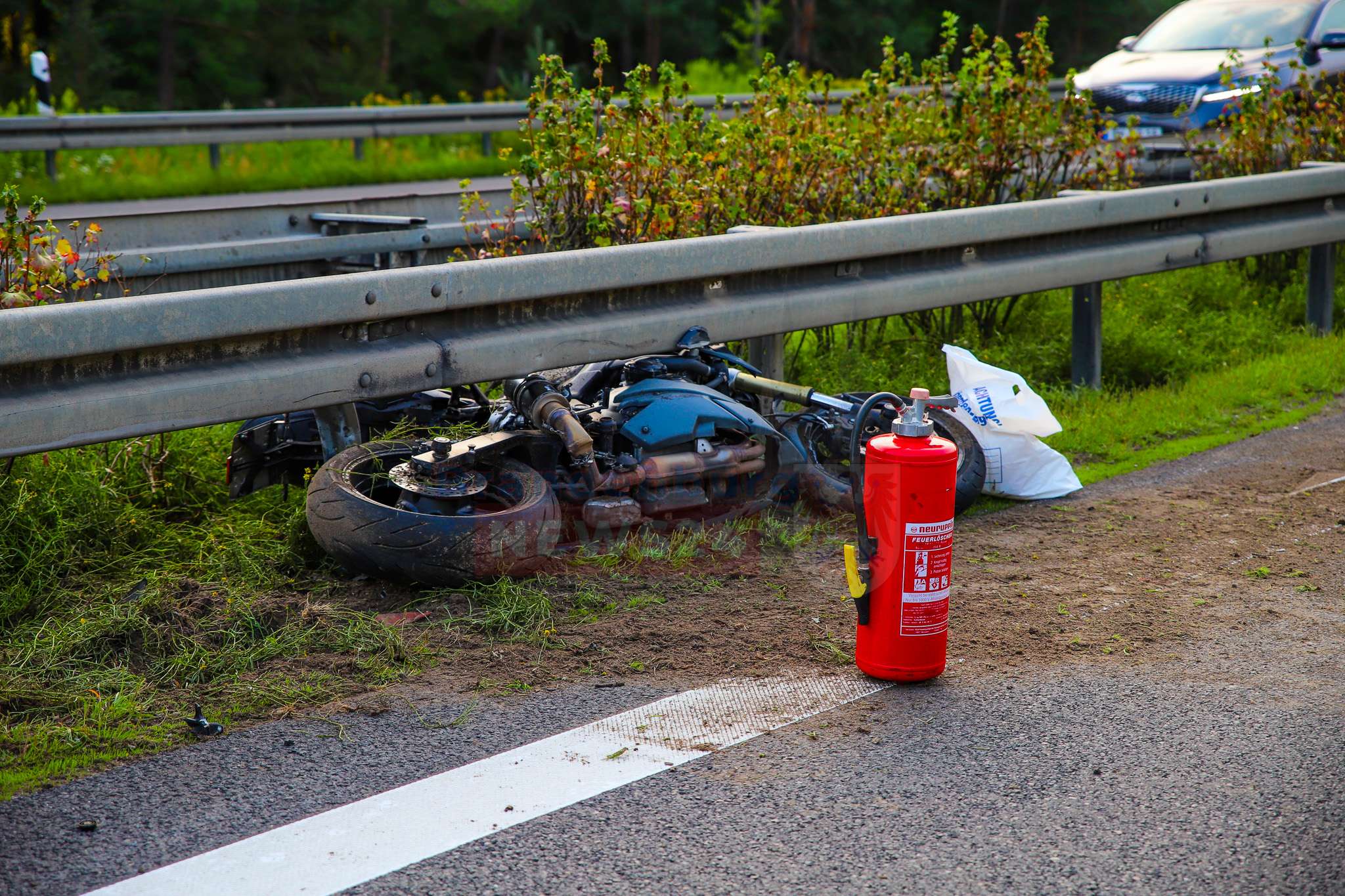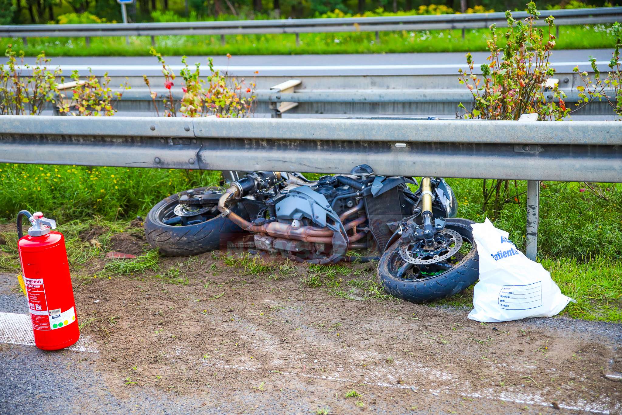 Daraufhin stürzte er auf die Fahrbahn. Die Maschine rutschte dabei unter die Leitplanke und blieb dort stecken, während der Motorradfahrer rund 100 Meter weitergeschleudert wurde.