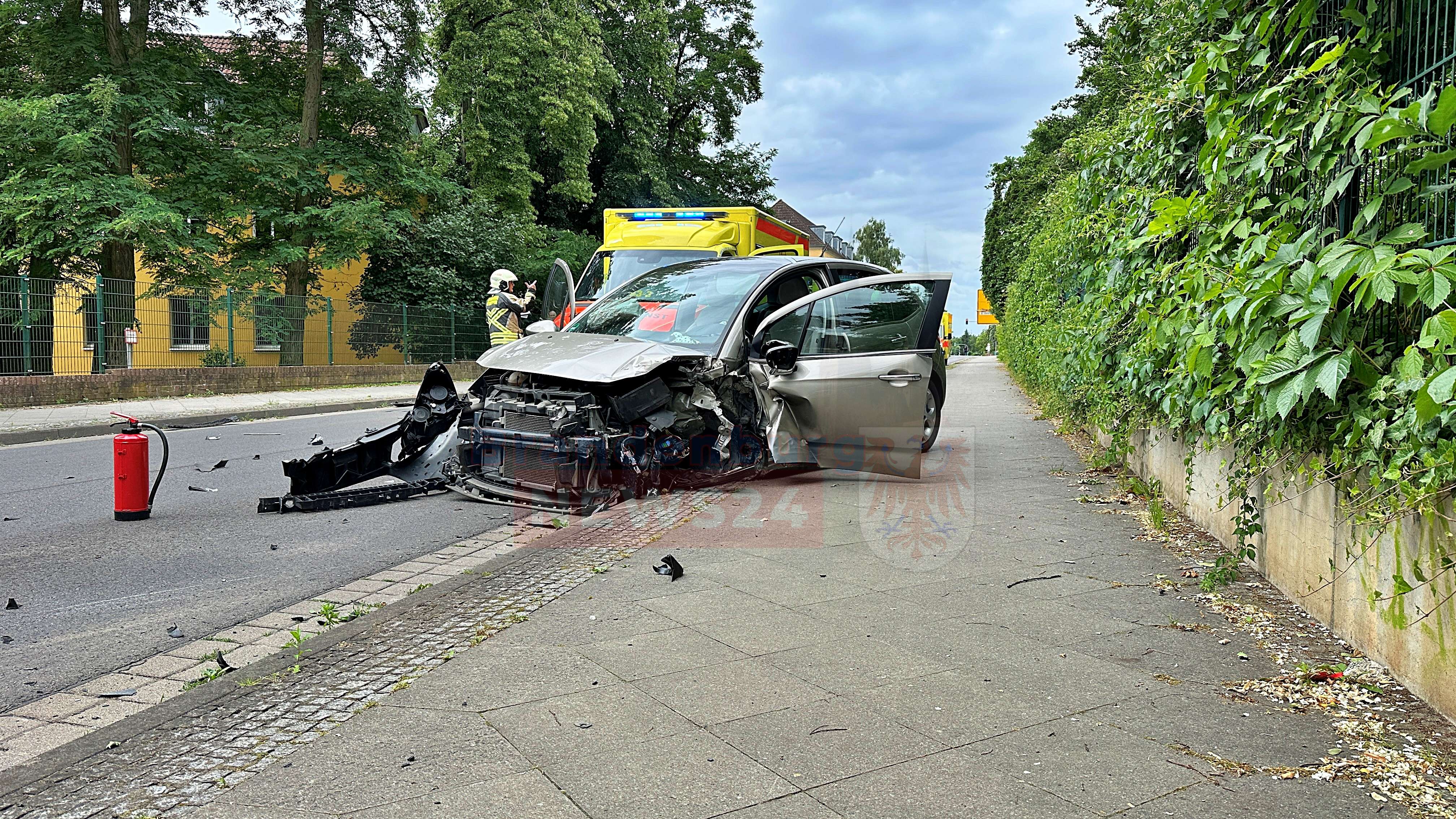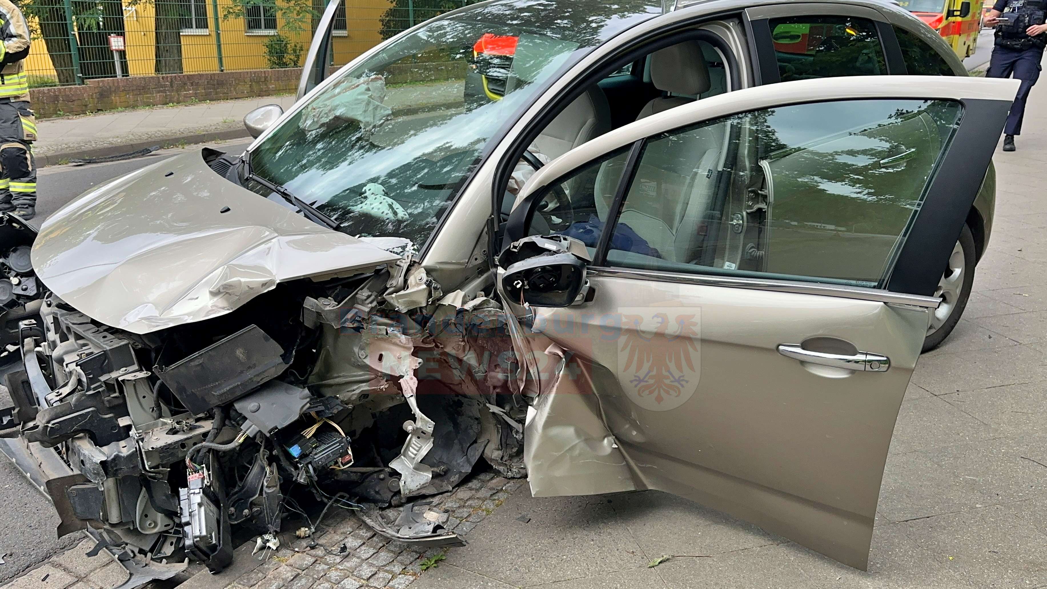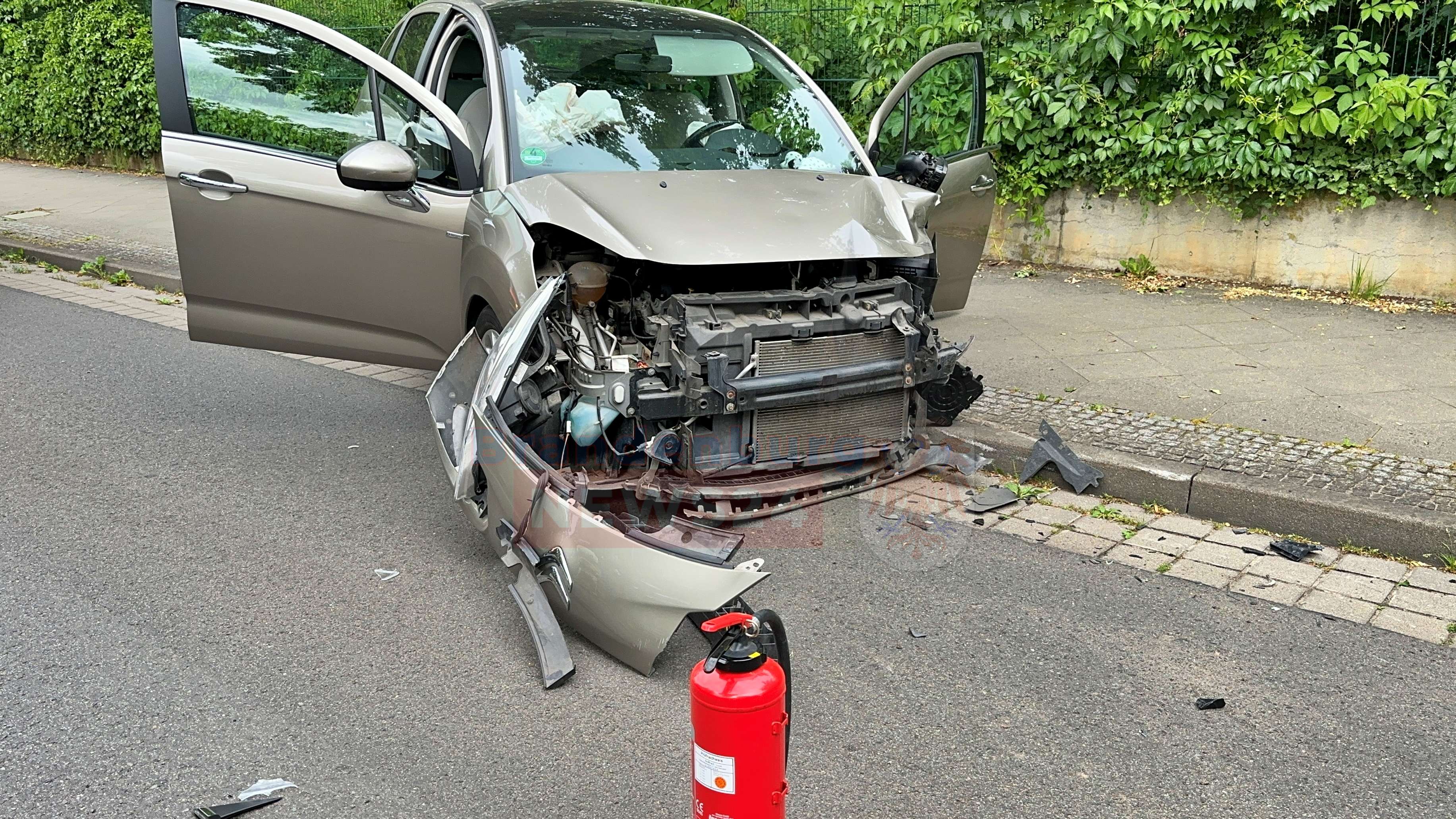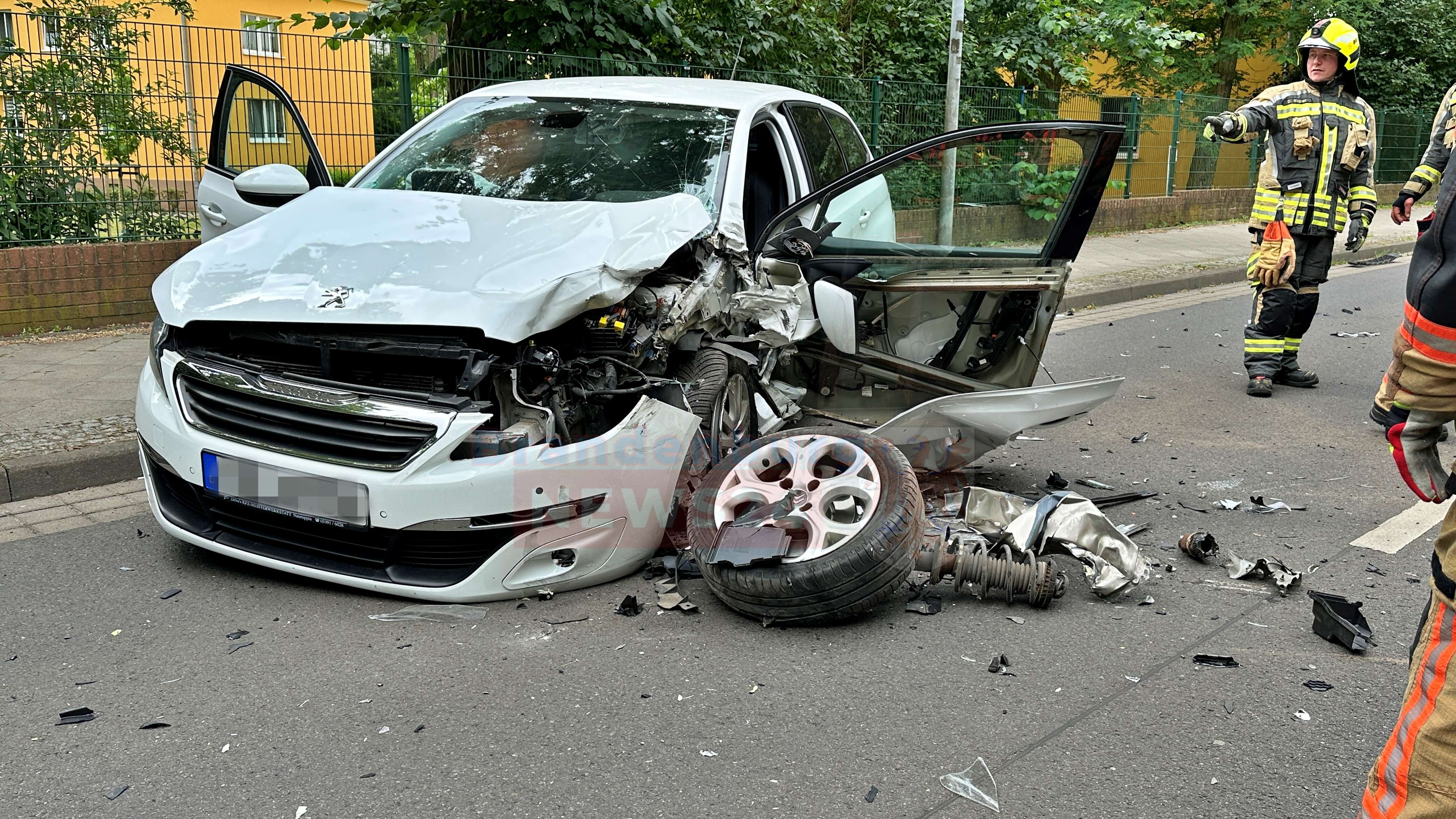 Die Wucht der Kollision war enorm: Das Vorderrad des Citroën wurde vollständig herausgerissen, Trümmerteile verteilten sich auf einer Länge von rund 30 Metern über die Fahrbahn. Sowohl der Citroën als auch der Peugeot wurden stark beschädigt.
