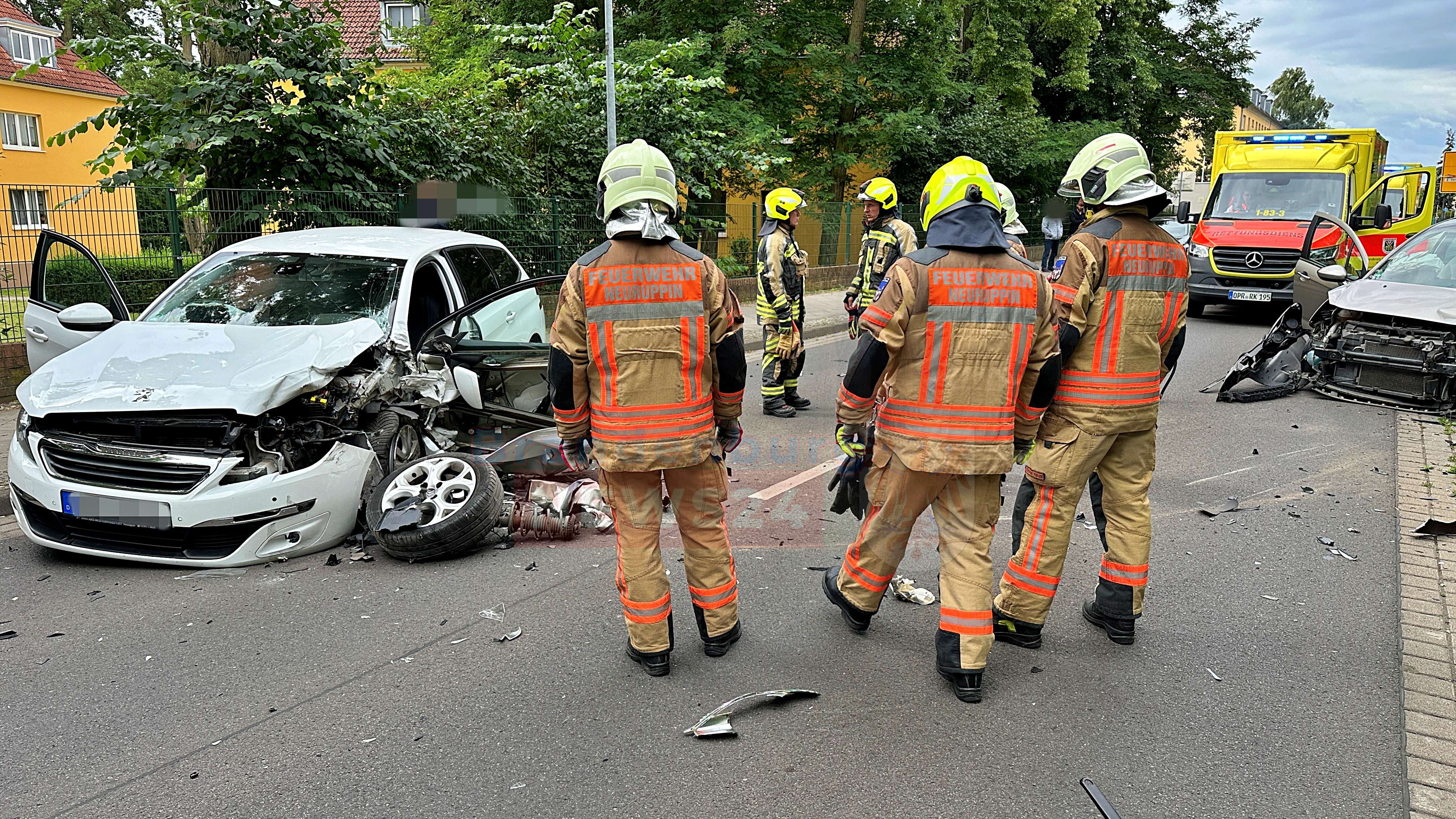 Die alarmierte Feuerwehr rückte mit zwei Fahrzeugen und acht Einsatzkräften zum Unfallort aus. Als sie eintraf, waren Polizei und Rettungsdienst bereits mit der Versorgung der Verletzten beschäftigt. Die Feuerwehr sicherte die Unfallstelle, stellte den Brandschutz sicher und beseitigte die weit verstreuten Trümmerteile.