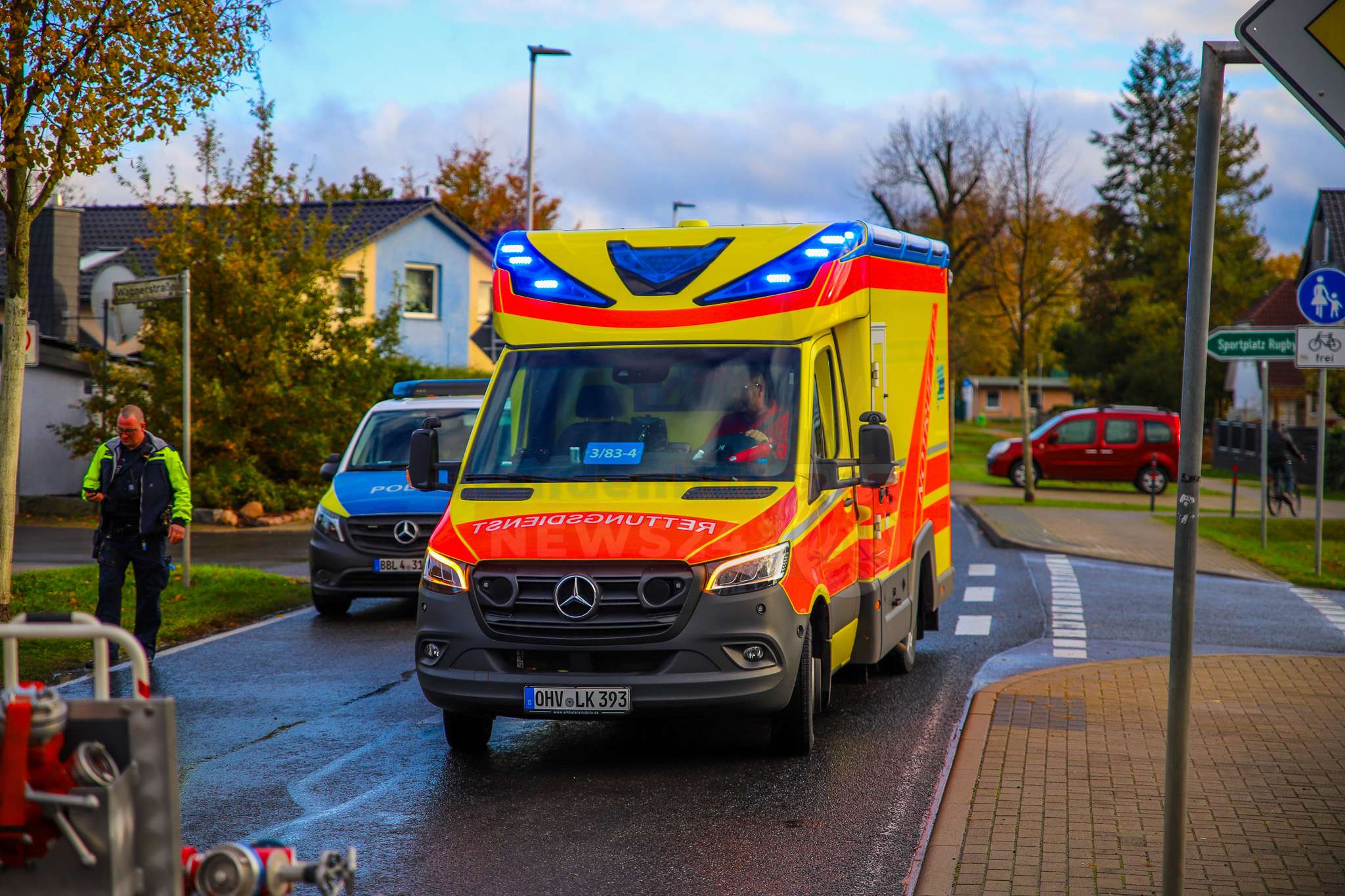 Für die Dauer der Rettungs- und Bergungsarbeiten musste die Germendorfer Straße voll gesperrt werden, was zu erheblichen Verkehrsbehinderungen führte. Die Polizei hat die Ermittlungen zur genauen Unfallursache aufgenommen.