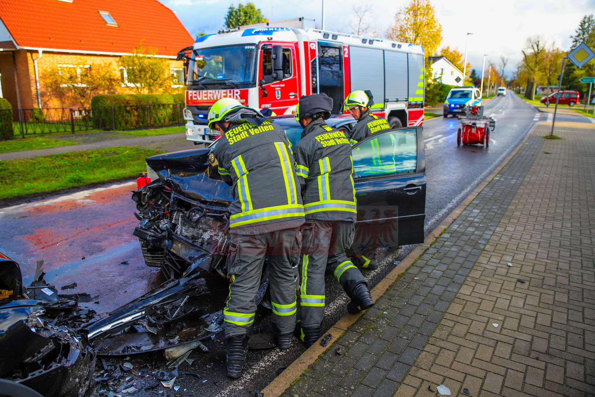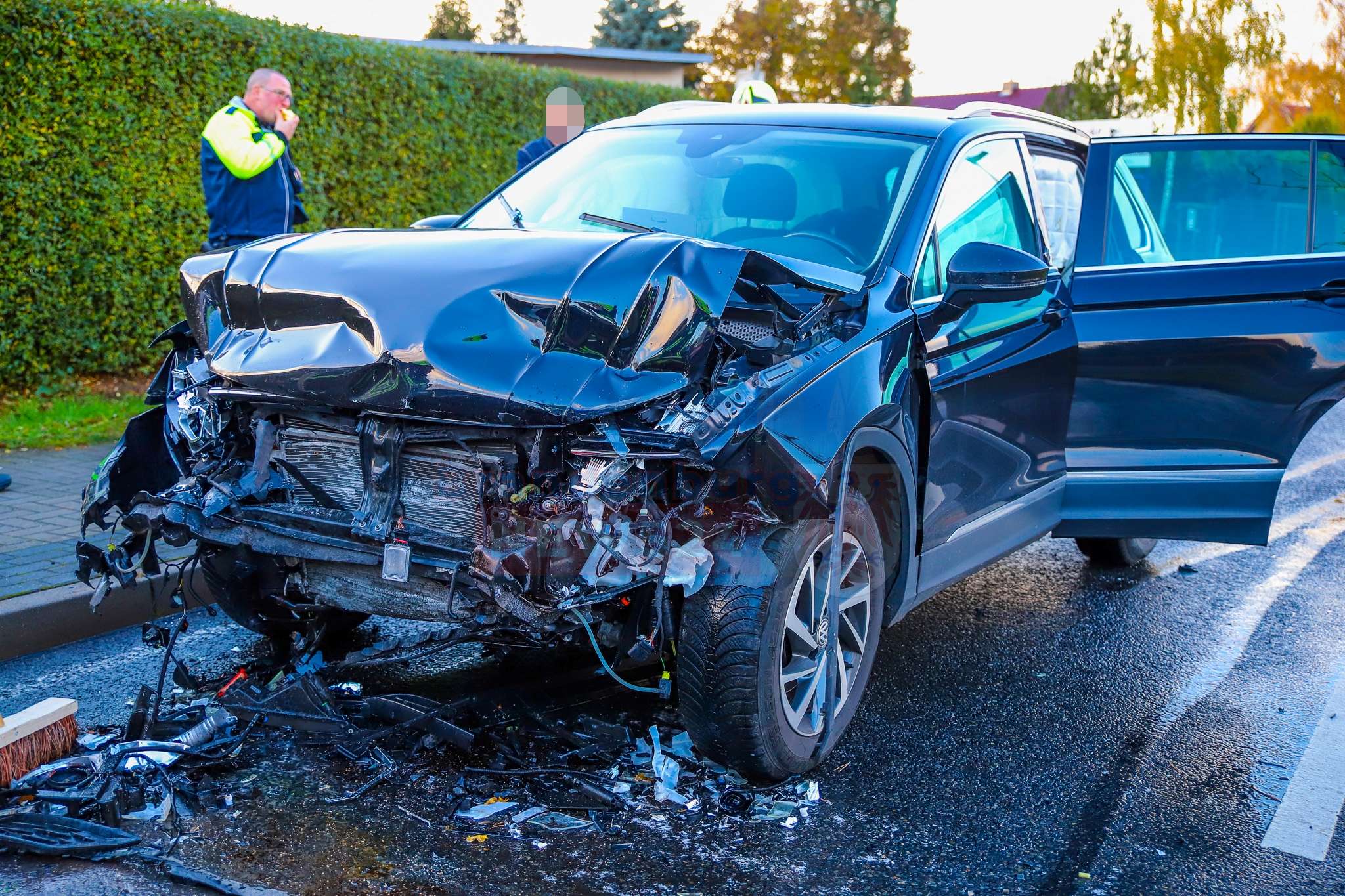 Velten. Zu einem schweren Verkehrsunfall kam es am Dienstagnachmittag, dem 28. Oktober 2025, gegen 14:20 Uhr auf der Germendorfer Straße in Velten. Nach ersten Erkenntnissen der Polizei kam ein VW Polo aus bislang ungeklärter Ursache nach links von der Fahrbahn ab und prallte dort frontal mit einem entgegenkommenden VW Tiguan zusammen.