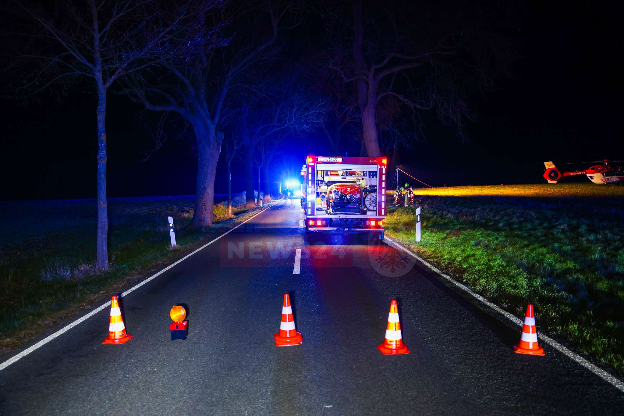 Neben mehreren Rettungswagen und einem Notarzt kam auch ein Rettungshubschrauber zum Einsatz. Dieser war letztlich erforderlich, um den schwerverletzten Mann in ein Unfallklinikum nach Berlin zu transportieren.