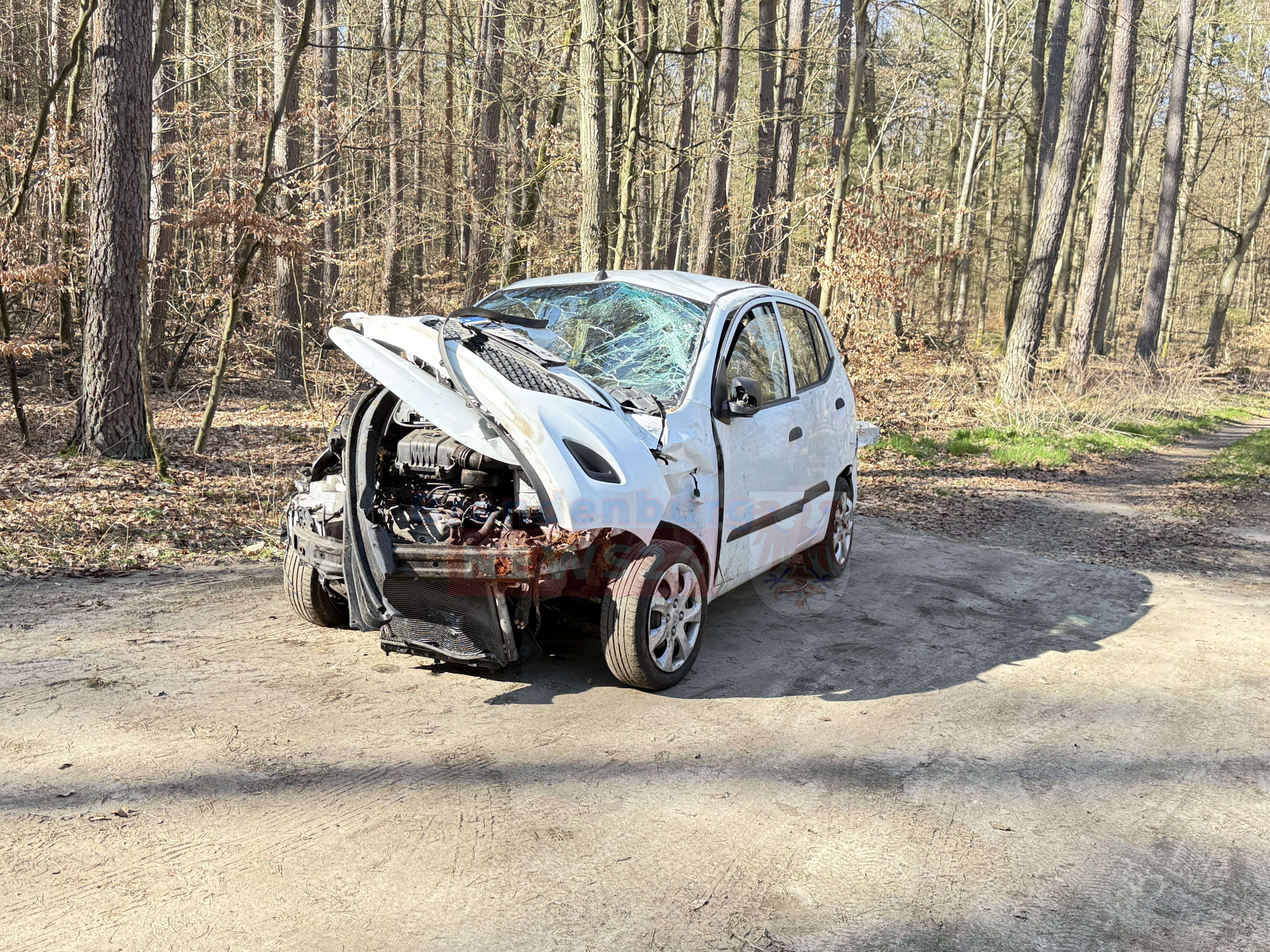 Rheinsberg-Glienicke (Ostprignitz-Ruppin). Am frühen Freitagnachmittag ereignete sich auf der Verbindungsstraße zwischen Zühlen und Rheinsberg-Glienicke ein schwerer Verkehrsunfall. Aus bislang ungeklärter Ursache kam ein PKW von der Fahrbahn ab, überschlug sich, prallte gegen einen Baum und kam schließlich wieder auf der Straße zum Stehen.
