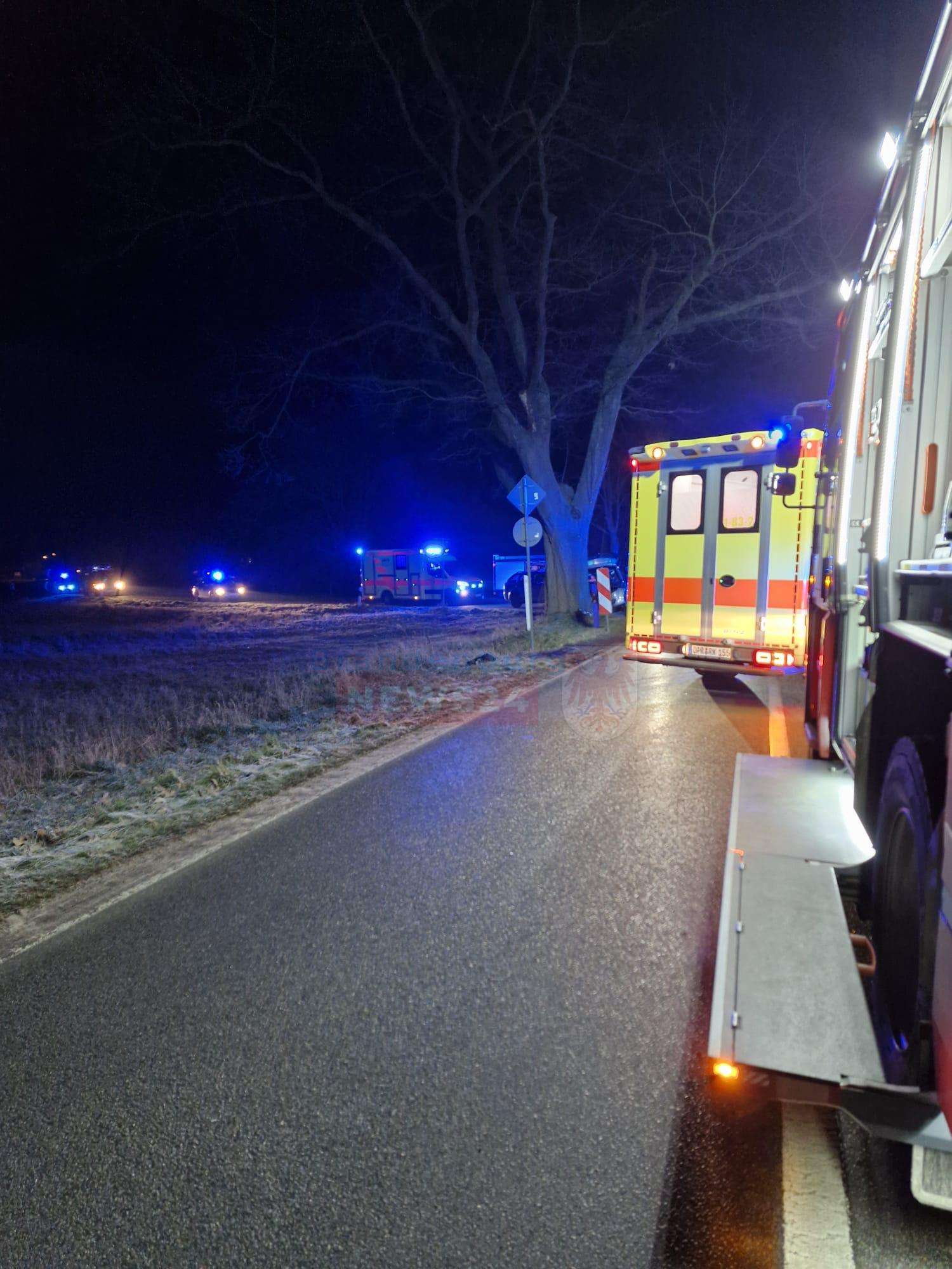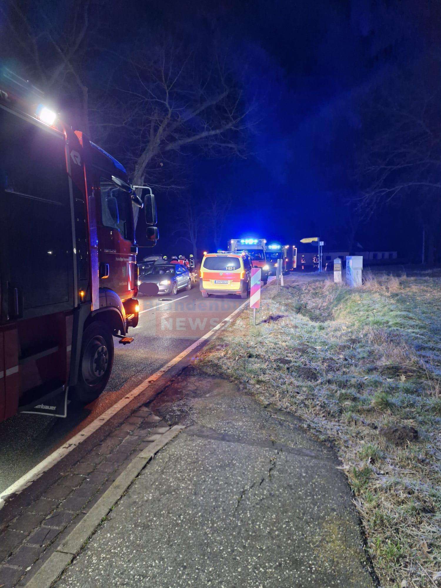 Vichel (Ostprignitz-Ruppin). In den frühen Morgenstunden ereignete sich ein schwerer Verkehrsunfall nahe Vichel. Gegen 5:00 Uhr kam ein mit fünf jungen Erwachsenen besetzter PKW aus bislang ungeklärter Ursache von der Fahrbahn ab und prallte gegen einen Baum.