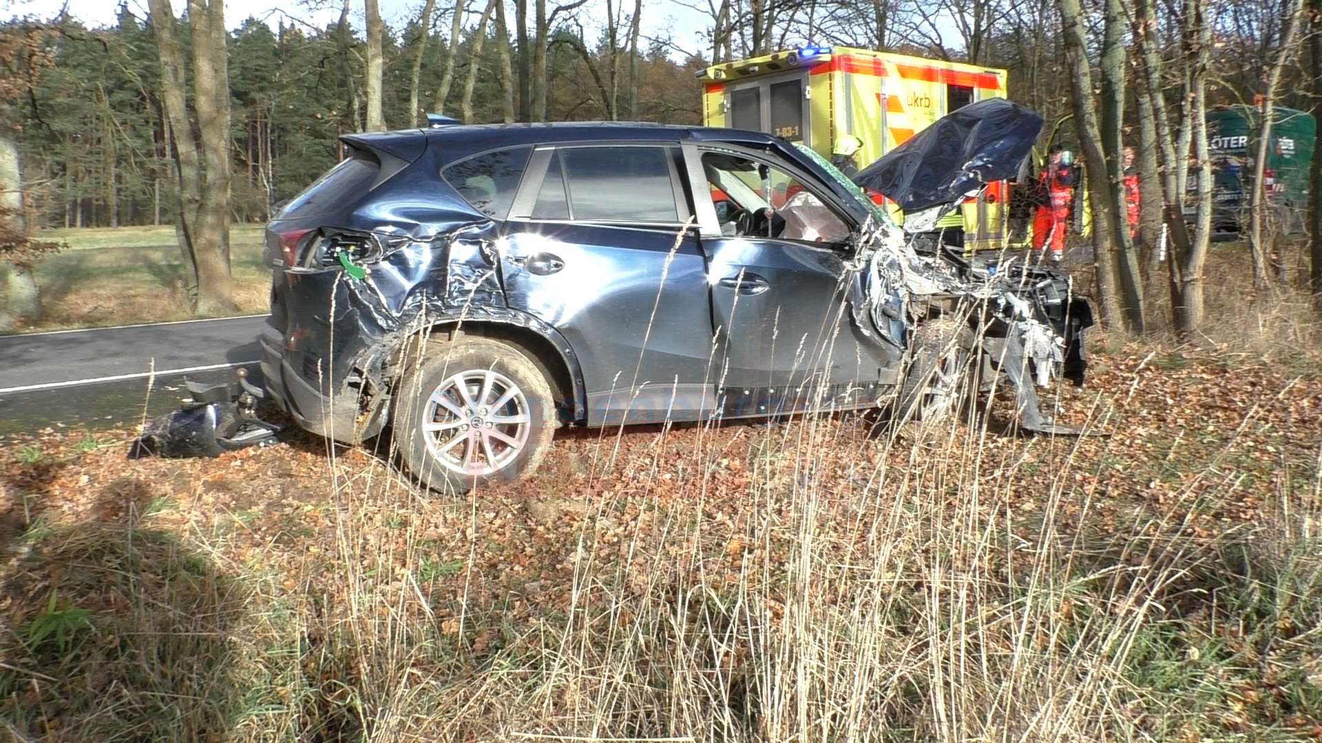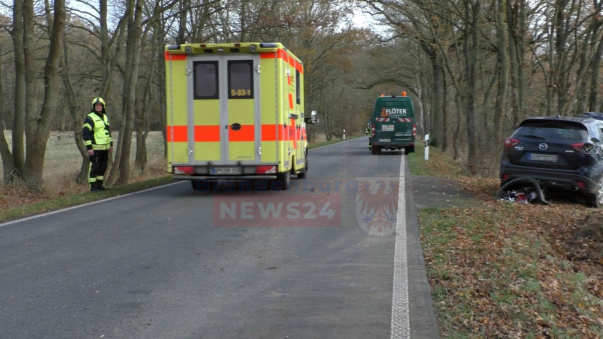 Schwerer Verkehrsunfall bei Wusterhausen/Dosse: Mazda prallt gegen Baum – Beifahrerin per Hubschrauber ins Krankenhaus
