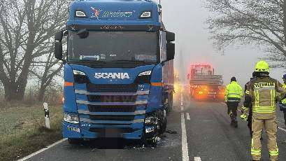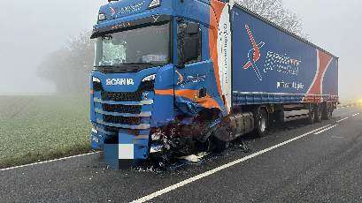 Heiligengrabe - Am 17.01.2025 gegen 15:30 befuhr ein 68-jähriger Mercedesfahrer die B189 von Heiligengrabe nach Wittstock/Dosse. Vor ihm fuhr eine Sattelzugmaschine nebst Auflieger. Aufgrund des starken Nebels war die Sicht stark eingeschränkt. Ungeachtet dieser Tatsache setzte der Mercedesfahrer zum Überholen an und übersah eine weitere Sattelzugmaschine im Gegenverkehr.