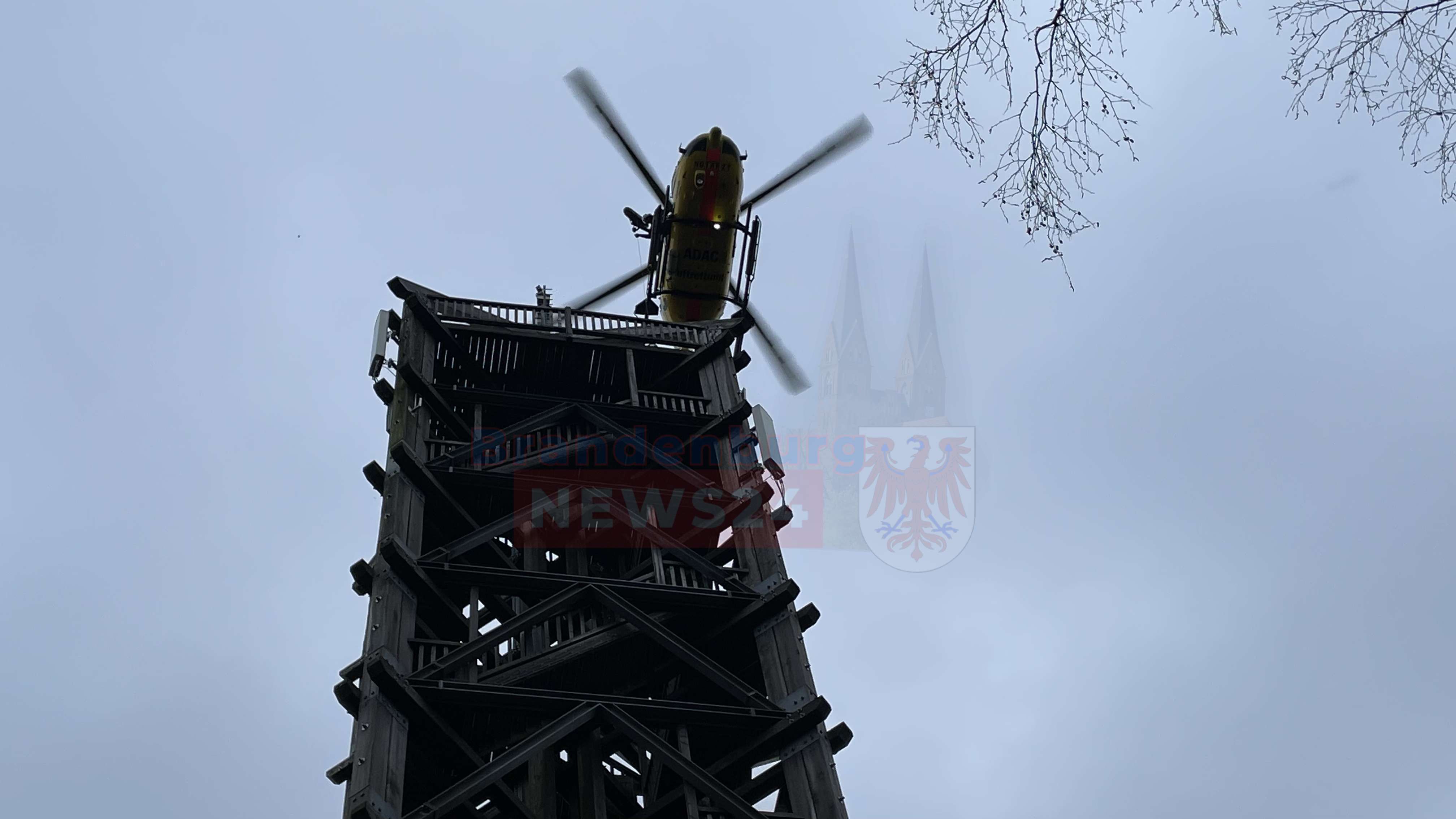 Blumenthal (Ostprignitz-Ruppin). Am Donnerstagnachmittag ereignete sich in Blumenthal bei Heiligengrabe ein dramatischer Unfall. Ein Mensch stürzte auf der Treppe zum Aussichtsturm und wurde schwer verletzt. Nur durch den Einsatz eines Spezialhubschraubers aus Hamburg konnte die Person gerettet werden. Gegen 14:00 Uhr erhielt die Feuerwehr einen Notruf, der einen Verletzten auf dem 45 Meter hohen Aussichtsturm meldete. Die Person war bewusstlos und konnte sich nicht selbstständig bewegen.