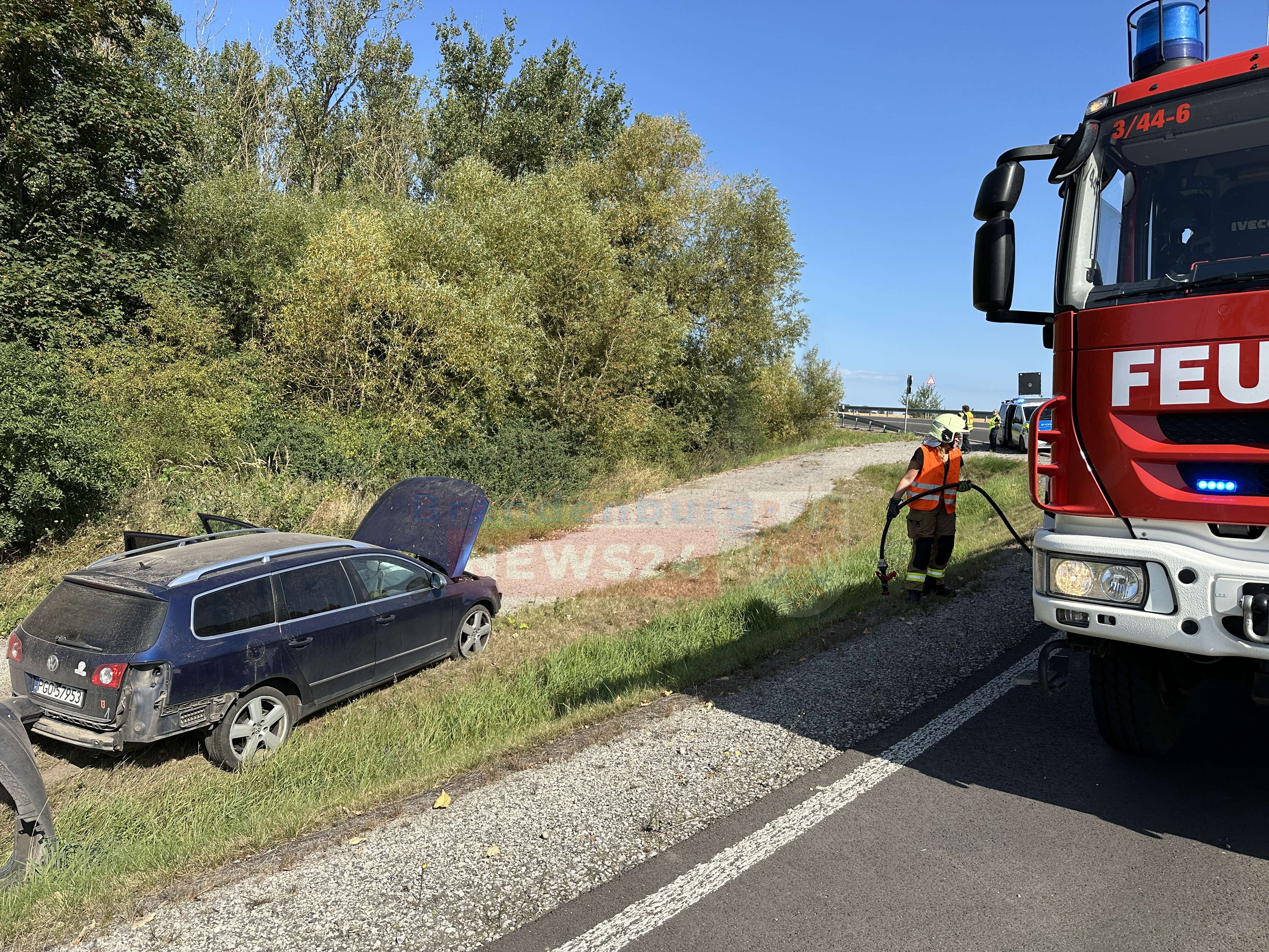 A24/AS Neuruppin Süd - Ein 22-jähriger polnischer Fahrer erlebte einen Spektakulären Unfall auf der A24 am Montagmorgen einen Schreckmoment, als er die Kontrolle über seinen VW Passat verlor und auf spektakuläre Weise über die Auffahrt der Anschlussstelle Neuruppin Süd flog.